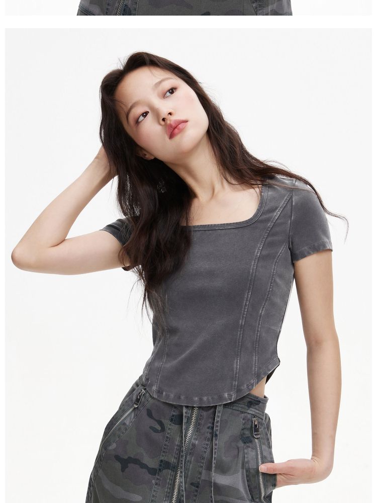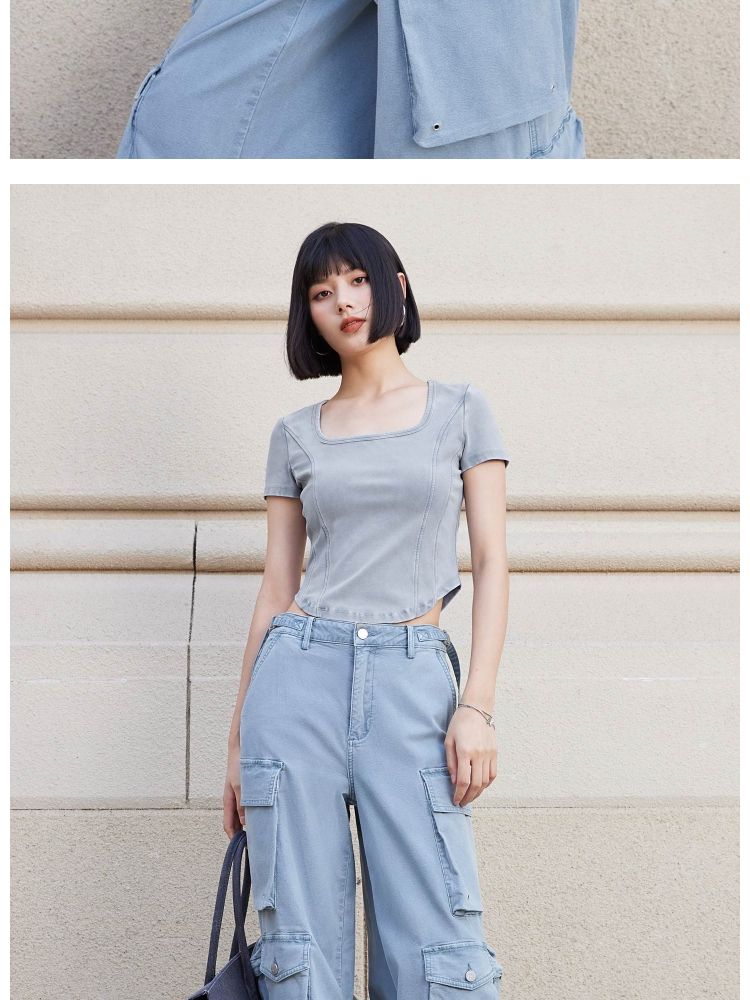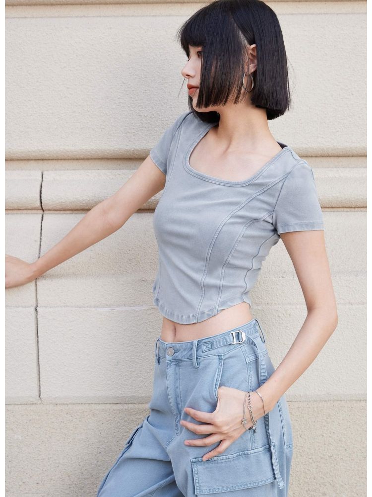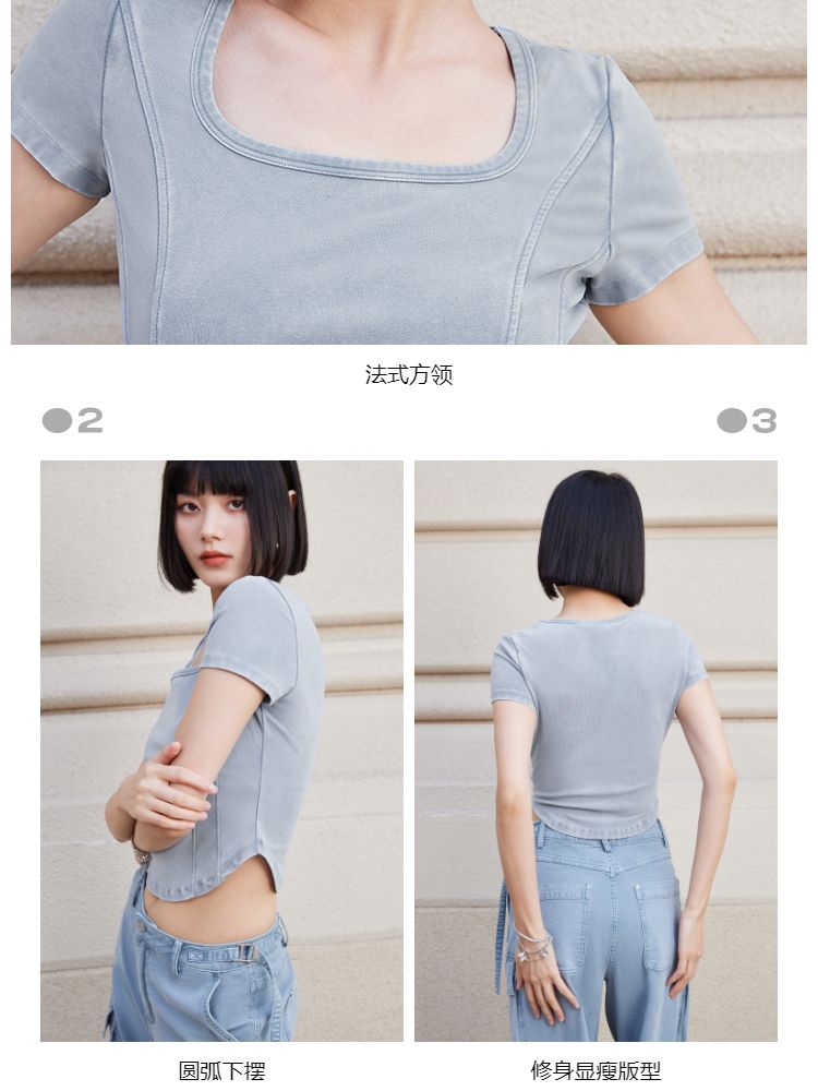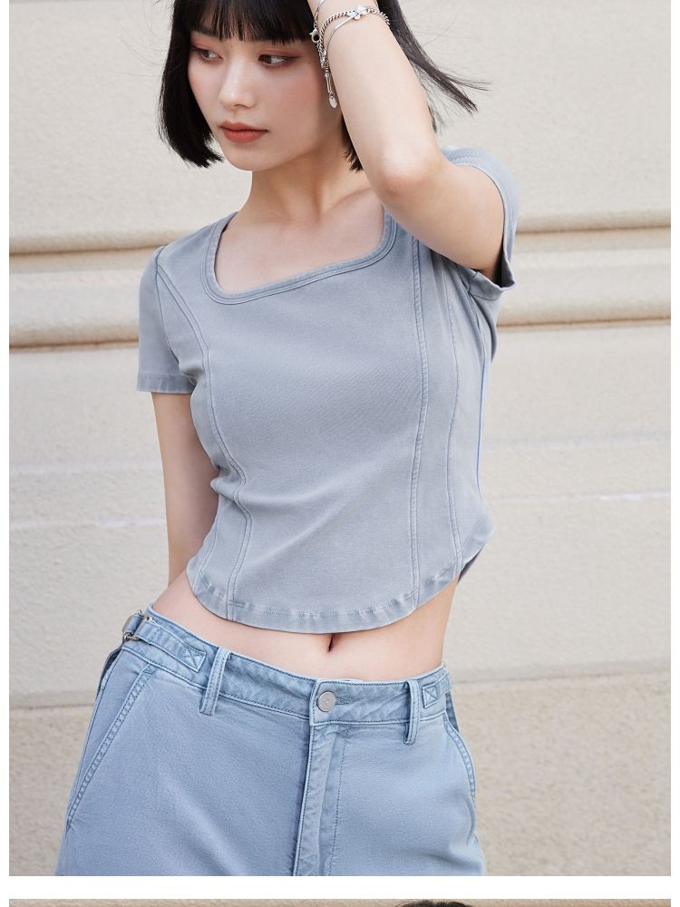 商品名称:【简约时尚】夏季修身显瘦法式方领短款T恤女 851738