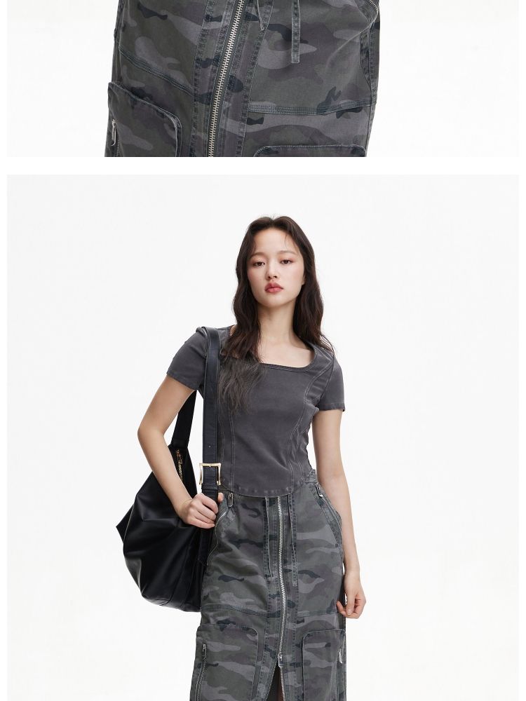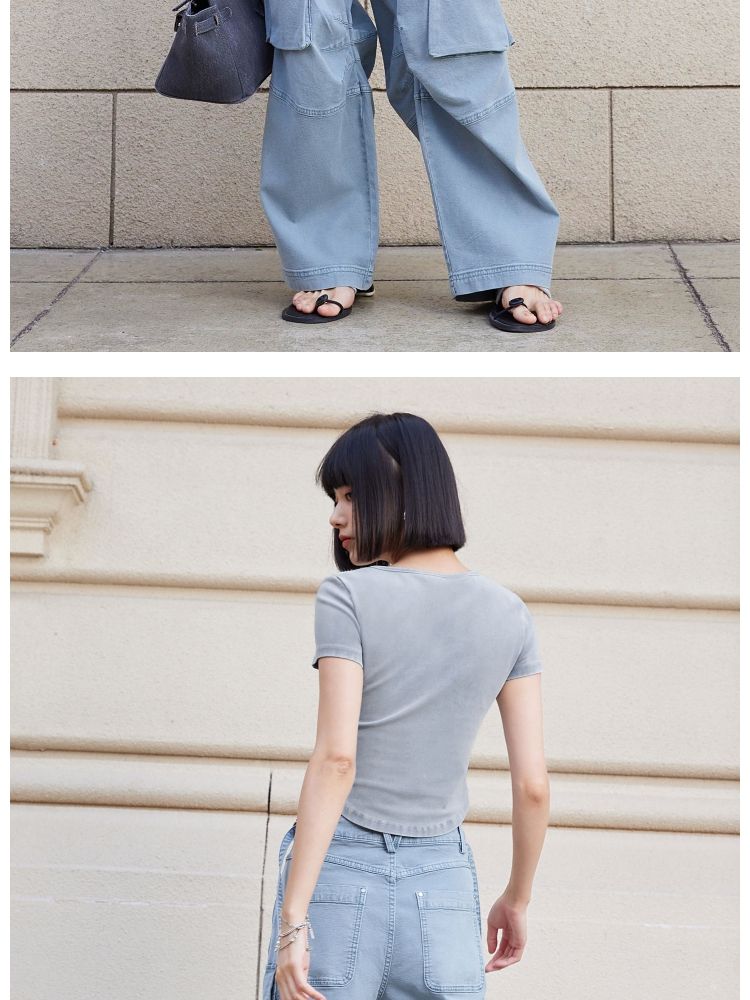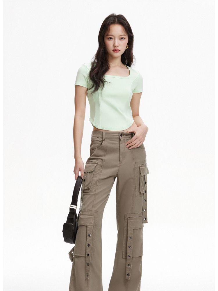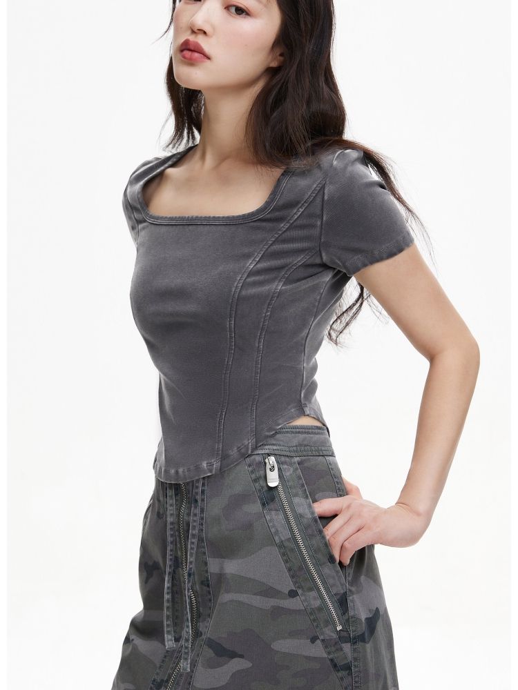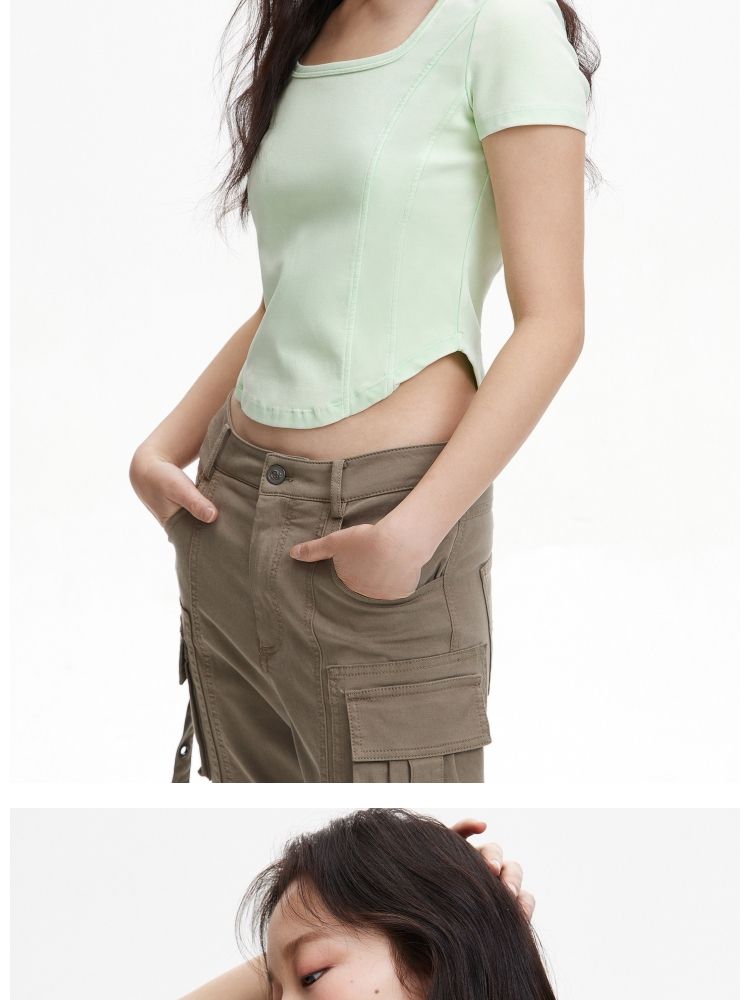 商品名称:【简约时尚】夏季修身显瘦法式方领短款T恤女 851738