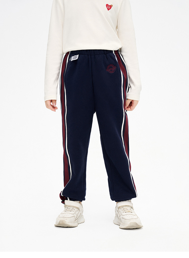 Gap女幼秋冬LOGO碳素软磨抓绒卫裤儿童装柔软运动束脚裤837320 004506