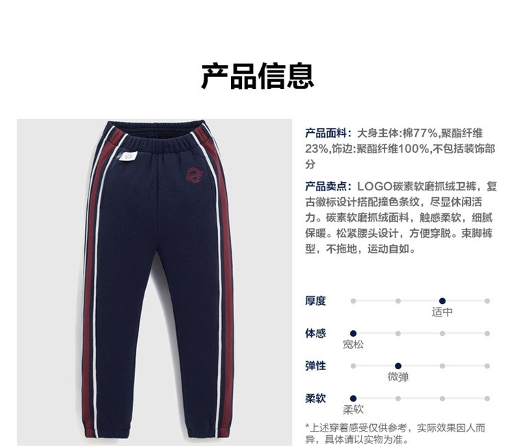 商品名称:Gap女幼秋冬LOGO碳素软磨抓绒卫裤儿童装柔软运动束脚裤837320 004506