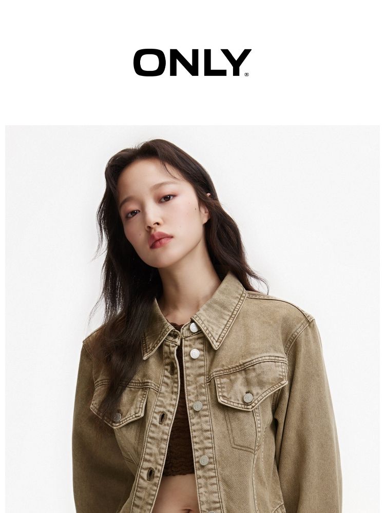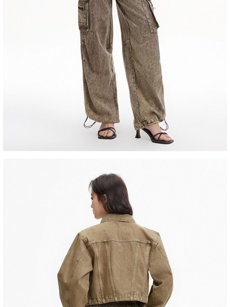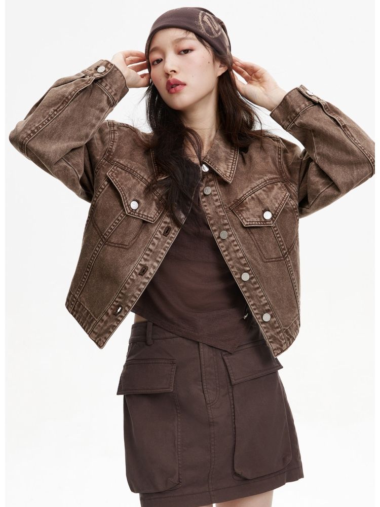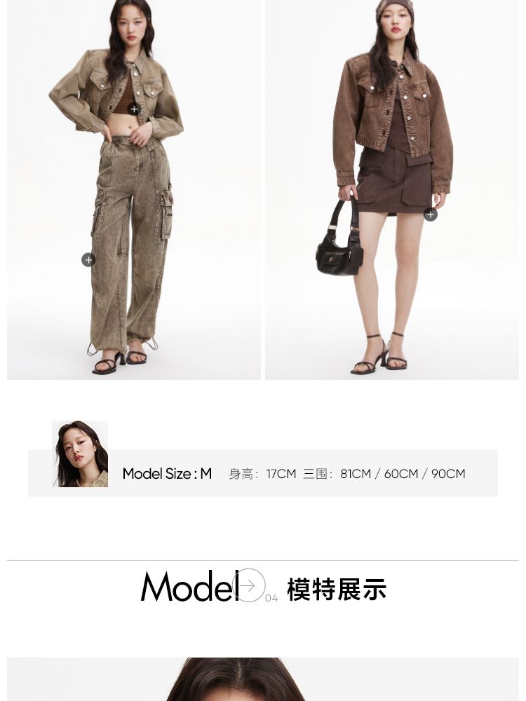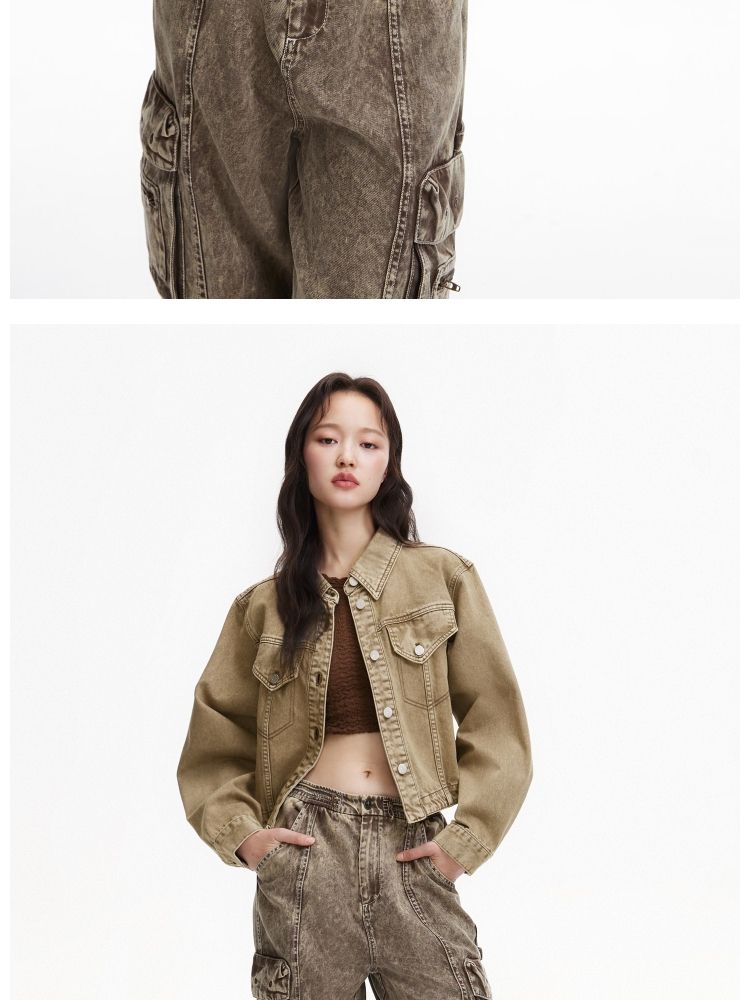 【复古做旧】春季水洗金属纽扣翻领短款外套女 806682