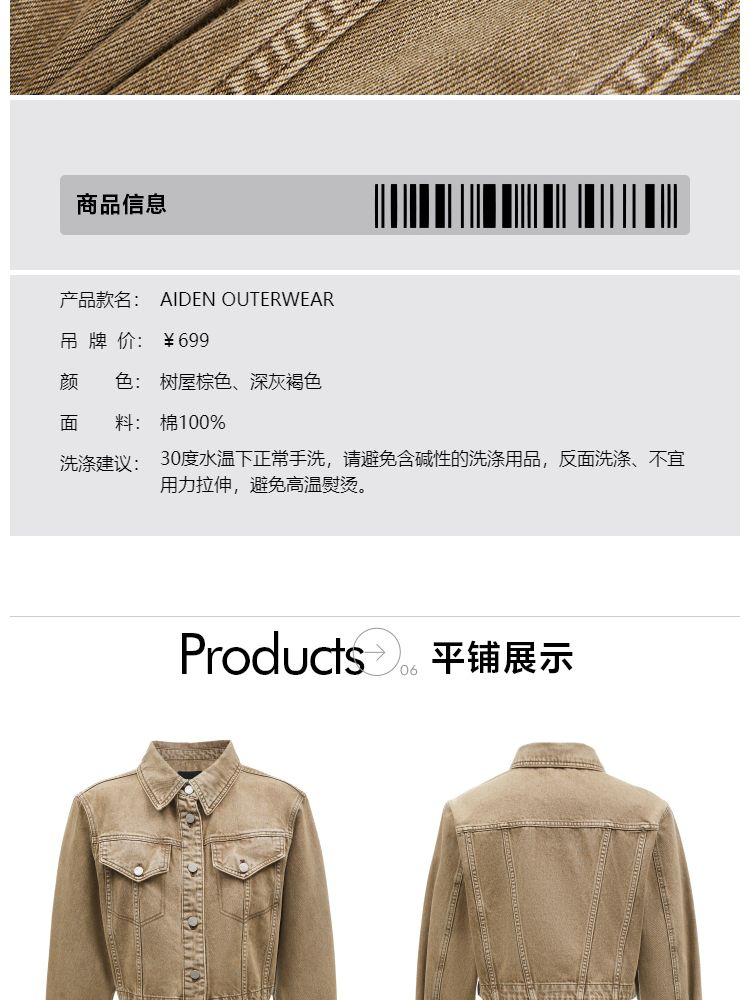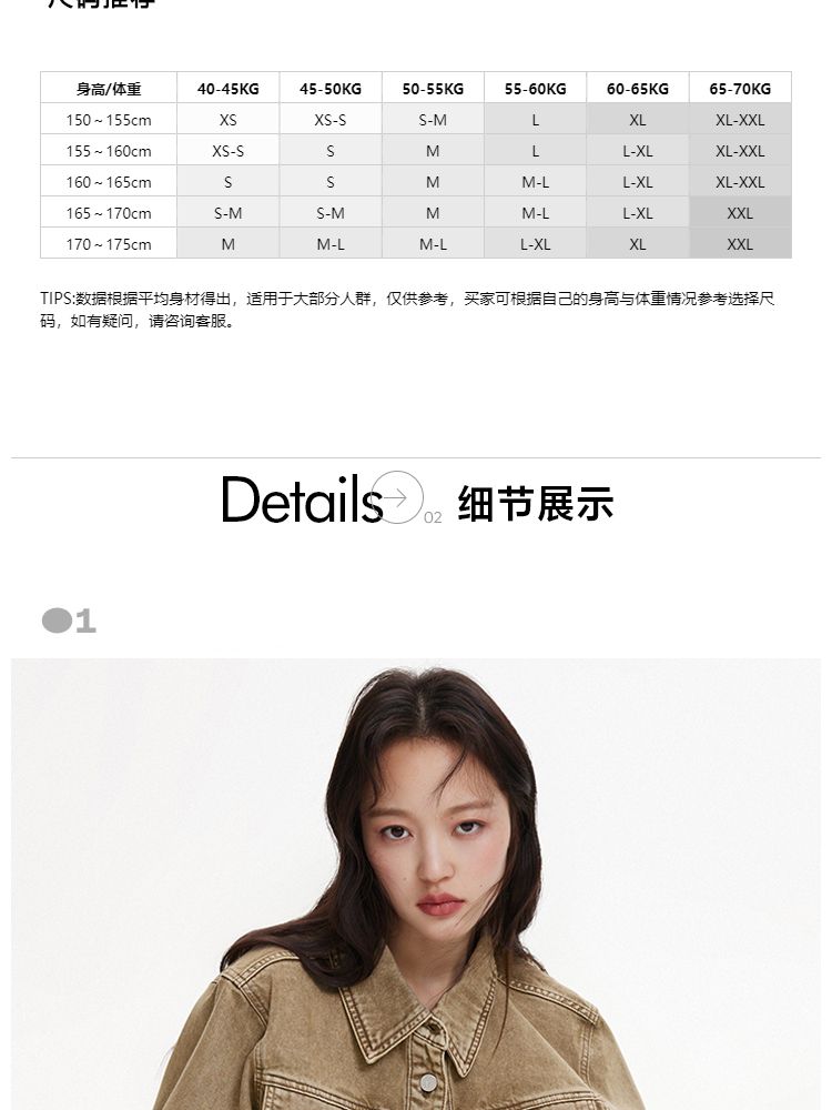 商品名称:【复古做旧】春季水洗金属纽扣翻领短款外套女 806682