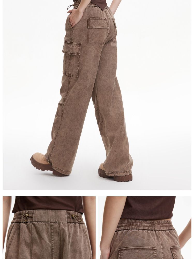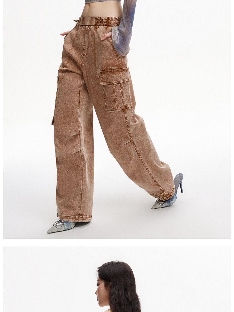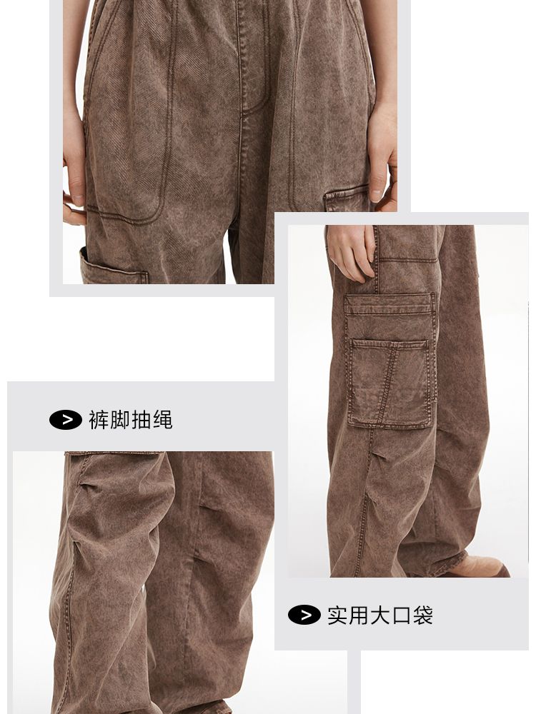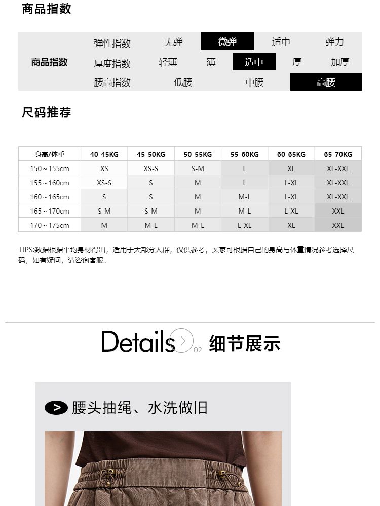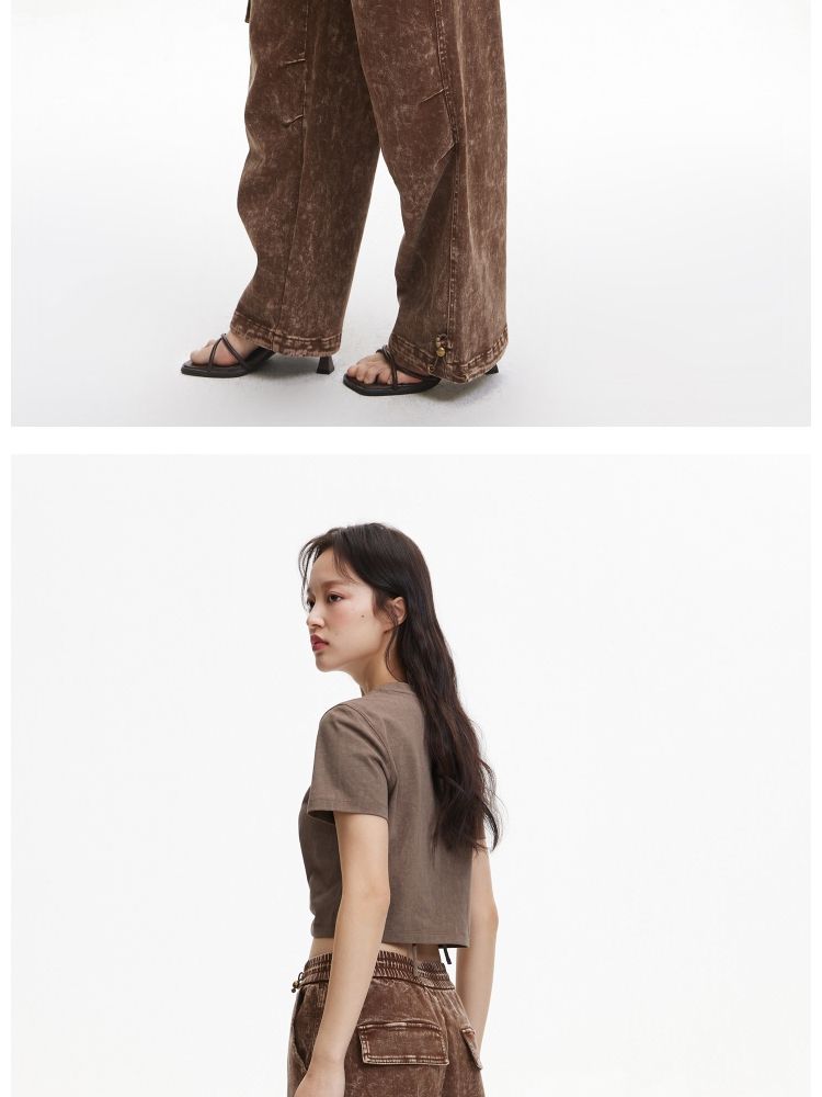 商品名称:【做旧水洗】夏季高腰抽绳宽松阔腿休闲裤女 011482
