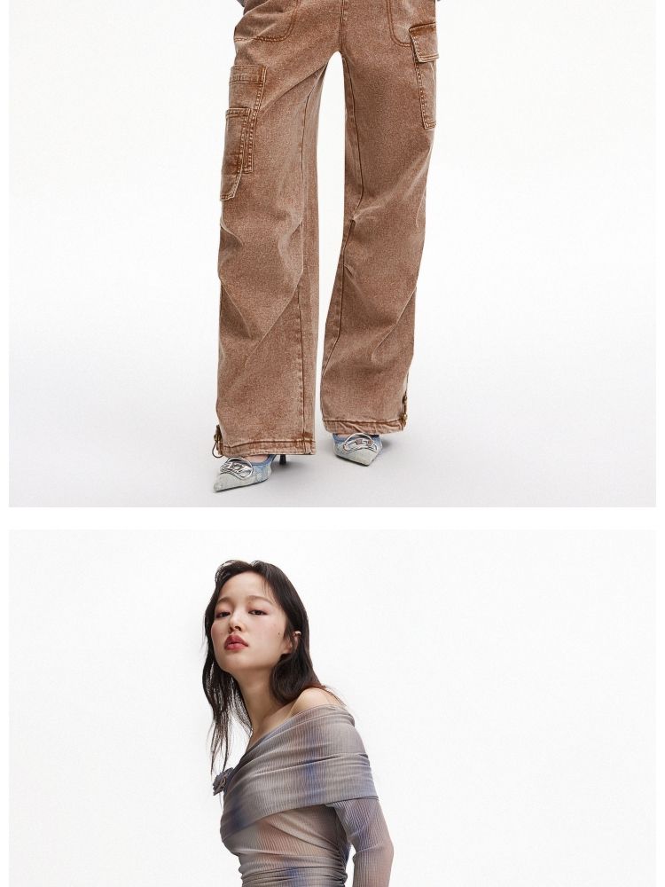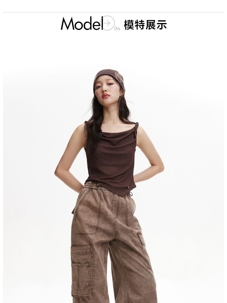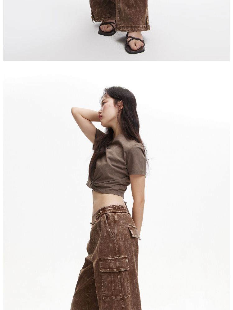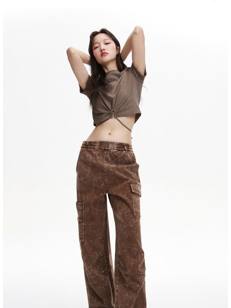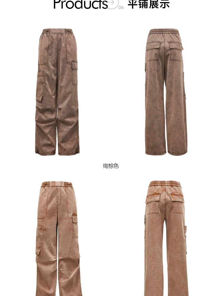 商品名称:【做旧水洗】夏季高腰抽绳宽松阔腿休闲裤女 011482