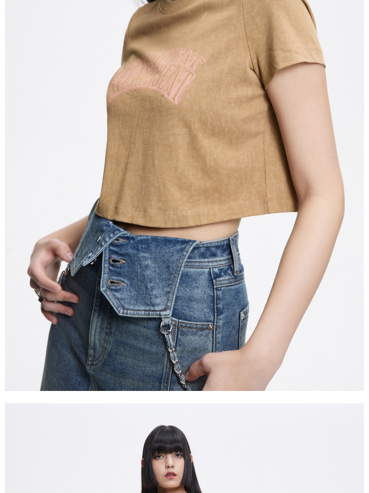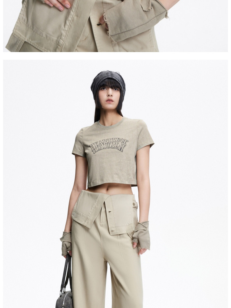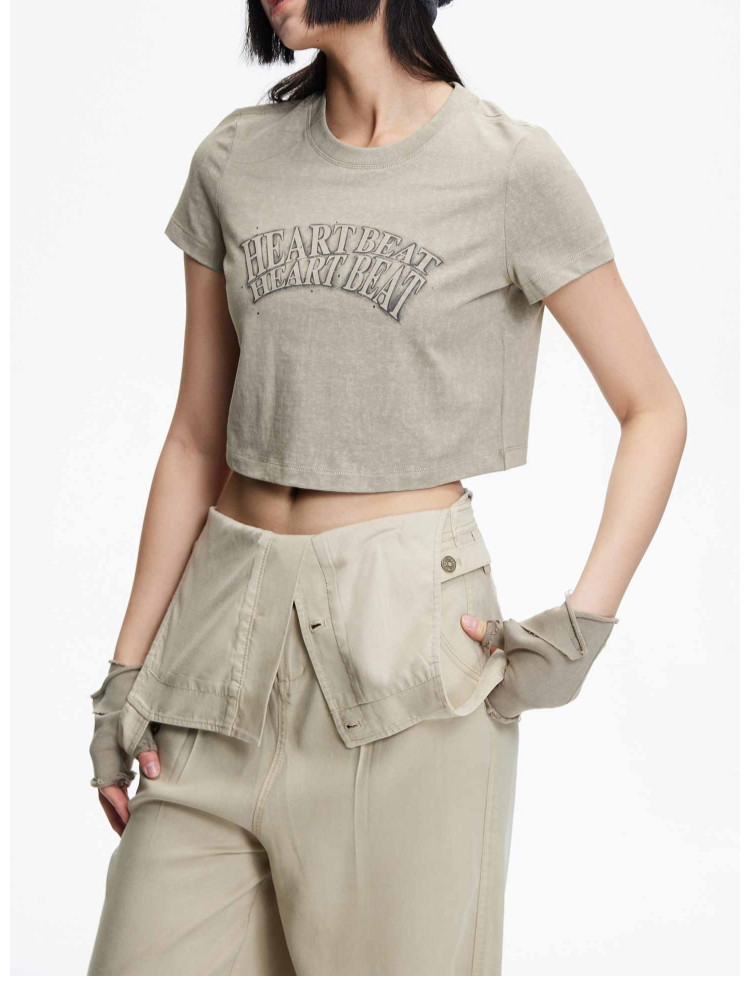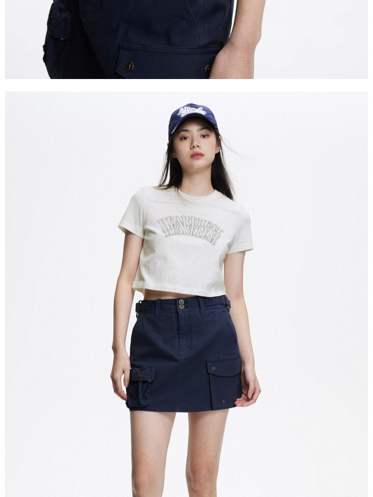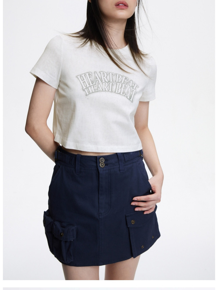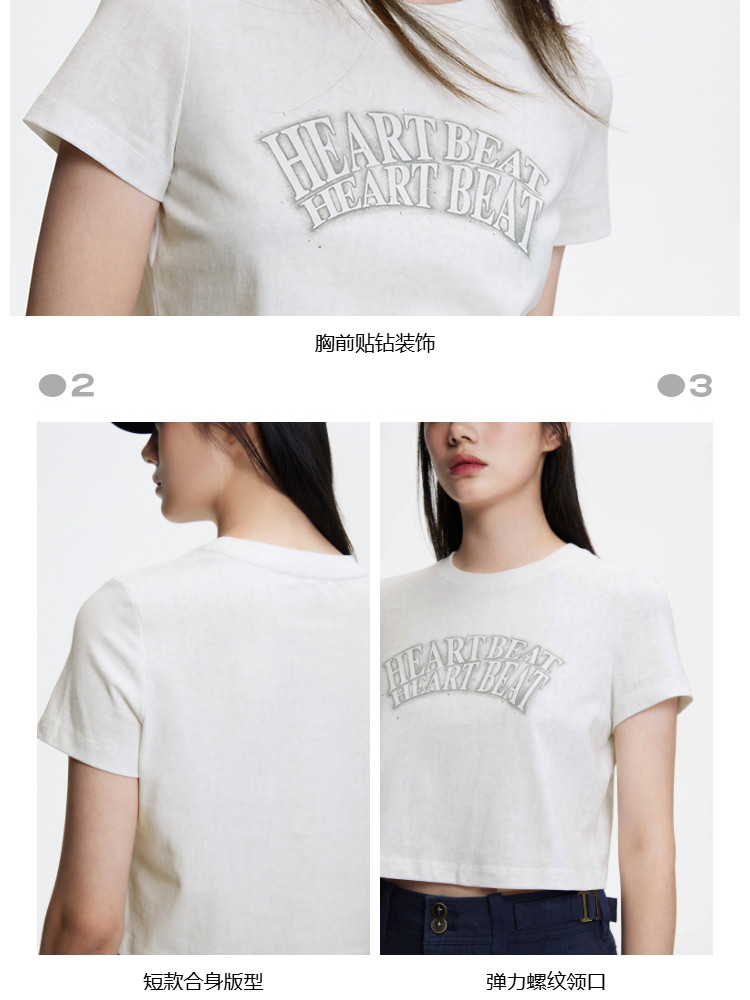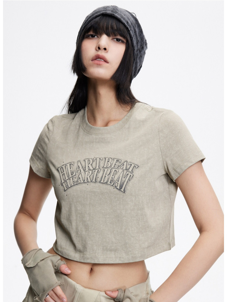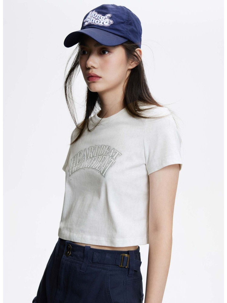 商品名称:【美式正肩T】夏季字母印花修身短款辣妹圆领短袖T恤女 028762