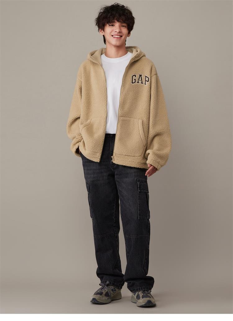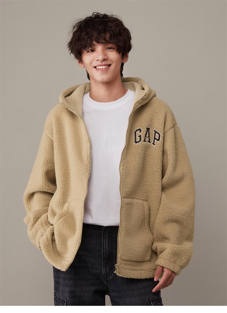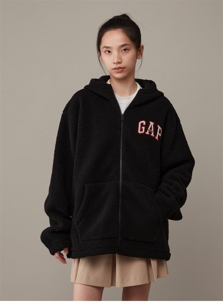 Gap男女装秋冬LOGO仿羊羔绒宽松廓形卫衣841337连帽衫 021850
