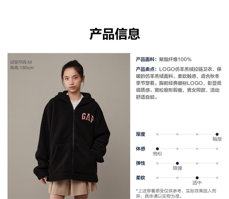 商品名称:Gap男女装秋冬LOGO仿羊羔绒宽松廓形卫衣841337连帽衫 021850
