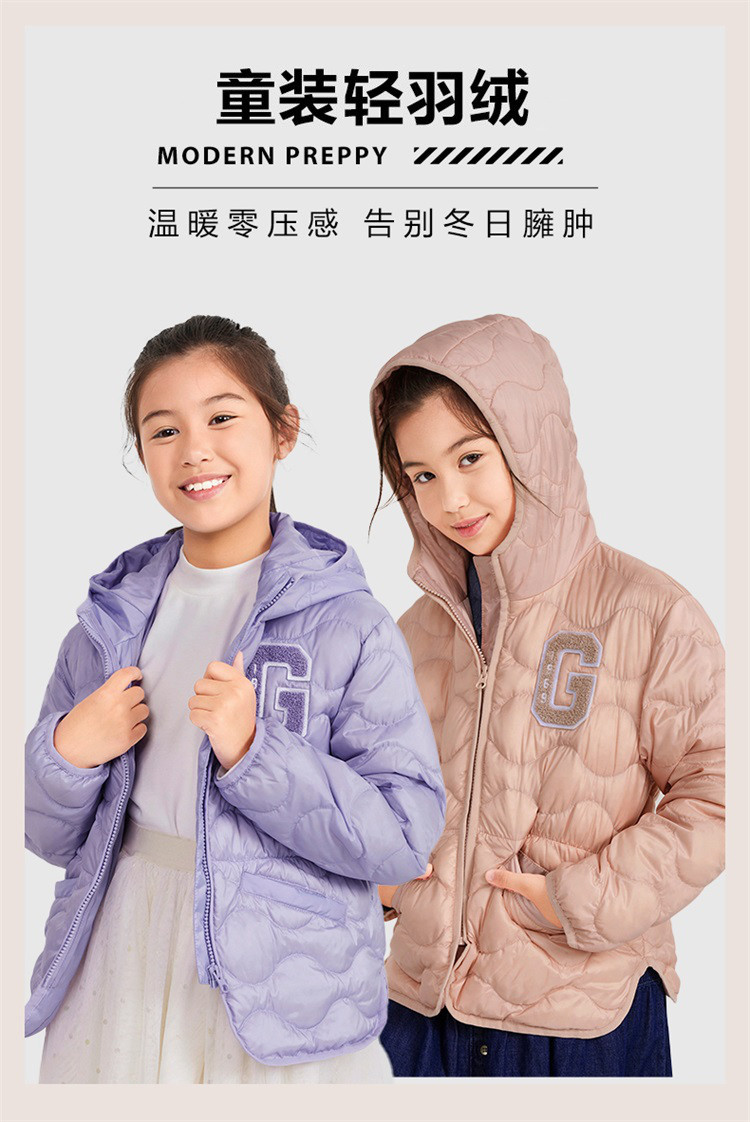 商品名称:Gap女童秋冬LOGO宽松宽松羽绒服721012儿童装加厚外套 017178