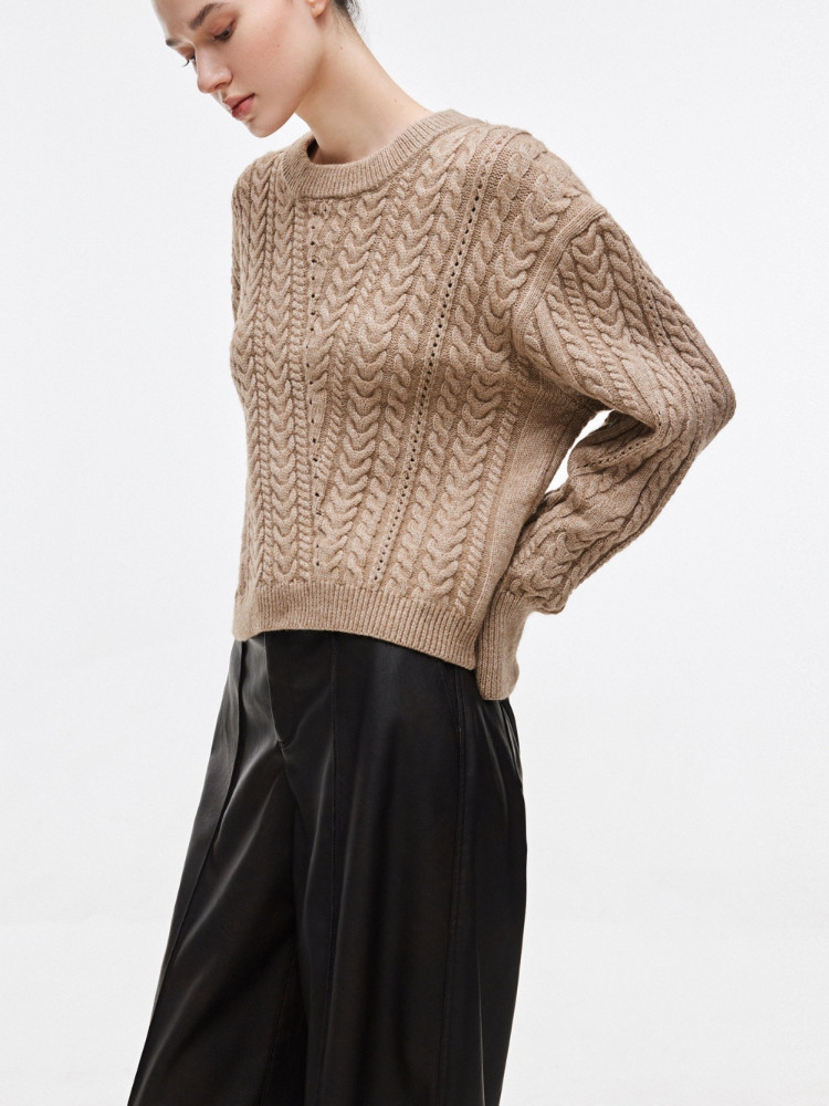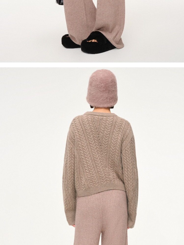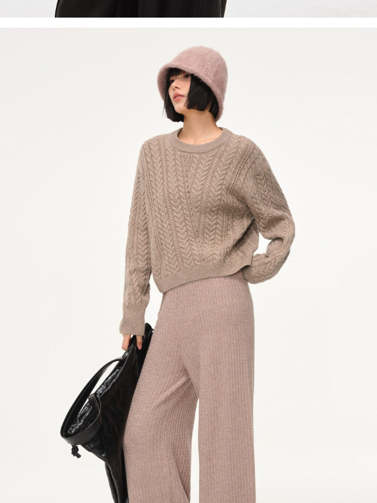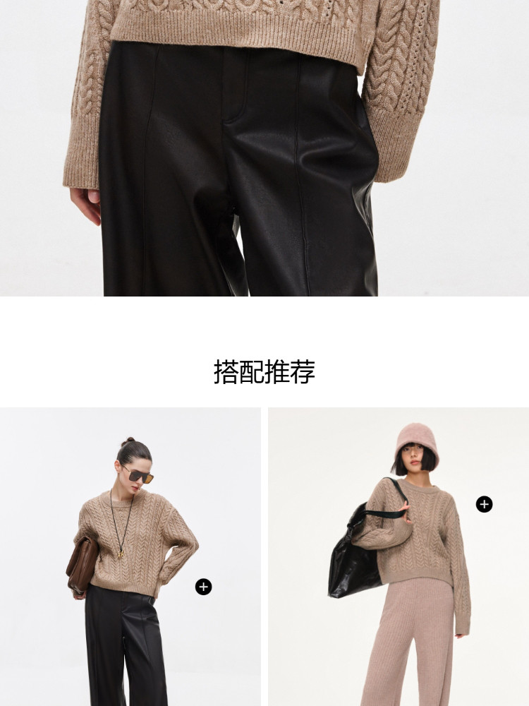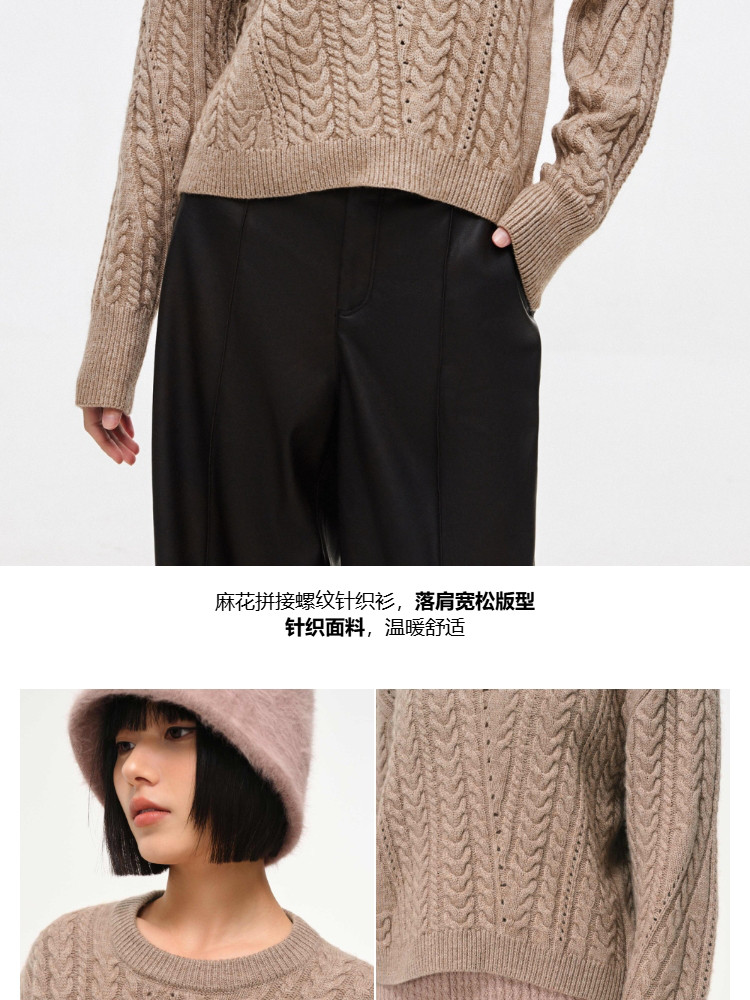 【百搭设计感】麻花拼接宽松螺纹针织衫女 643674