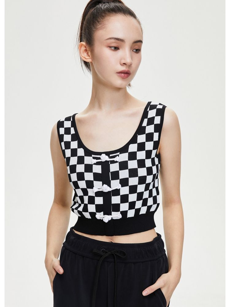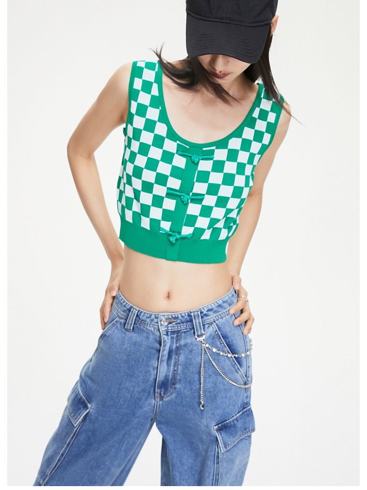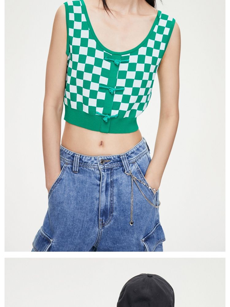 商品名称:【福利秒杀款】夏季无袖盘扣U型领短款针织衫女 347162