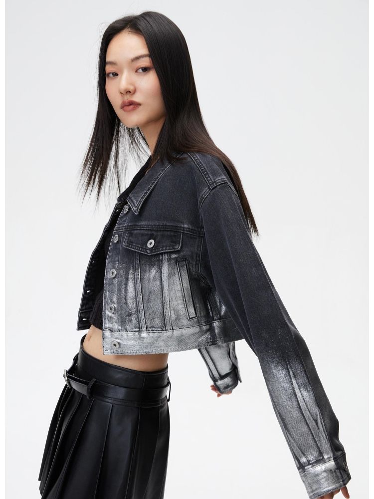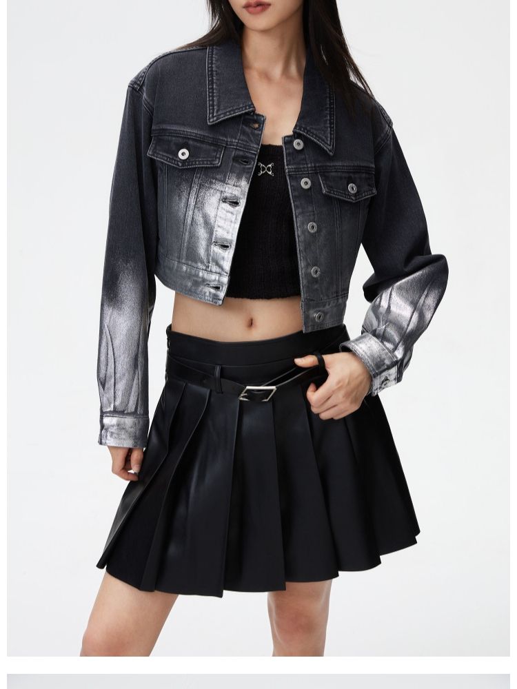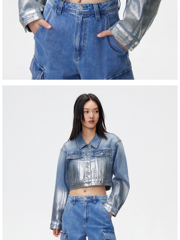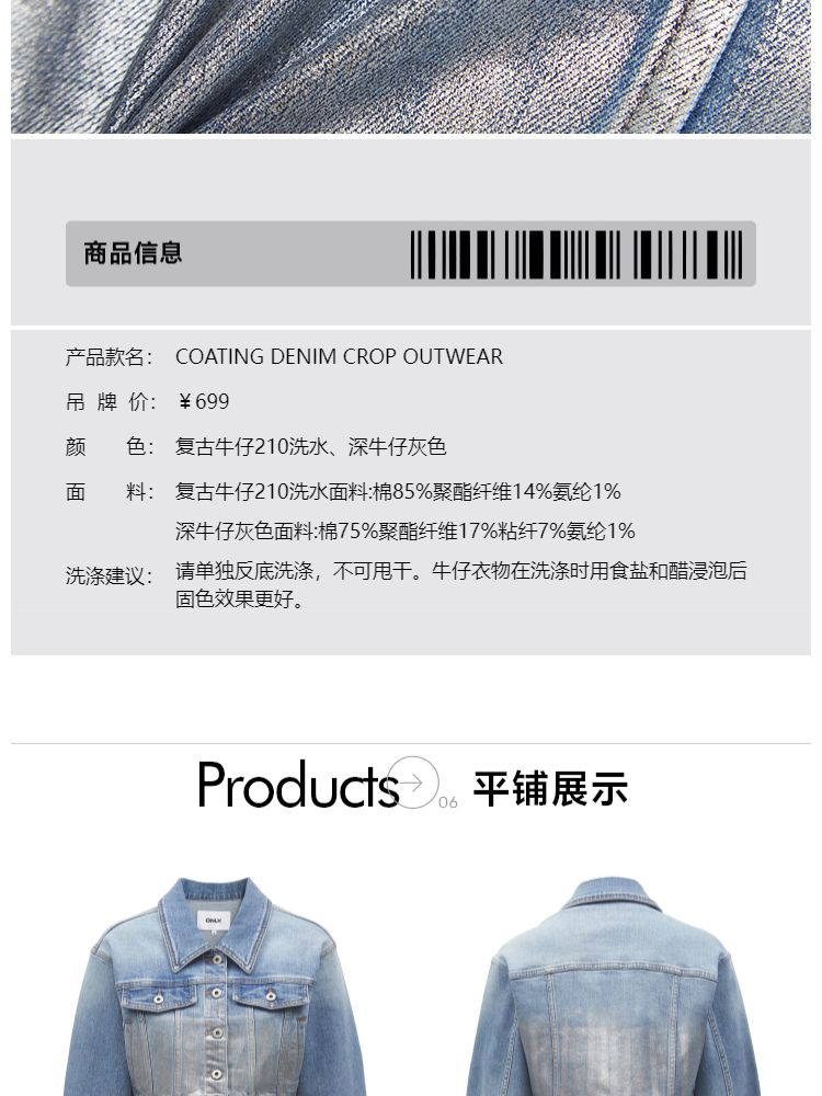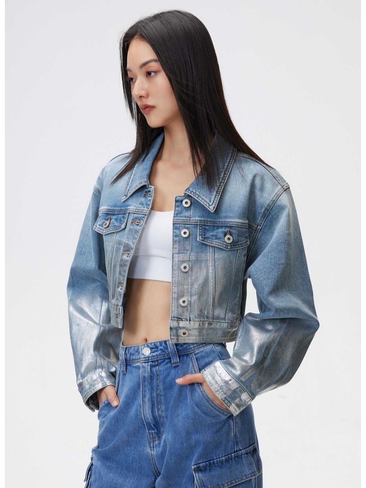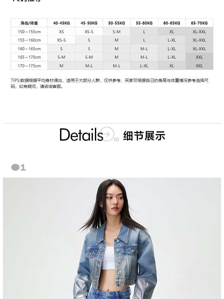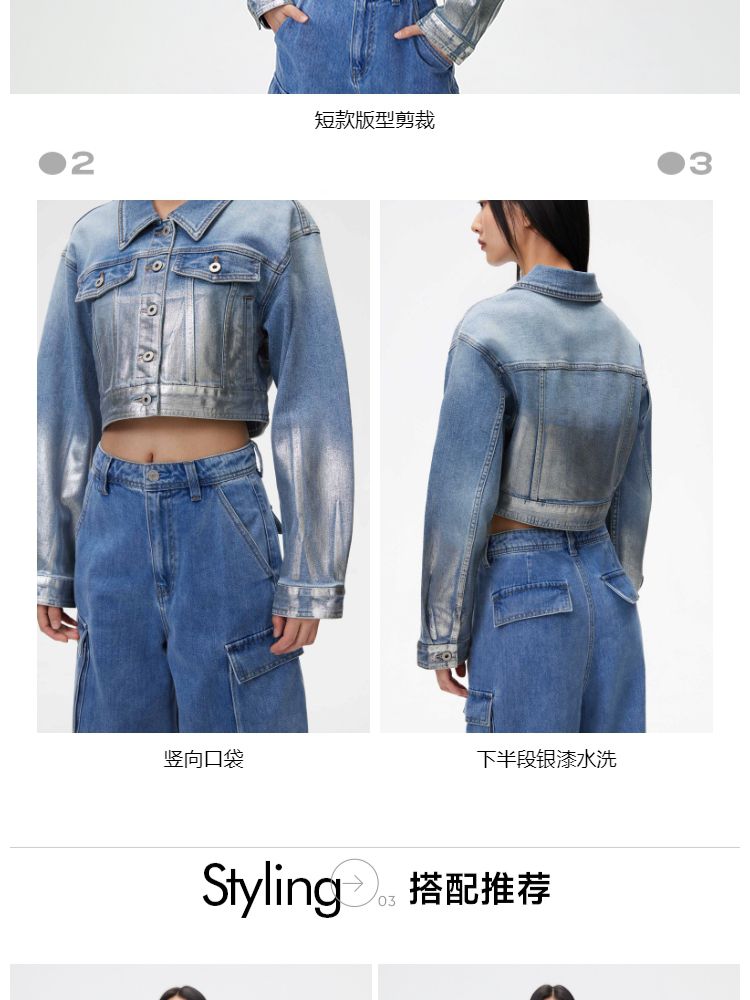 商品名称:【休闲百搭】春季休闲百搭翻领宽松短款牛仔外套女 700826