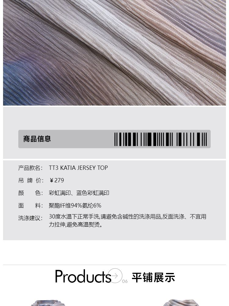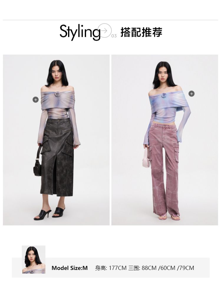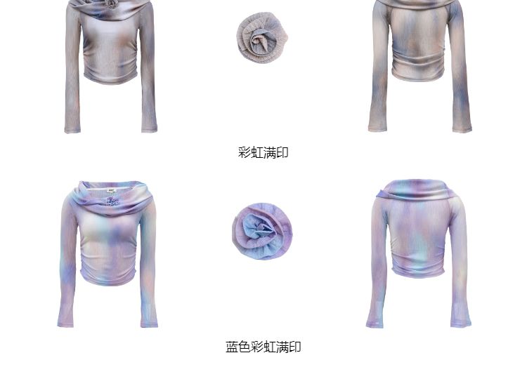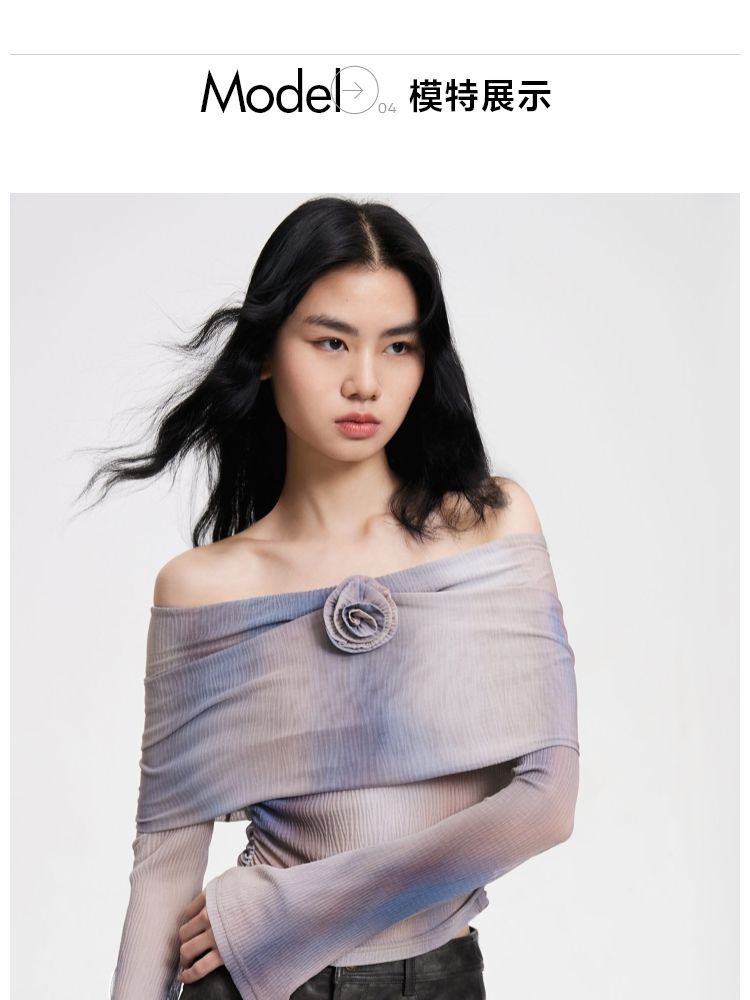 商品名称:【一字肩设计】夏季设计感晕染一字肩长袖T恤女 382298