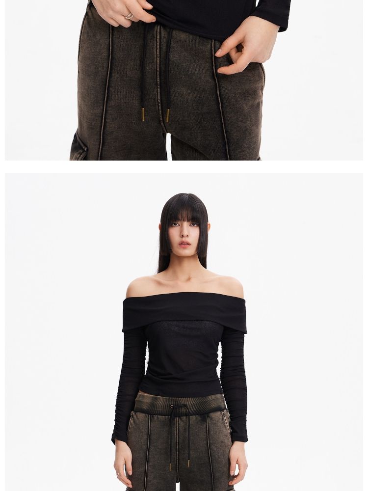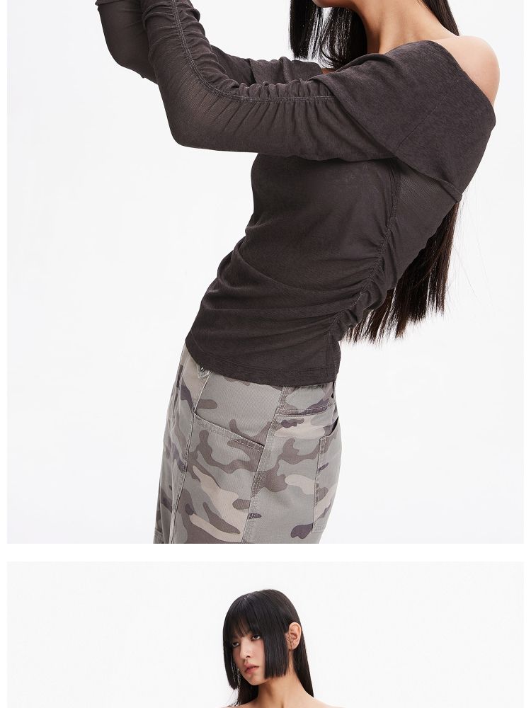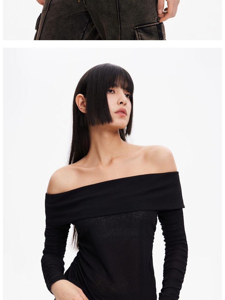 商品名称:【一字领设计】夏季一字领弹力修身短款长袖T恤女 662298