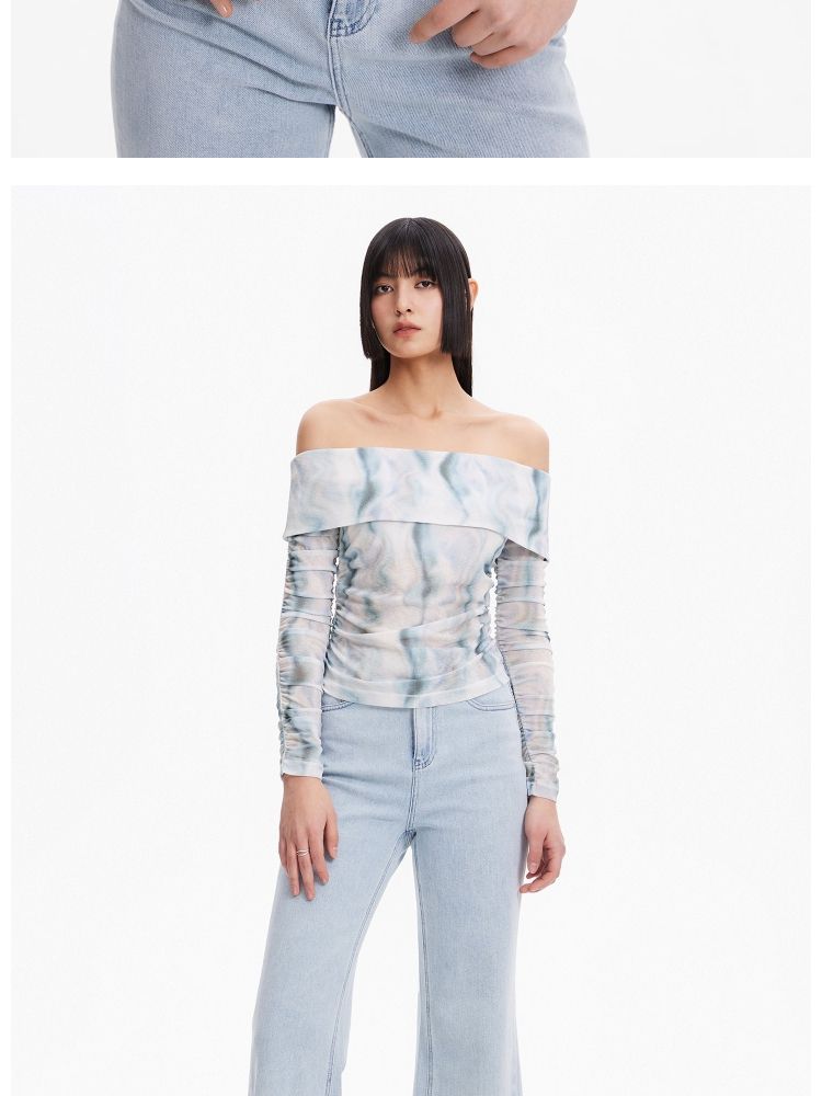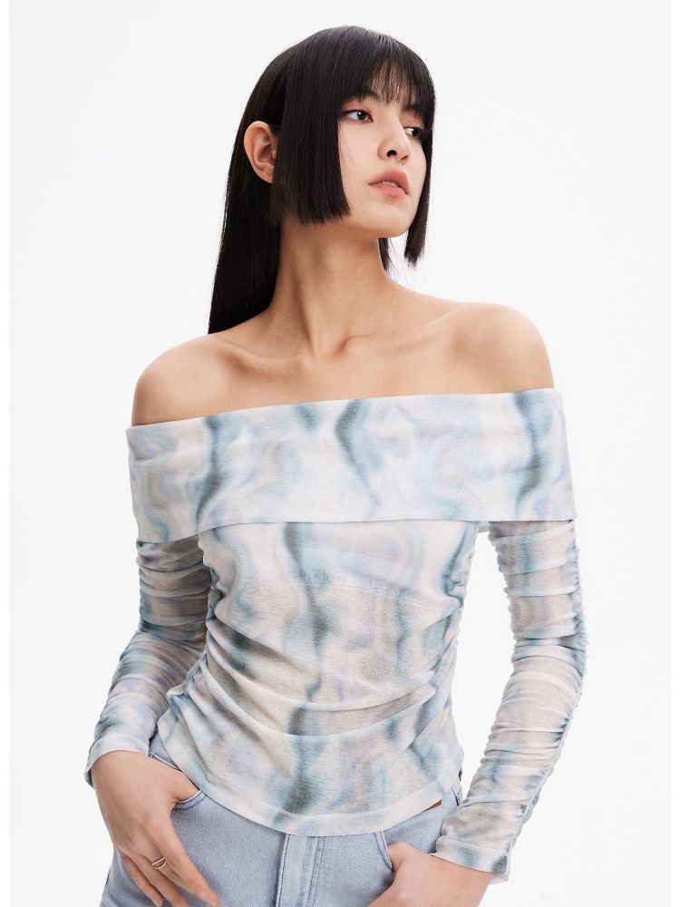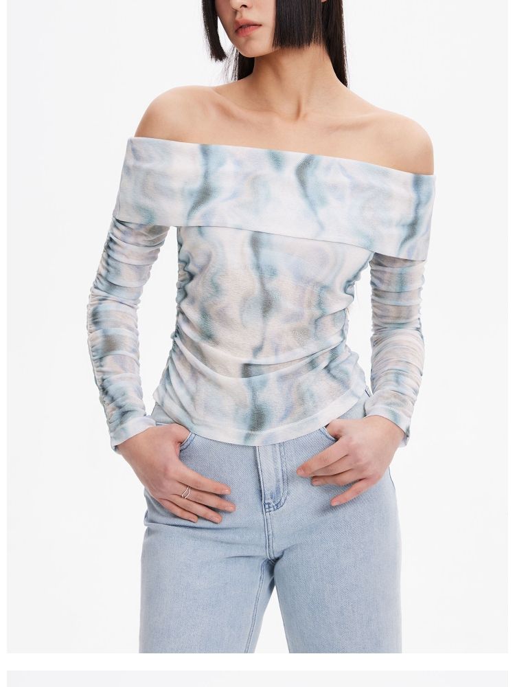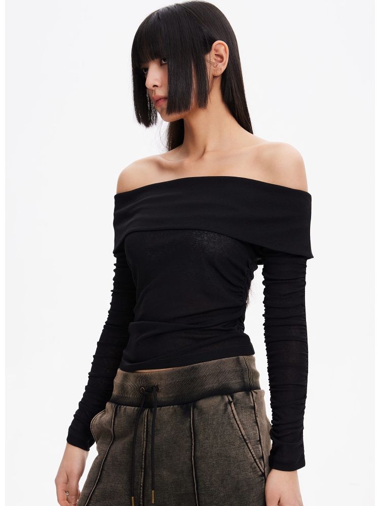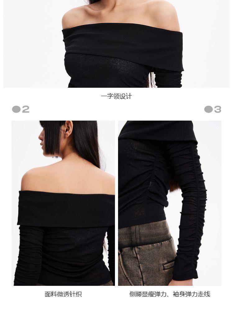 【一字领设计】夏季一字领弹力修身短款长袖T恤女 662298