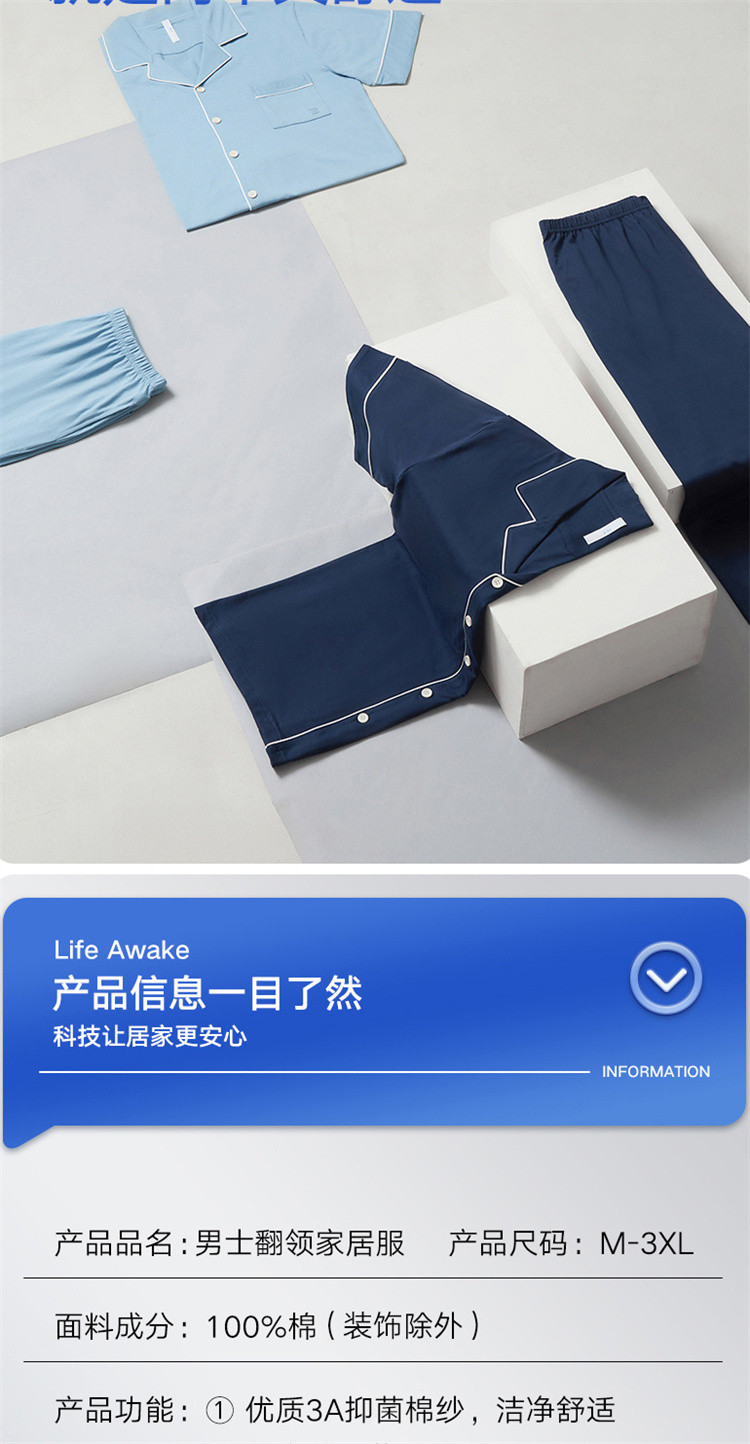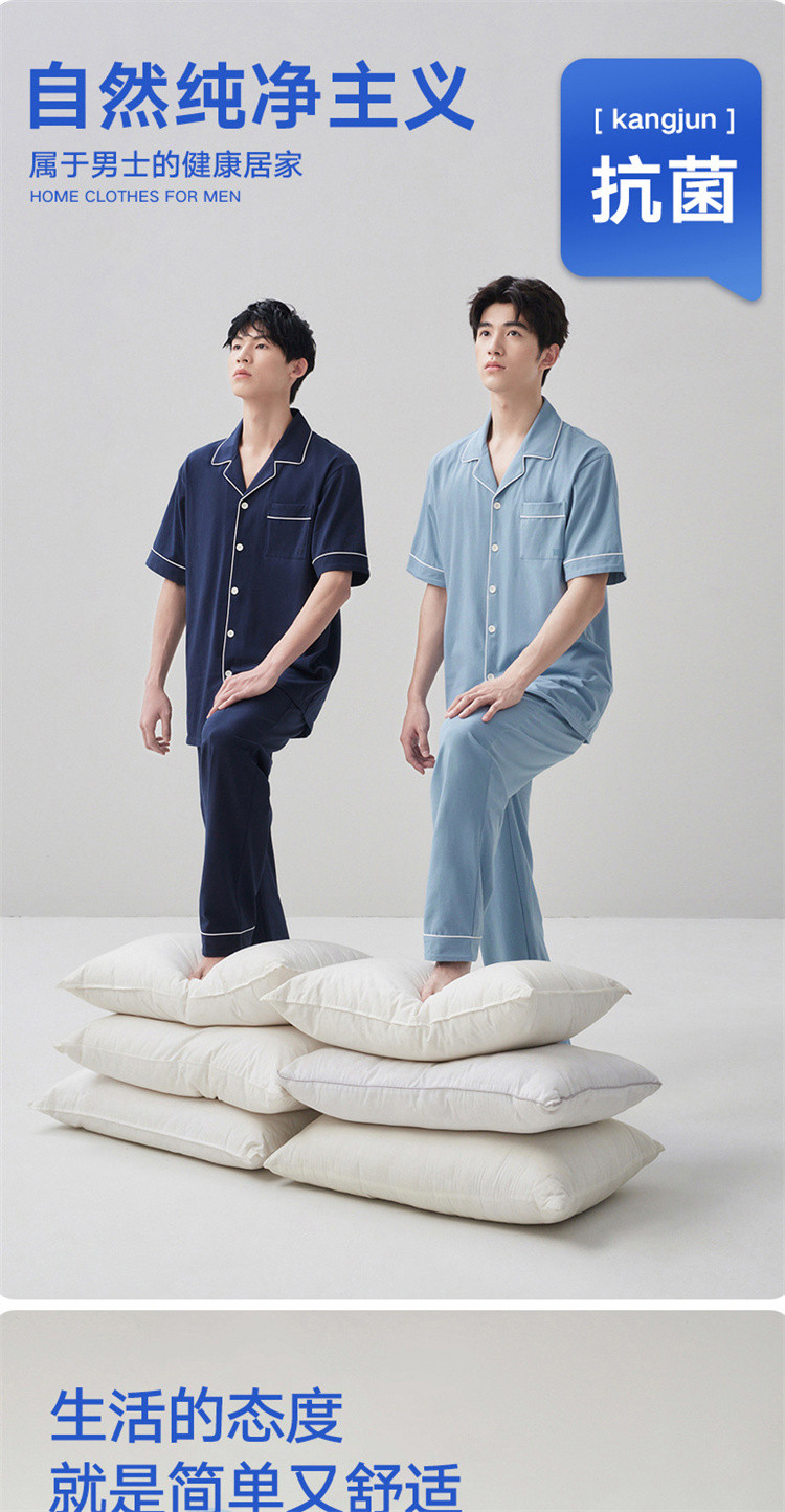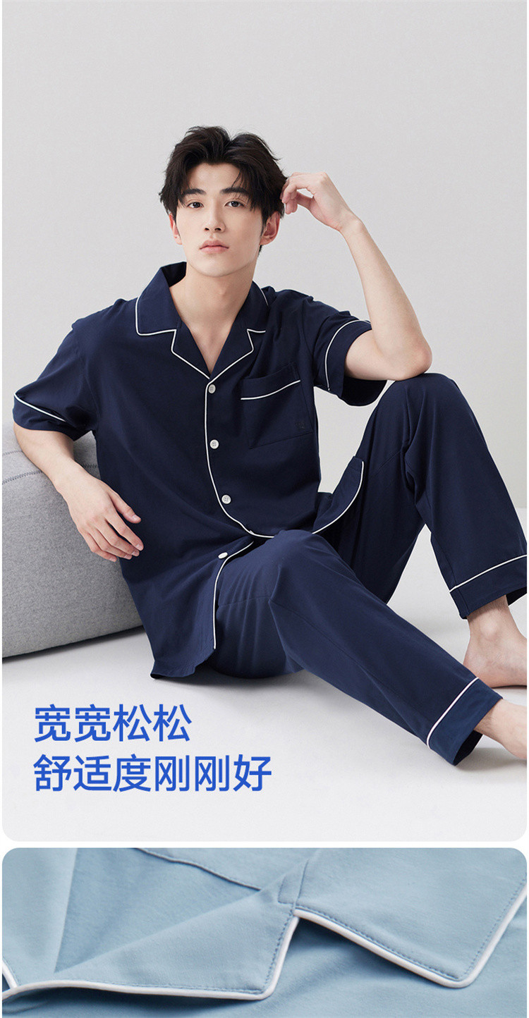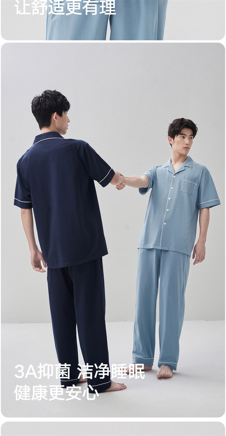 商品名称:【100%纯棉 3A抑菌】男士睡衣男短袖长裤家居服套装可外穿 009050