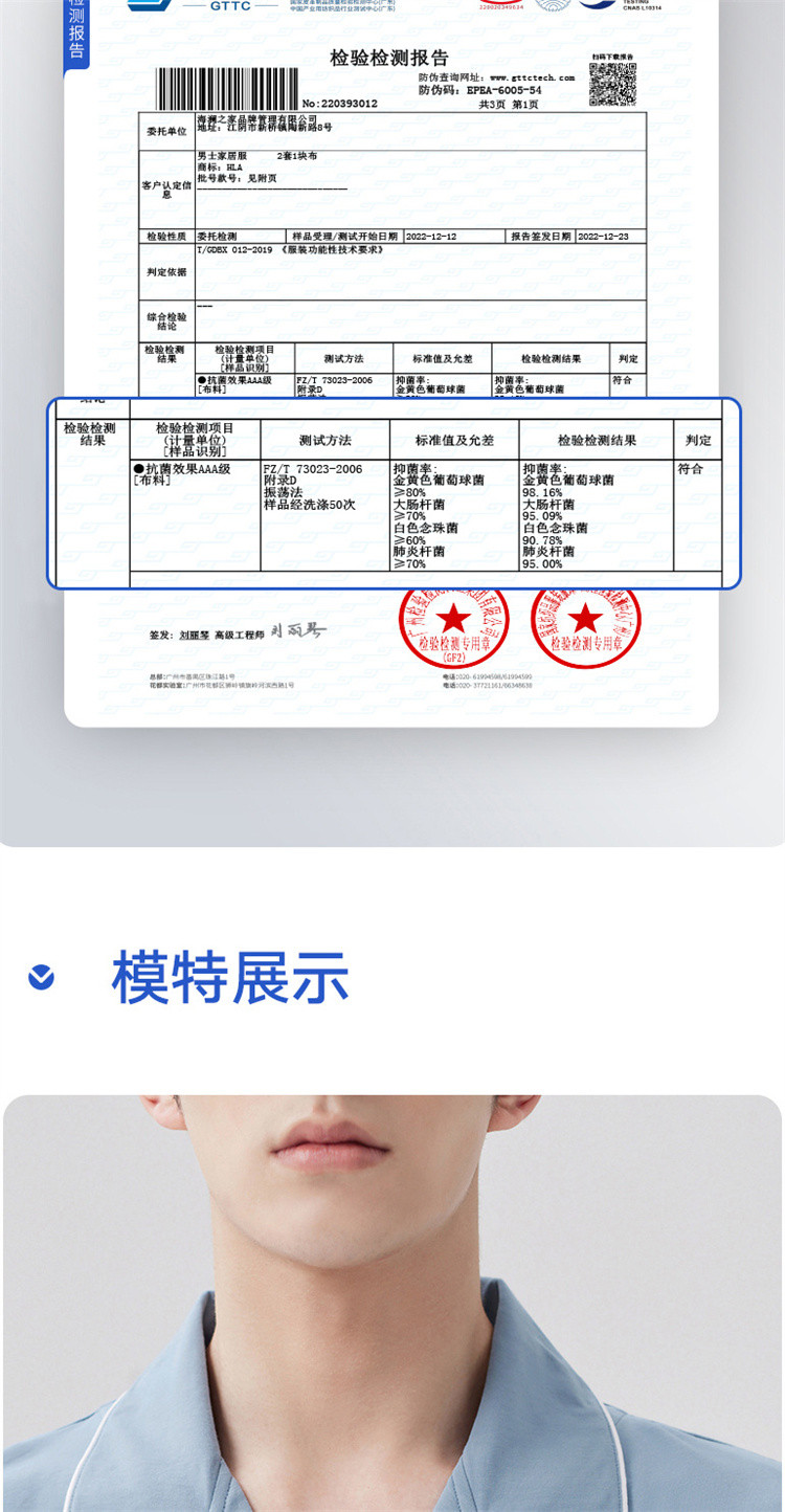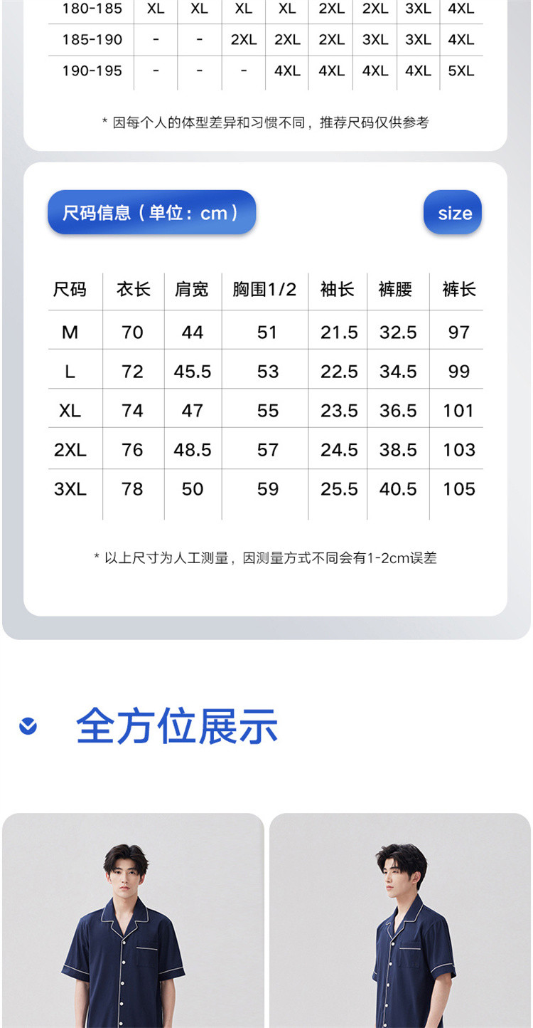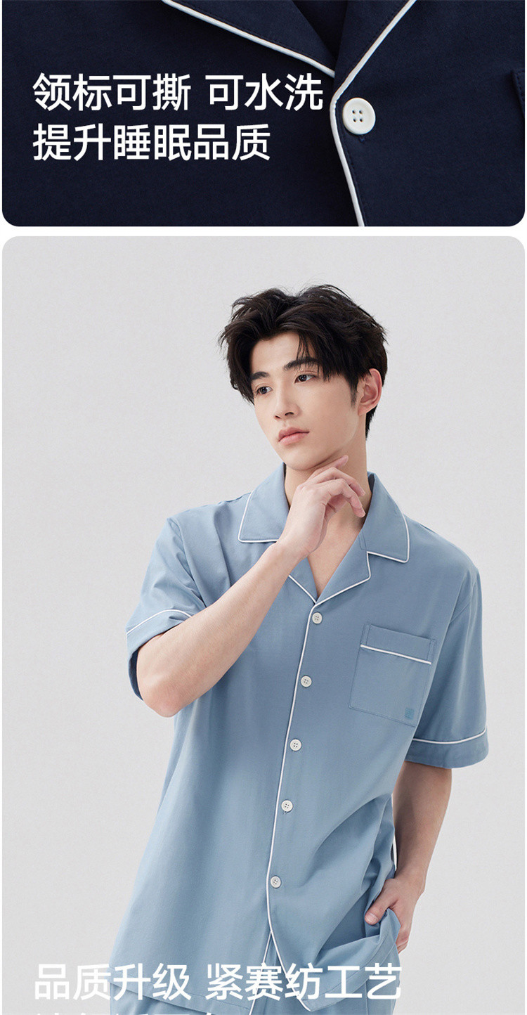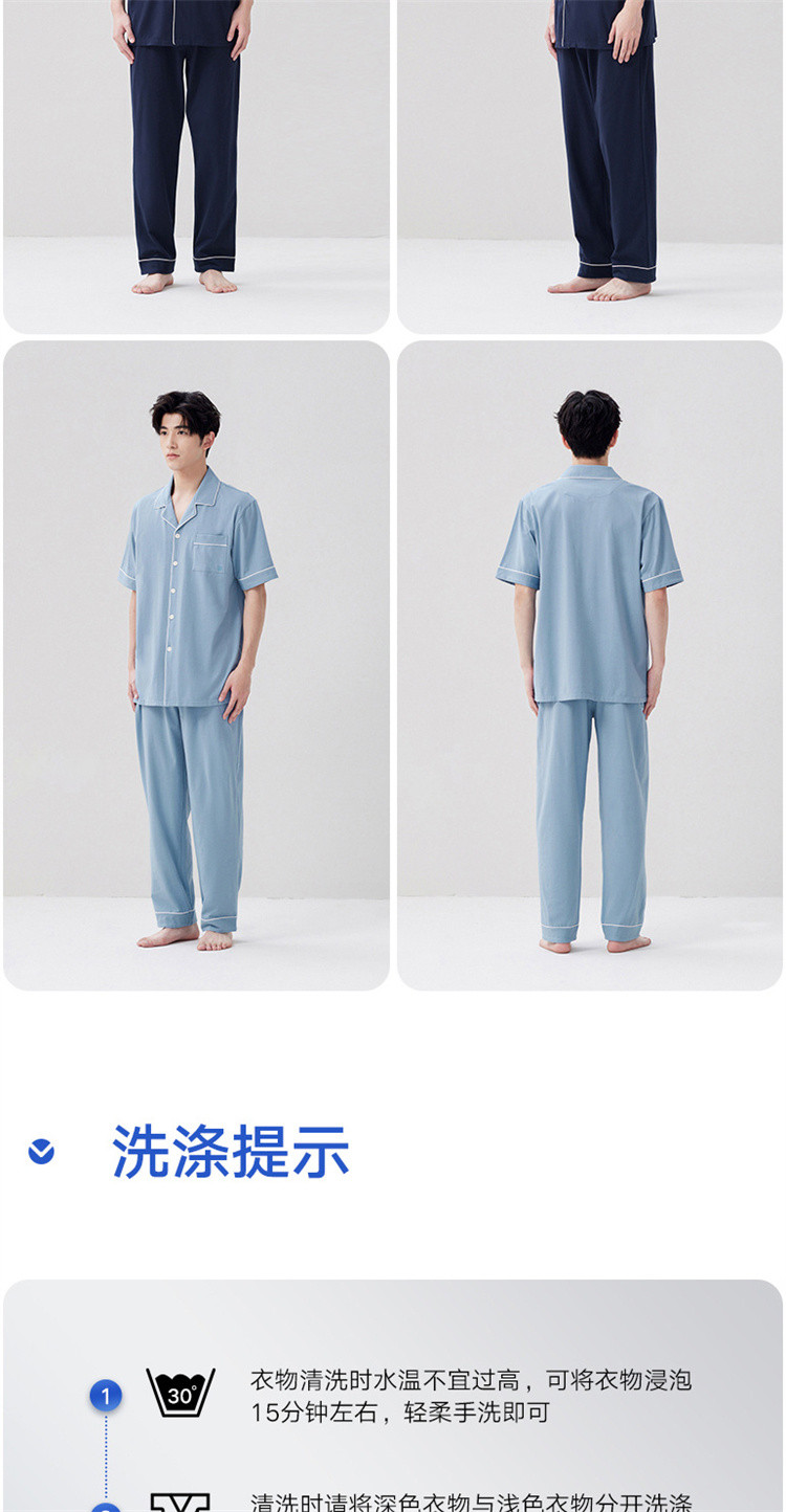 商品名称:【100%纯棉 3A抑菌】男士睡衣男短袖长裤家居服套装可外穿 009050