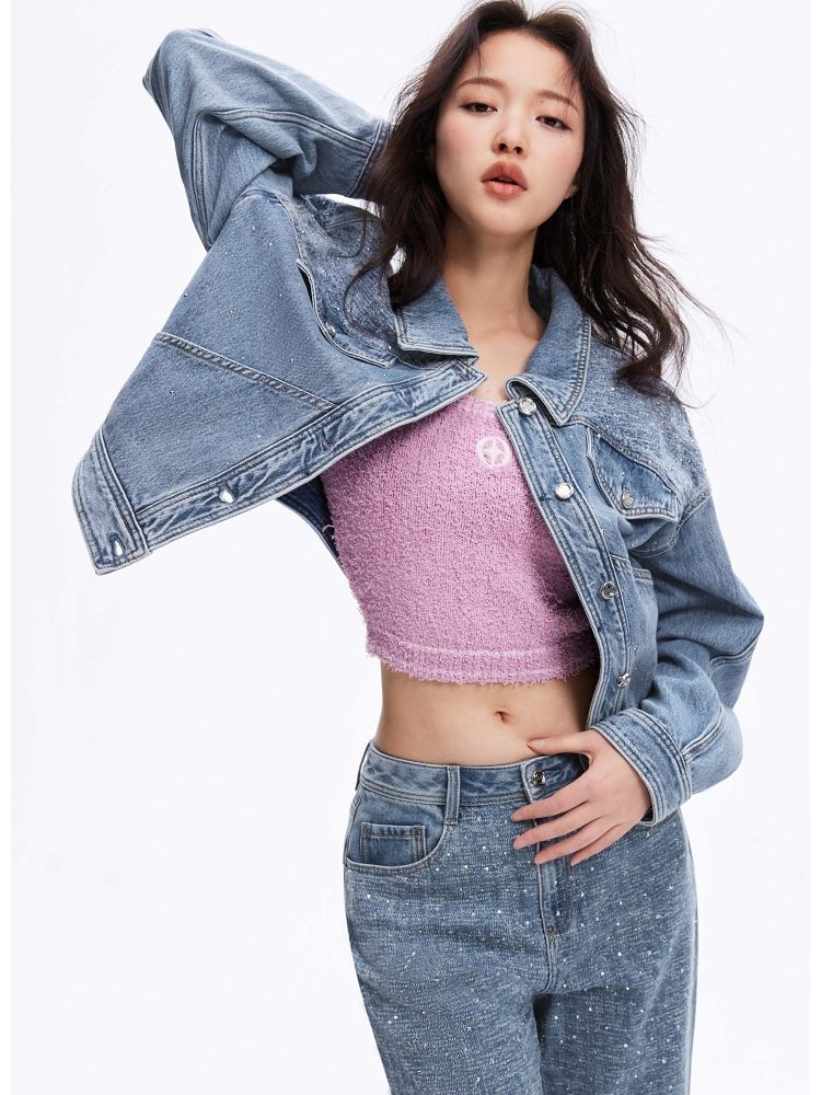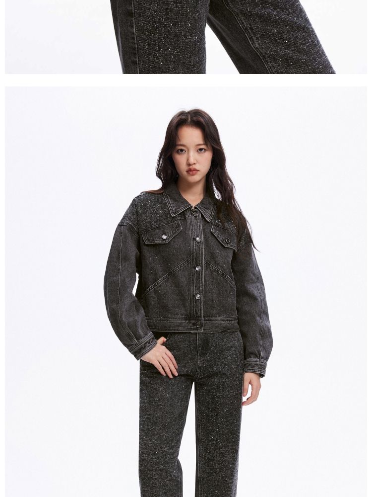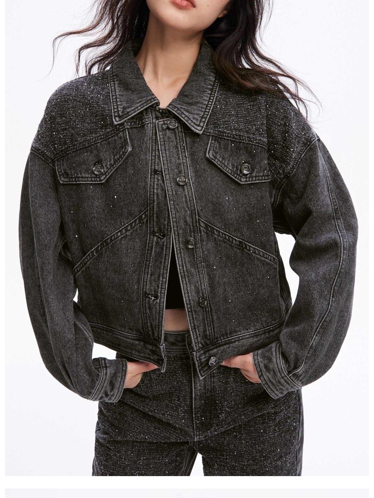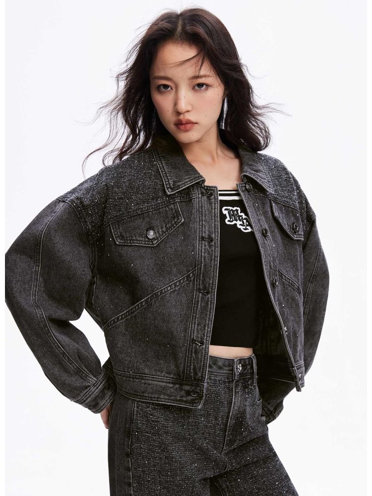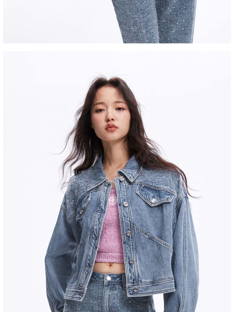 【简约宽松】春季落肩翻领长袖短款牛仔外套女 873690