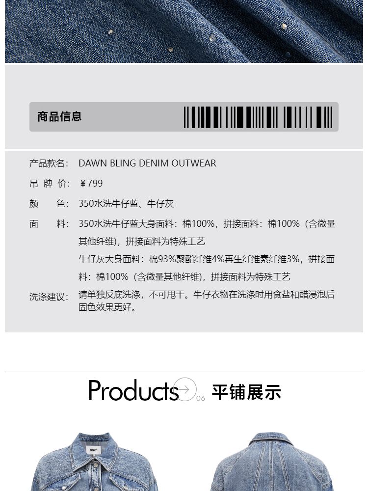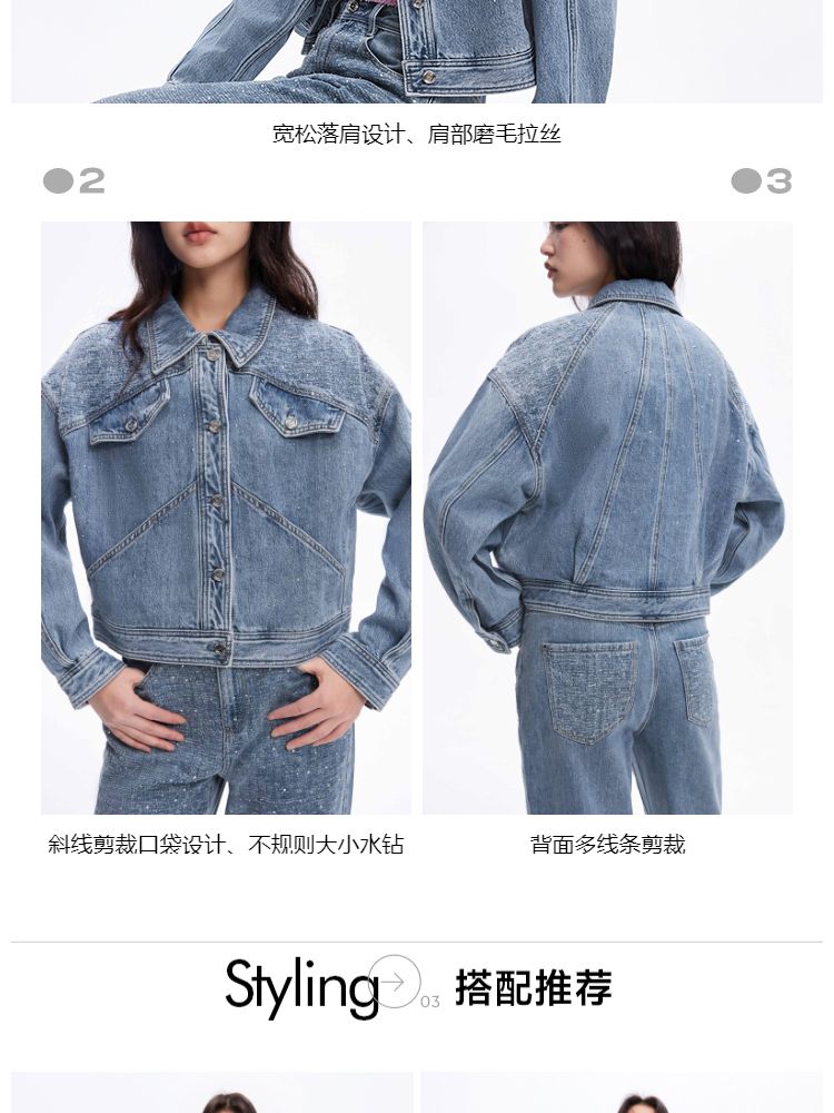 商品名称:【简约宽松】春季落肩翻领长袖短款牛仔外套女 873690