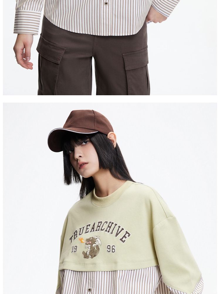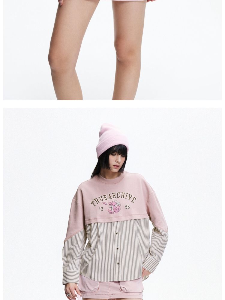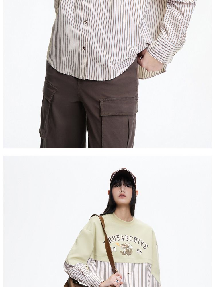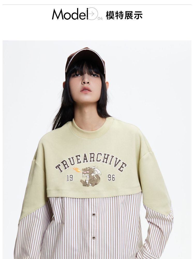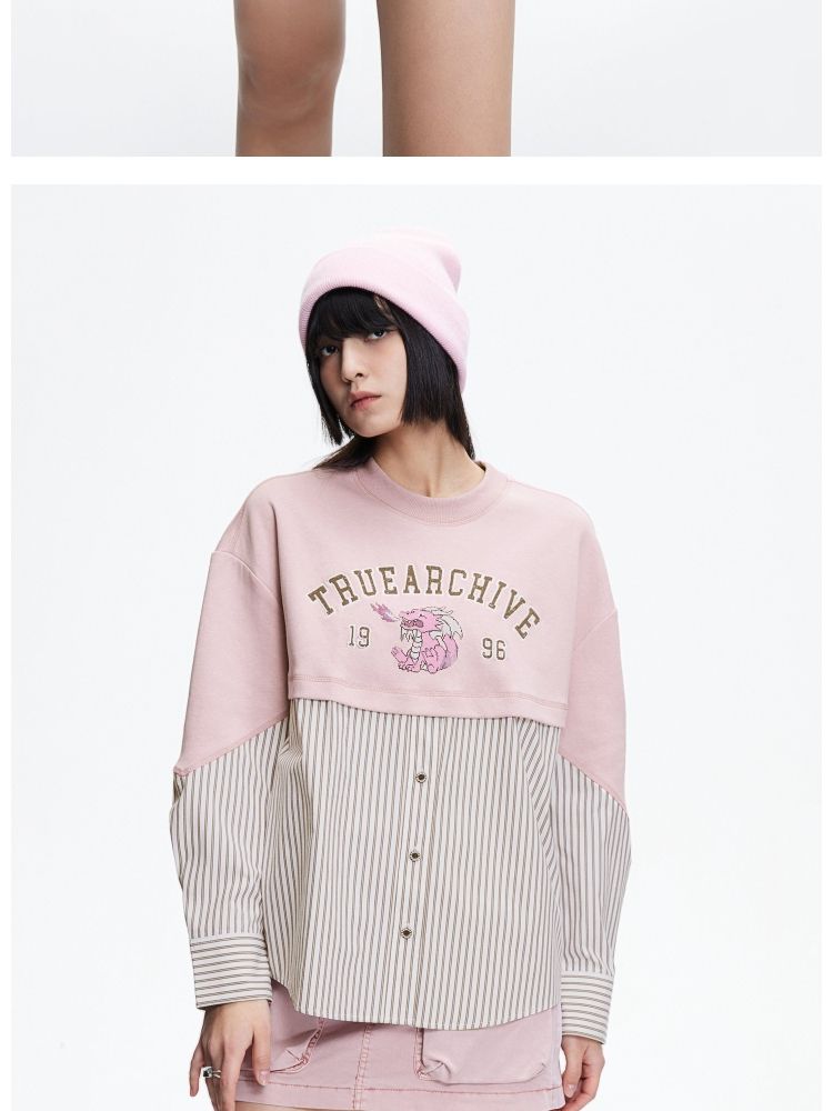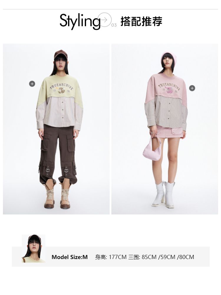 商品名称:【宽松落肩】春季时尚拼接宽松落肩长袖雪纺衫女 330586