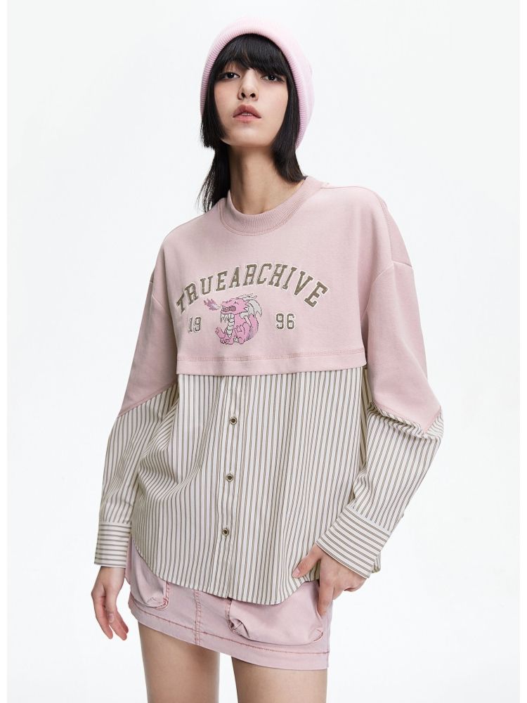 【宽松落肩】春季时尚拼接宽松落肩长袖雪纺衫女 330586