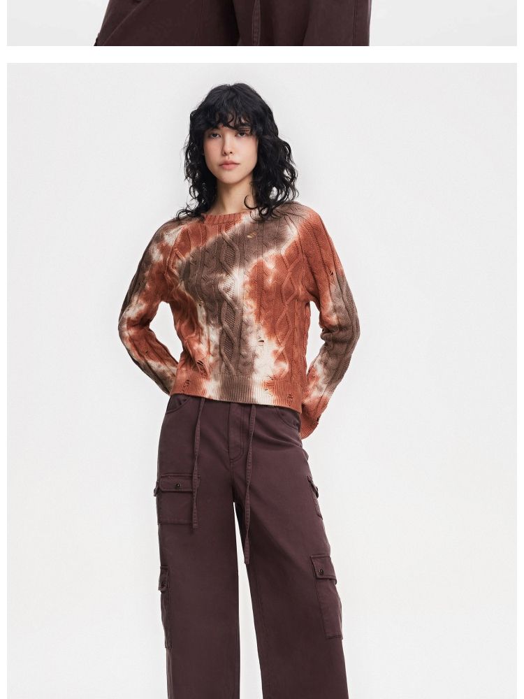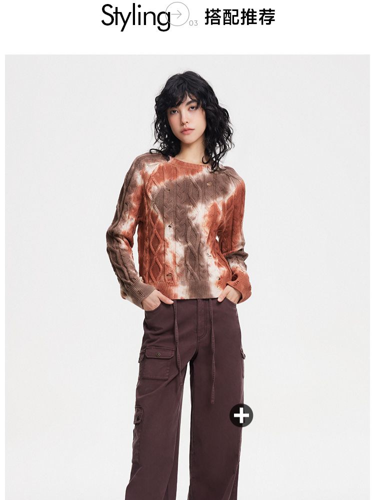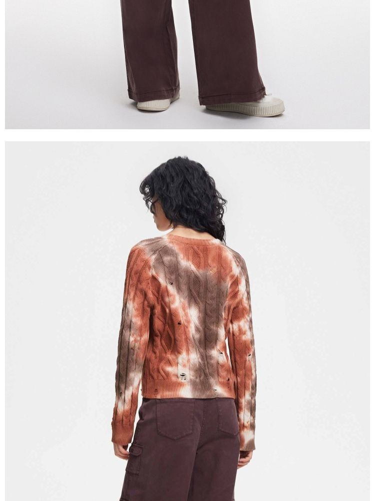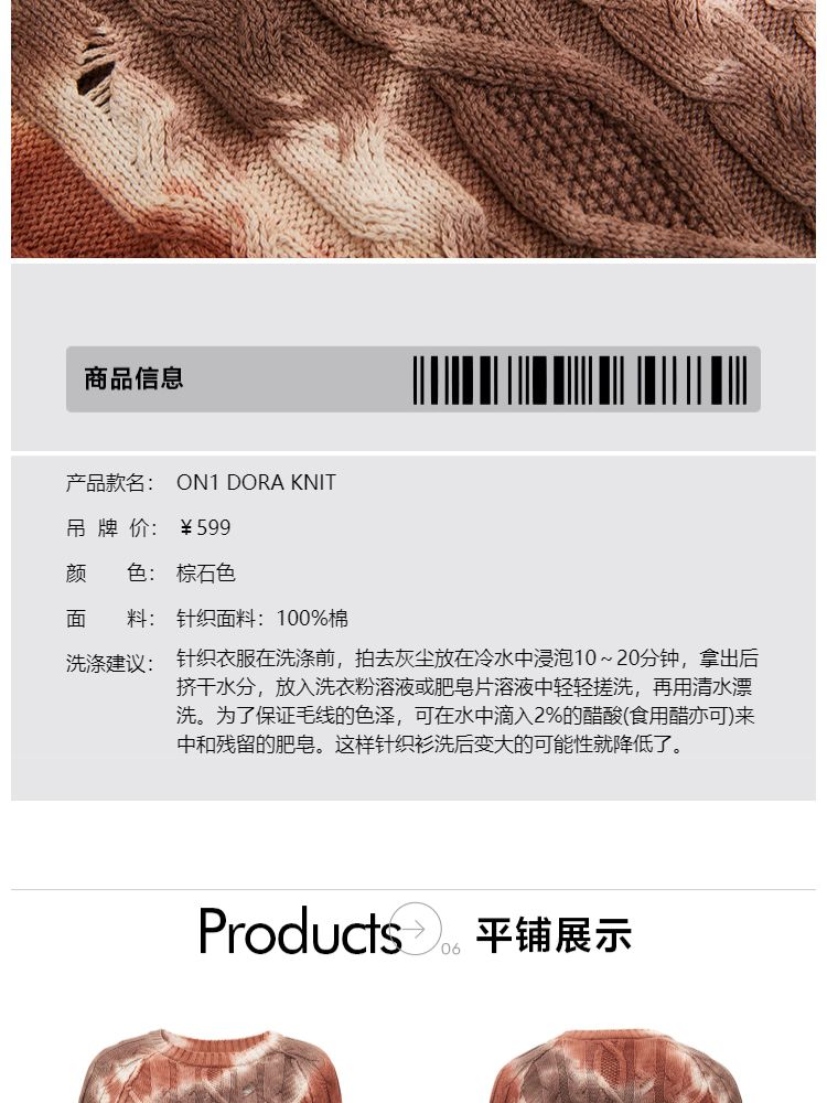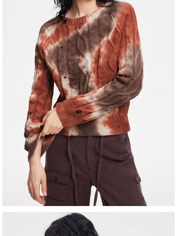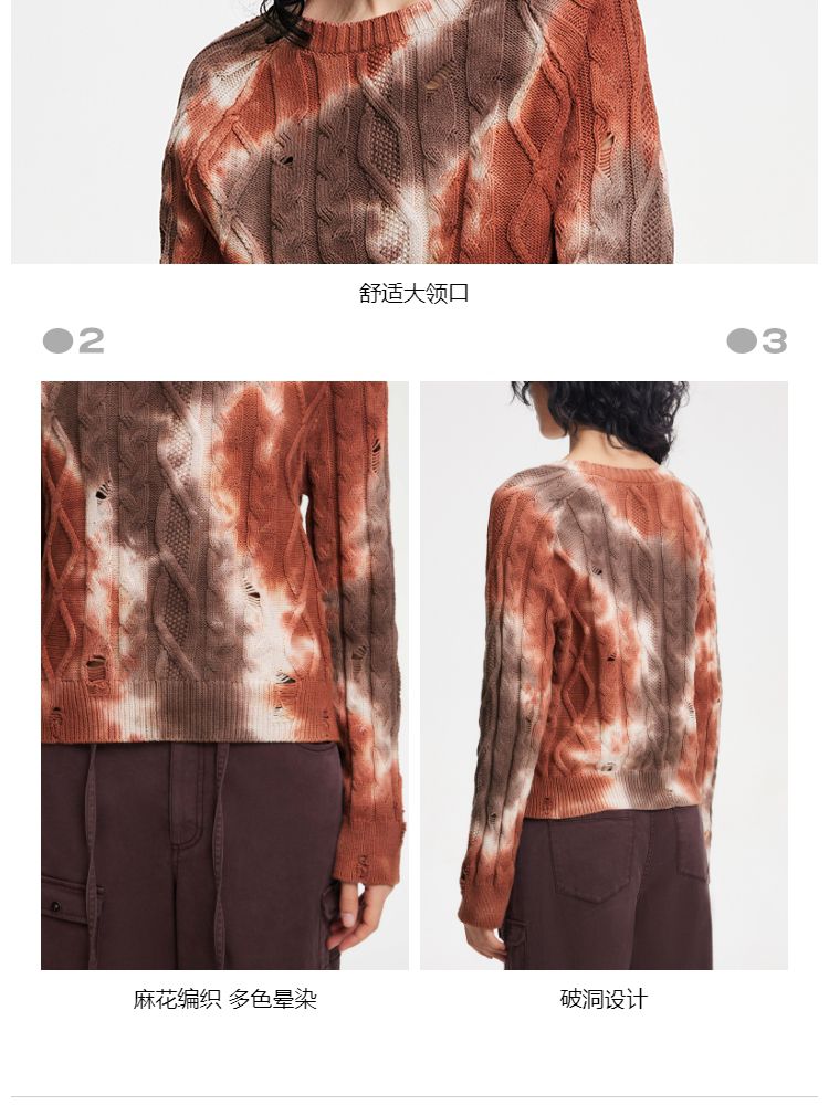 商品名称:【设计感晕染】夏季时尚破洞圆领针织衫女 553306