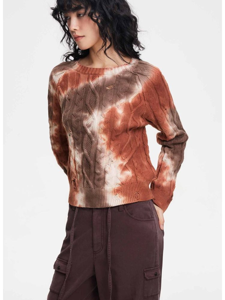【设计感晕染】夏季时尚破洞圆领针织衫女 553306