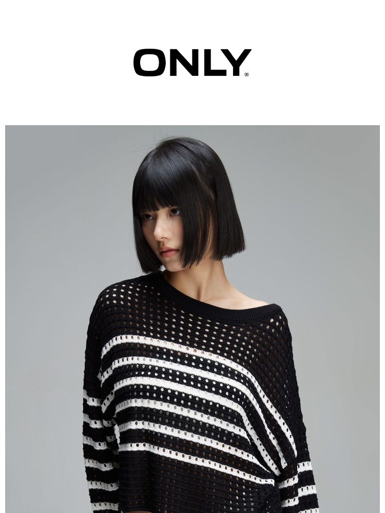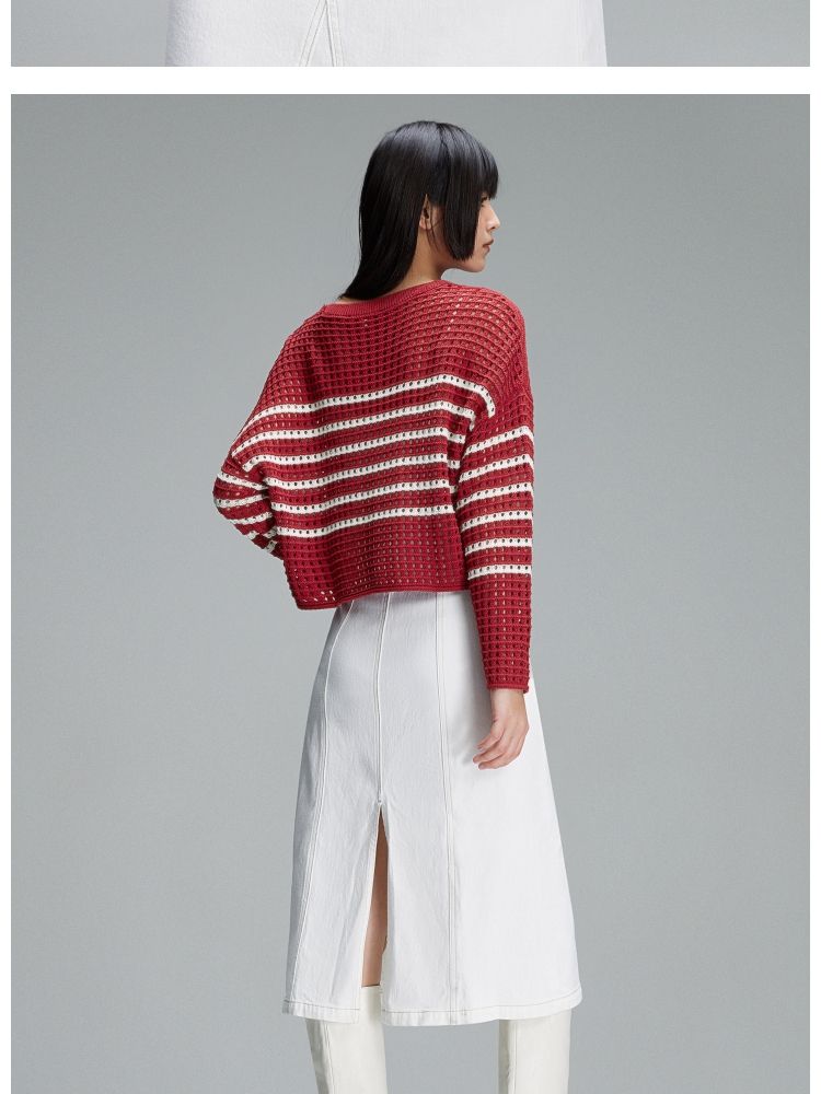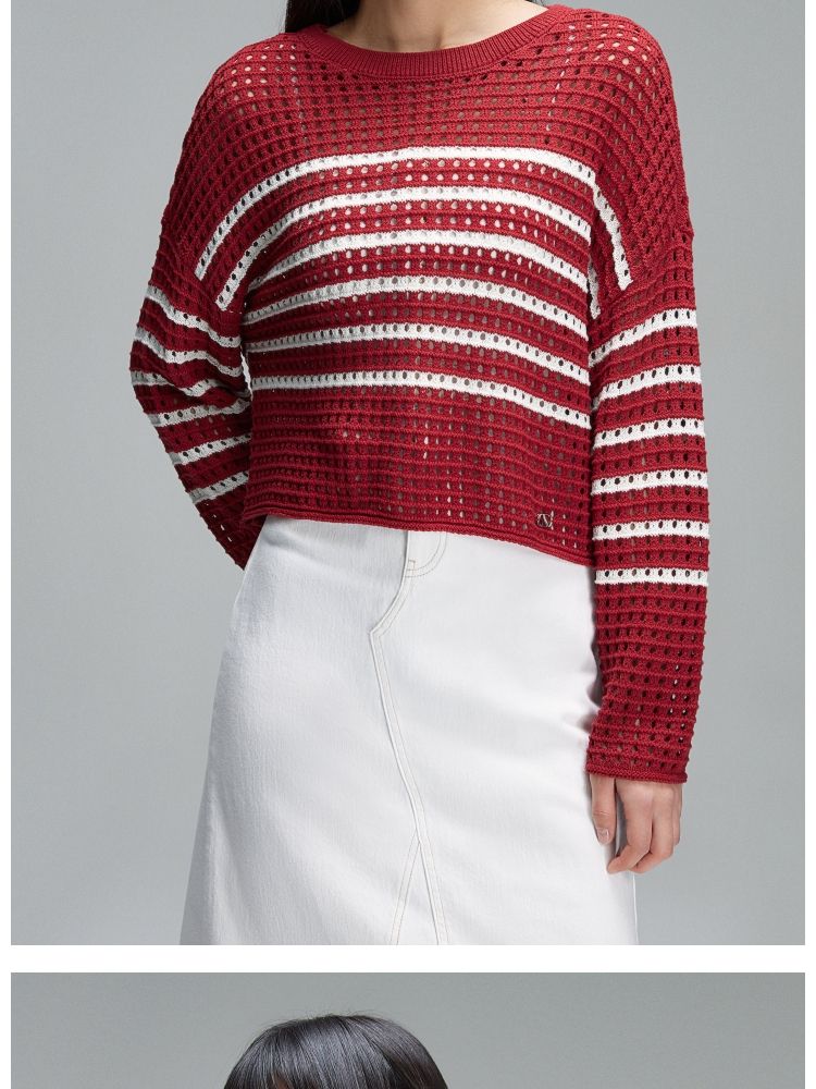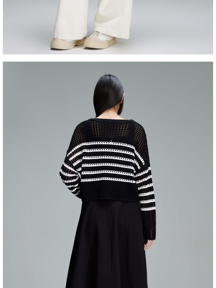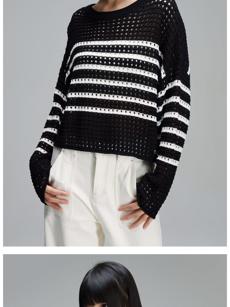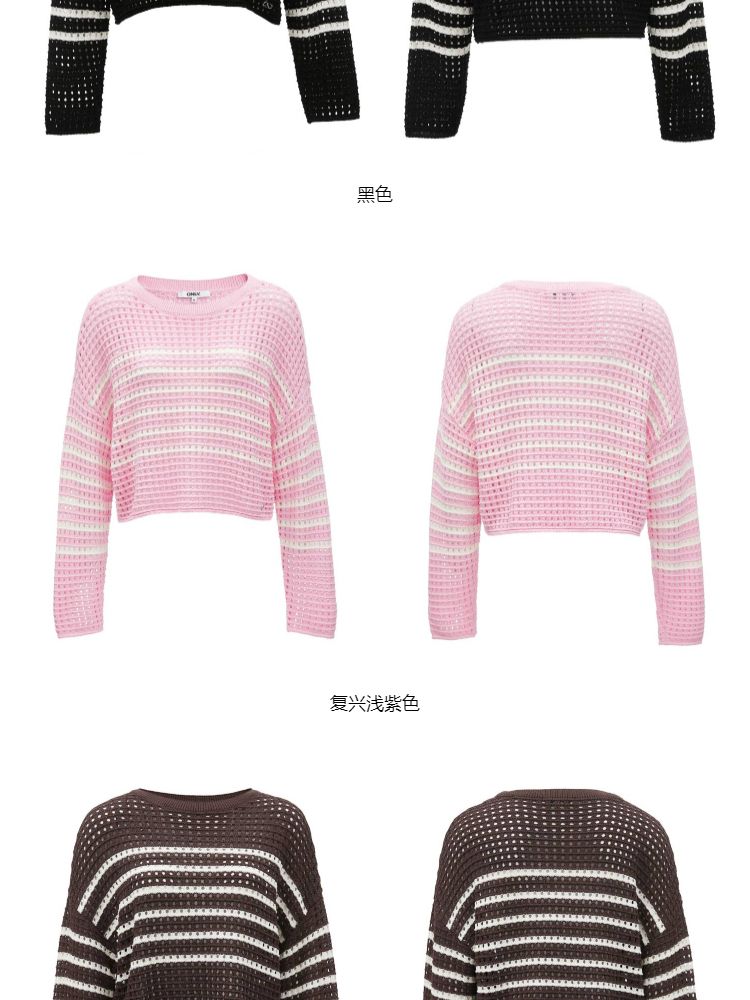 商品名称:【宽松落肩】夏季镂空条纹宽松落肩短款毛衣针织衫女 854490