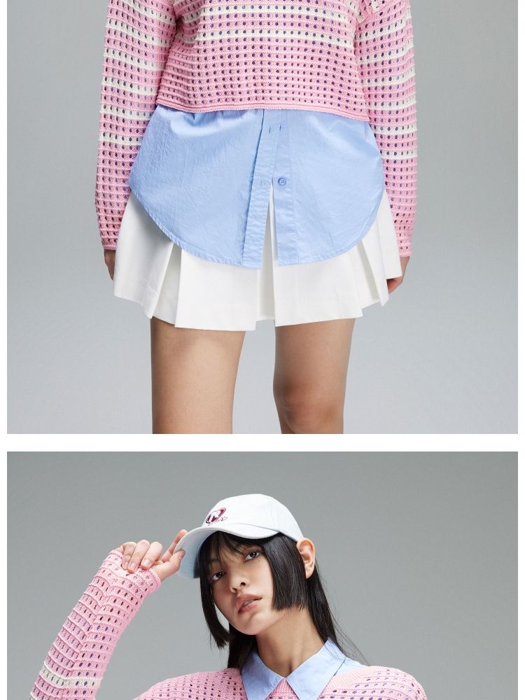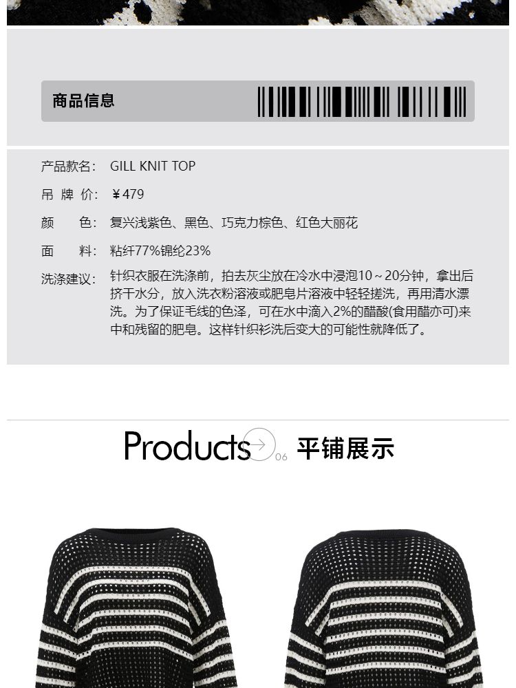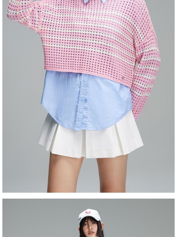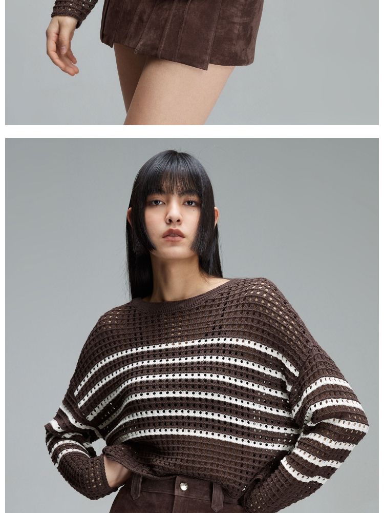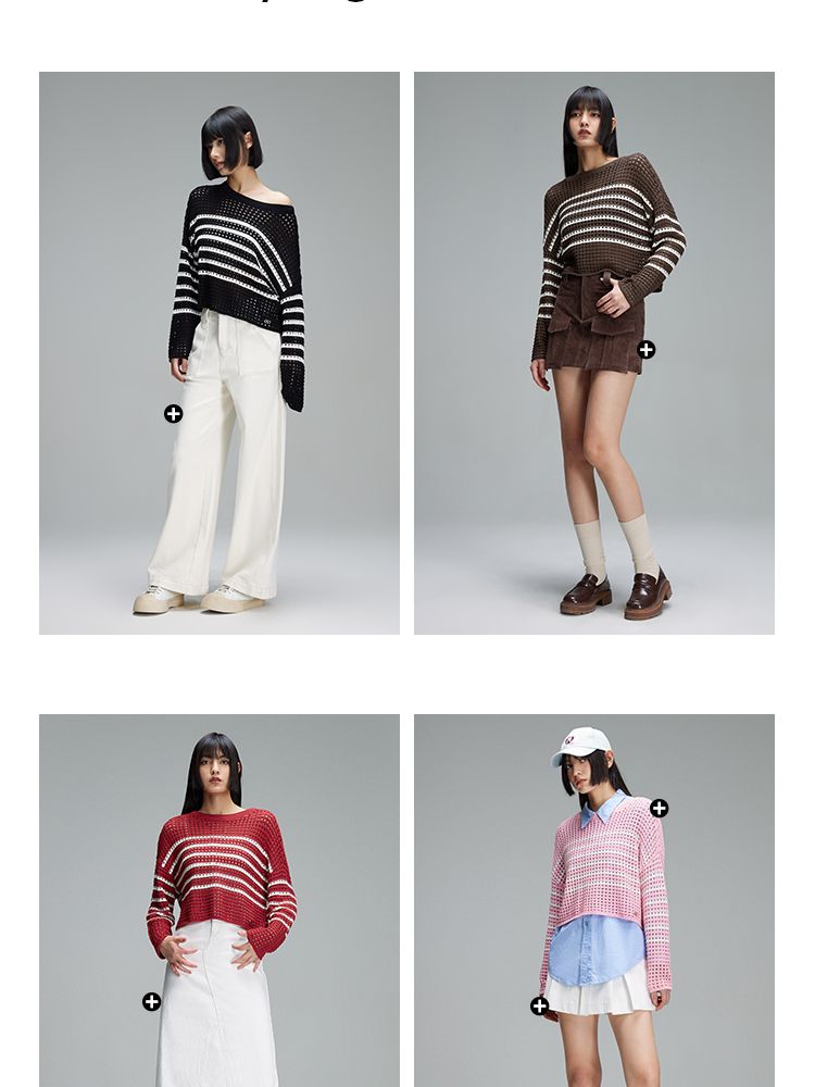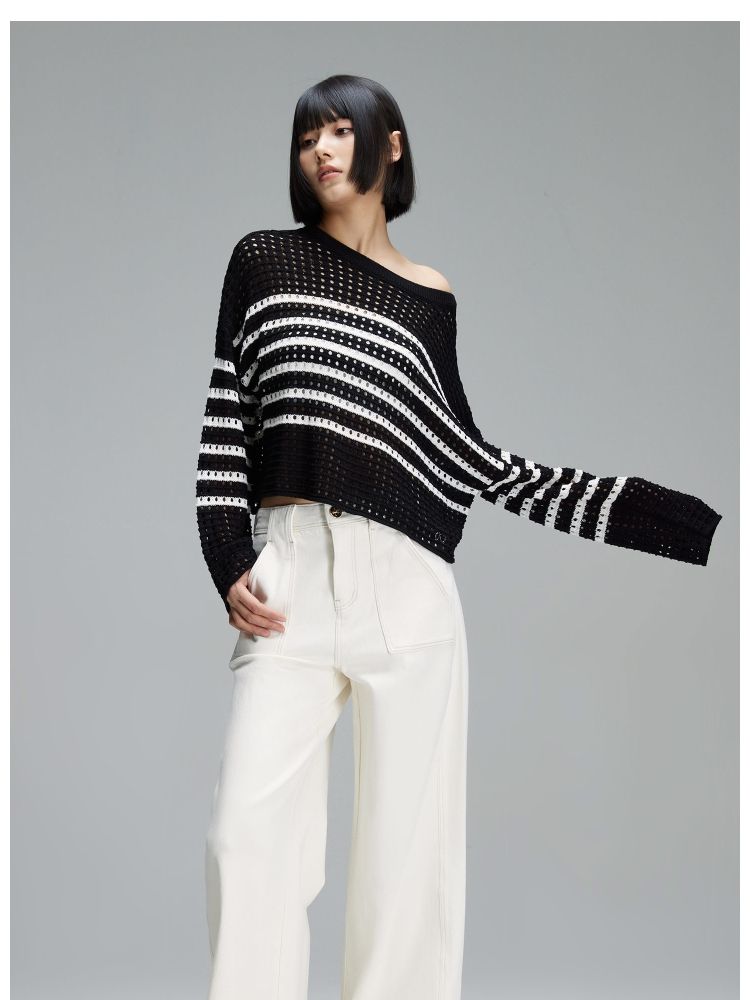 商品名称:【宽松落肩】夏季镂空条纹宽松落肩短款毛衣针织衫女 854490