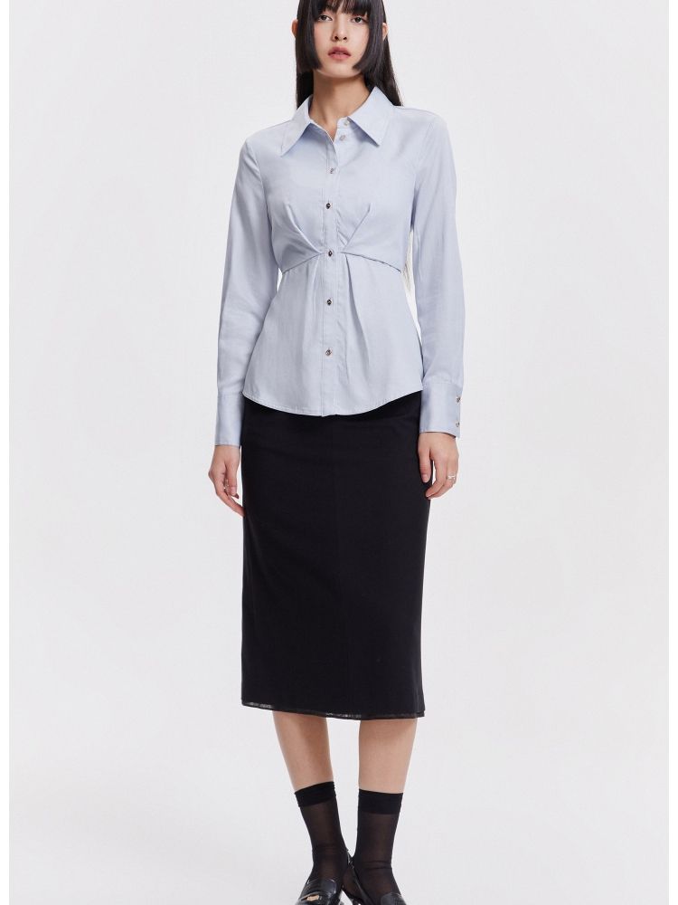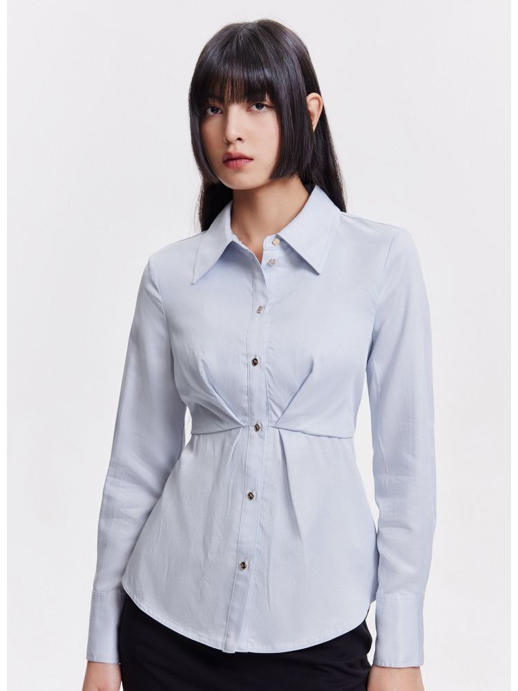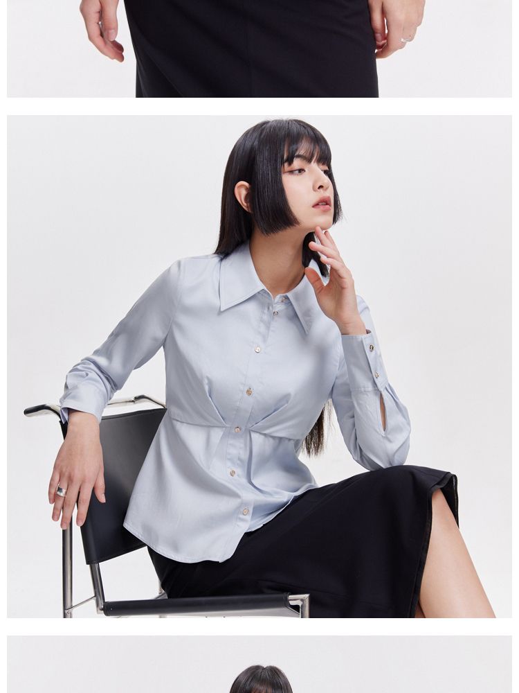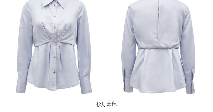 【休闲百搭】夏季含莱赛尔设计感拼接褶皱纯色衬衫女 161050