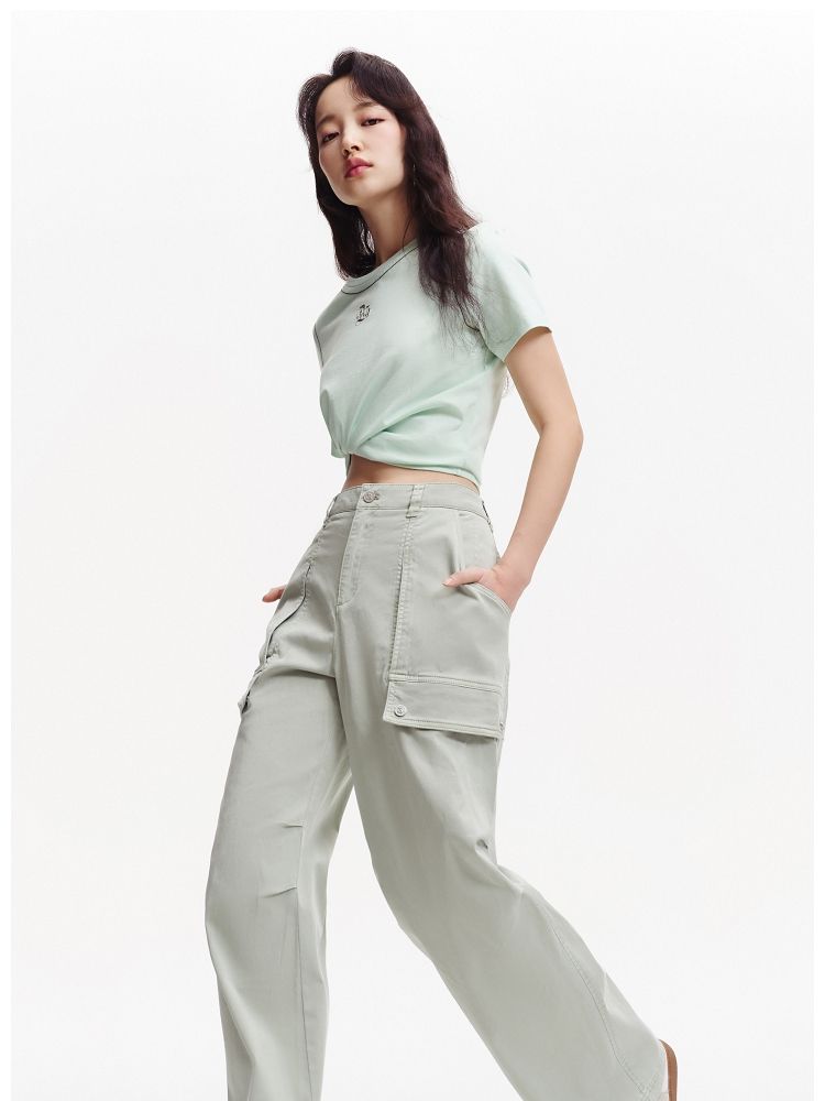 【大口袋装饰】高腰口袋阔腿工装休闲裤女 587098