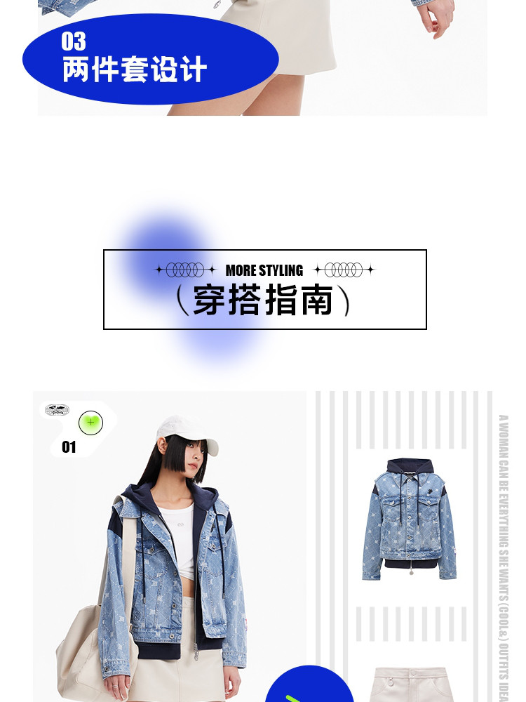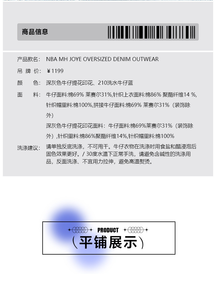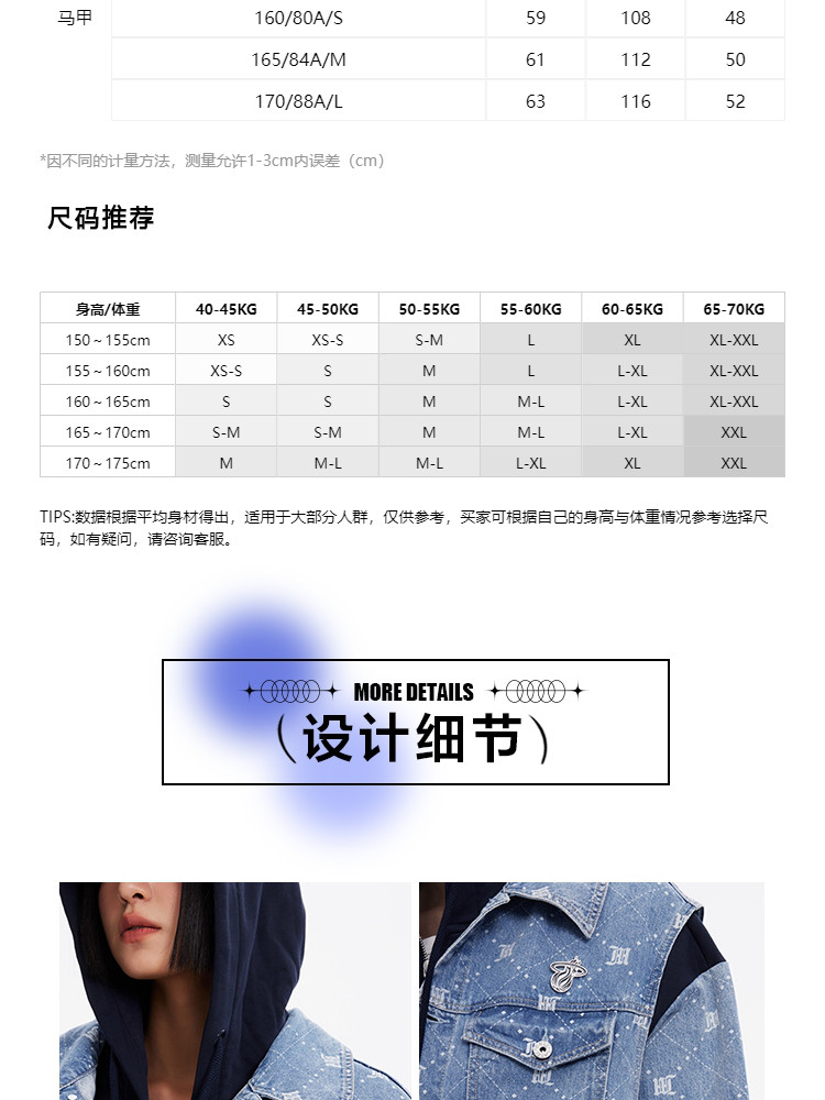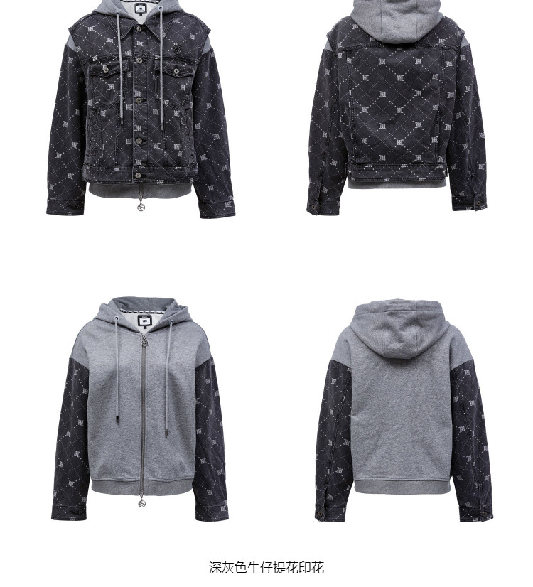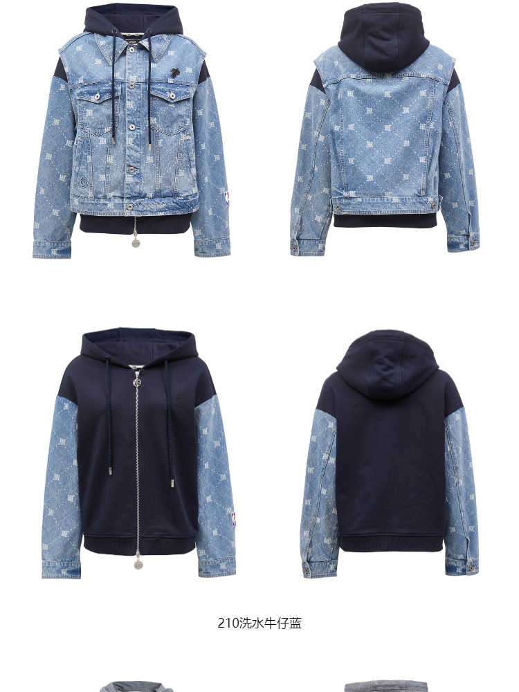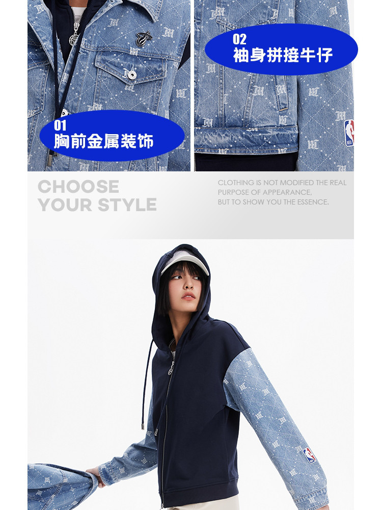 商品名称:【NBA联名】夏季拼接连帽套装短款牛仔外套女 670490