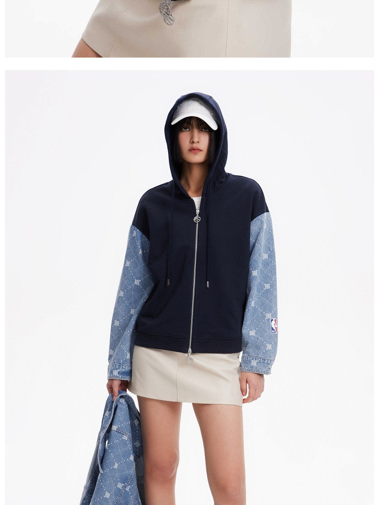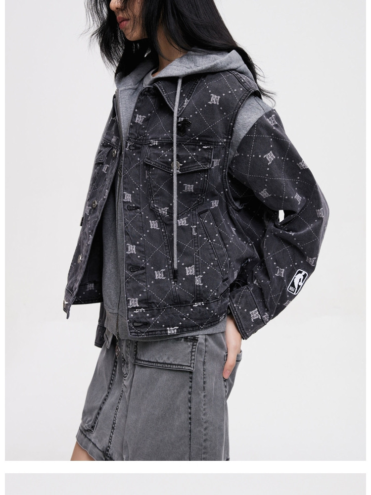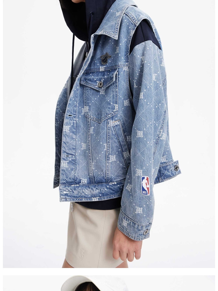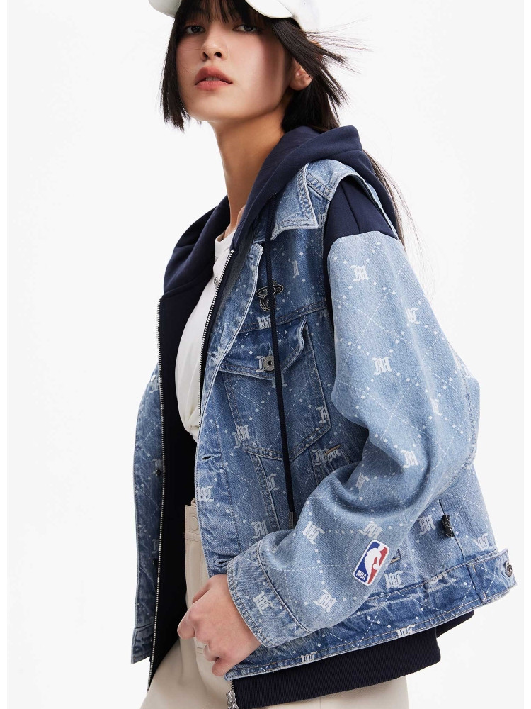 【NBA联名】夏季拼接连帽套装短款牛仔外套女 670490