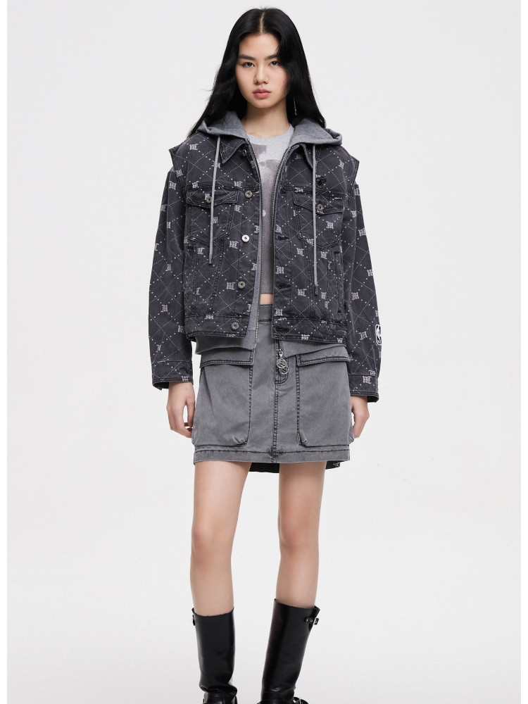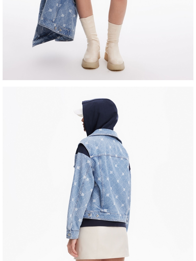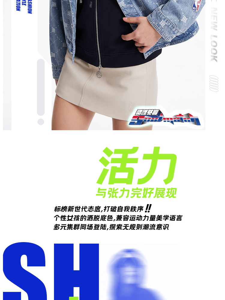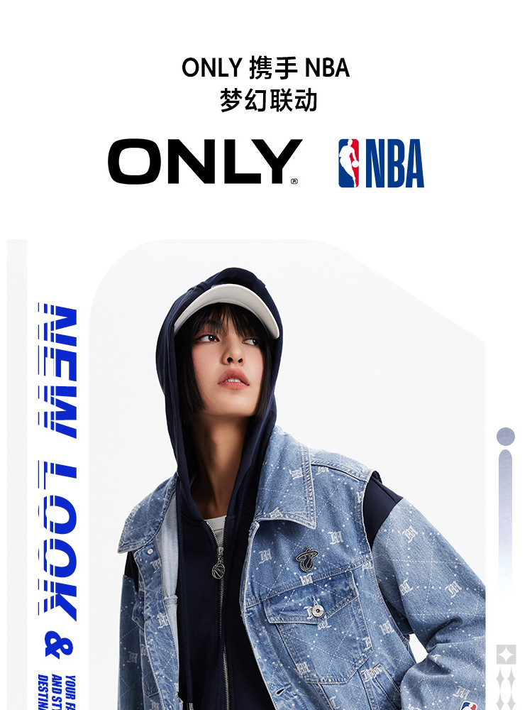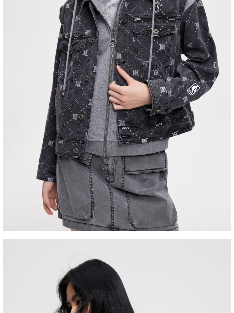 【NBA联名】夏季拼接连帽套装短款牛仔外套女 670490