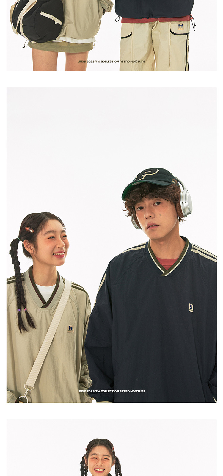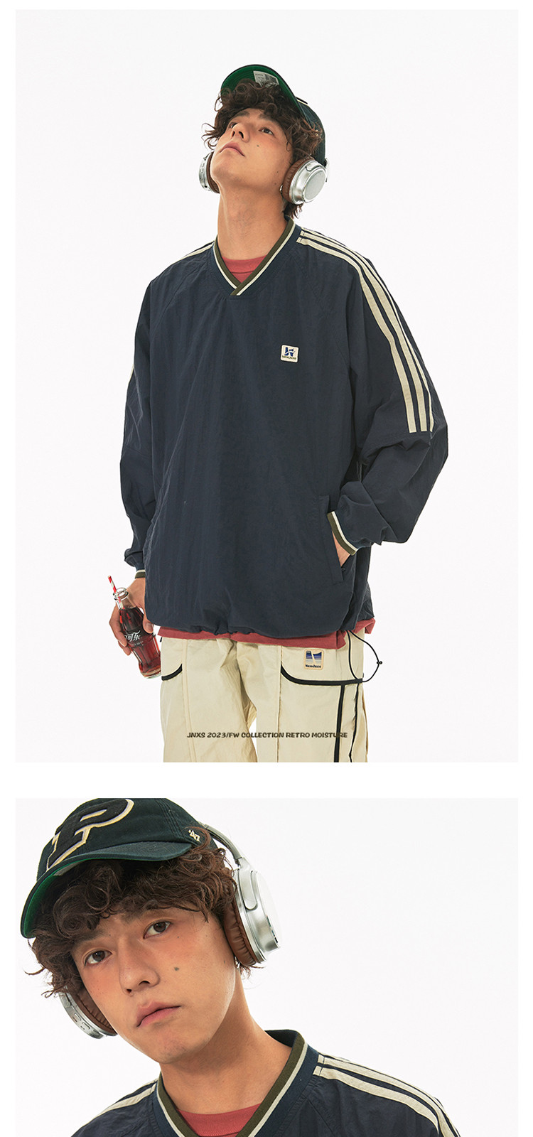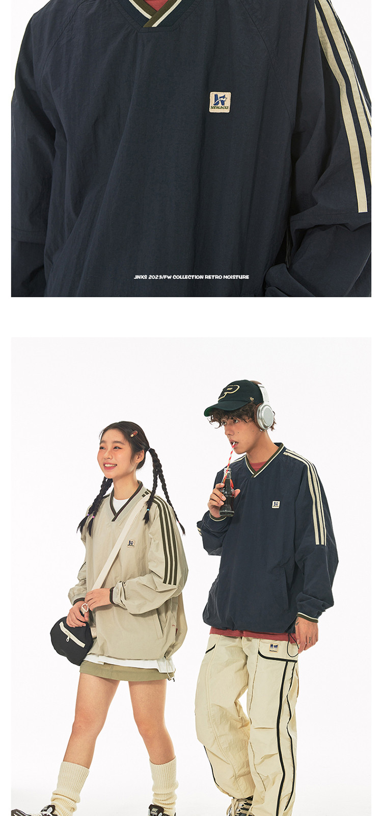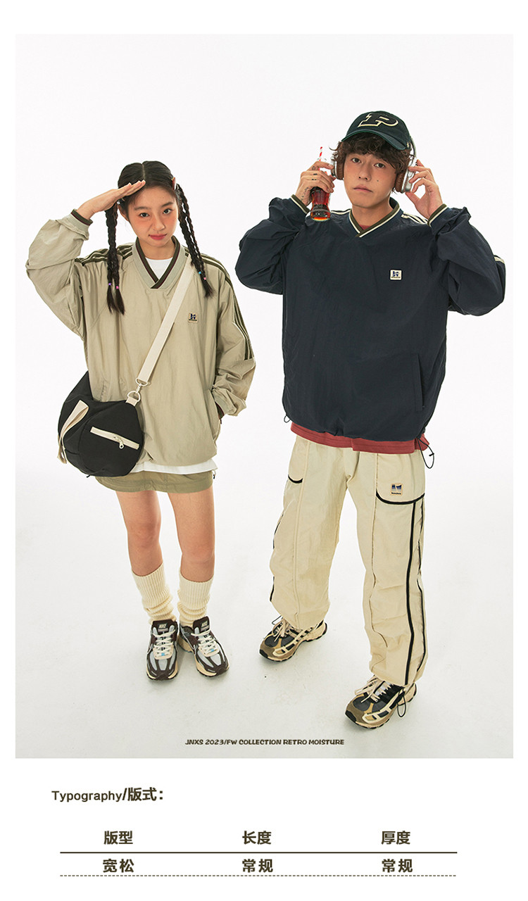 商品名称:江南先生美式复古织带V领插肩袖情侣卫衣男女春季潮牌运动风外套 441297