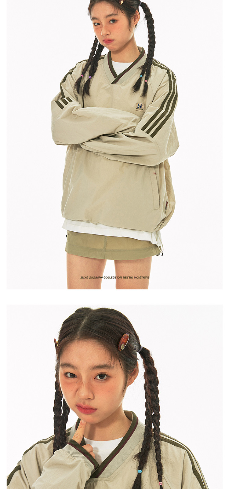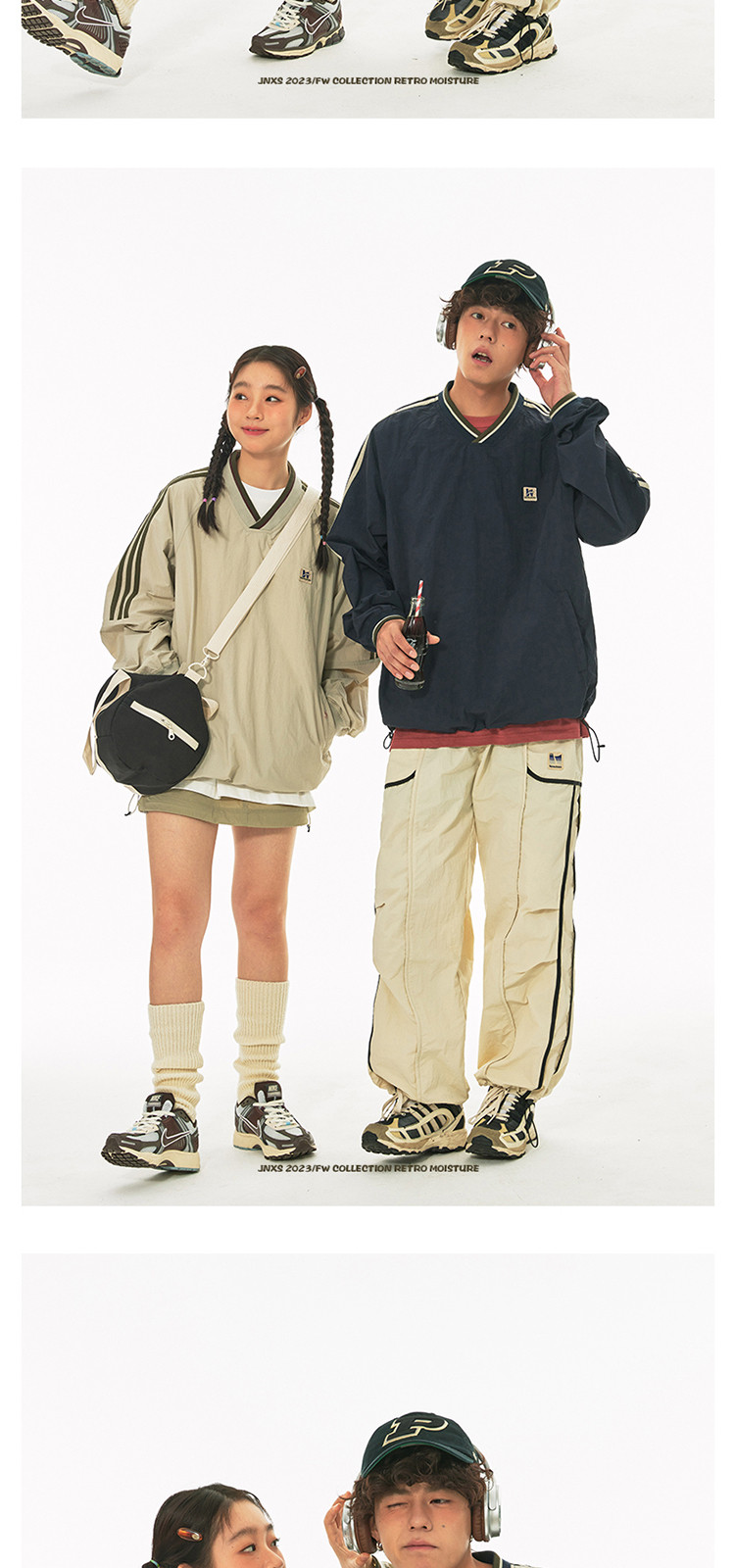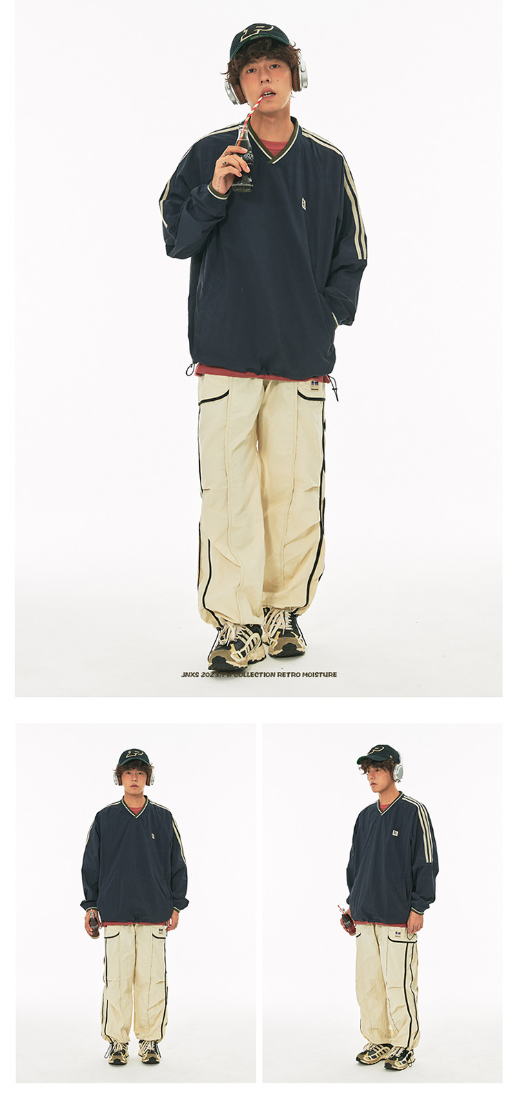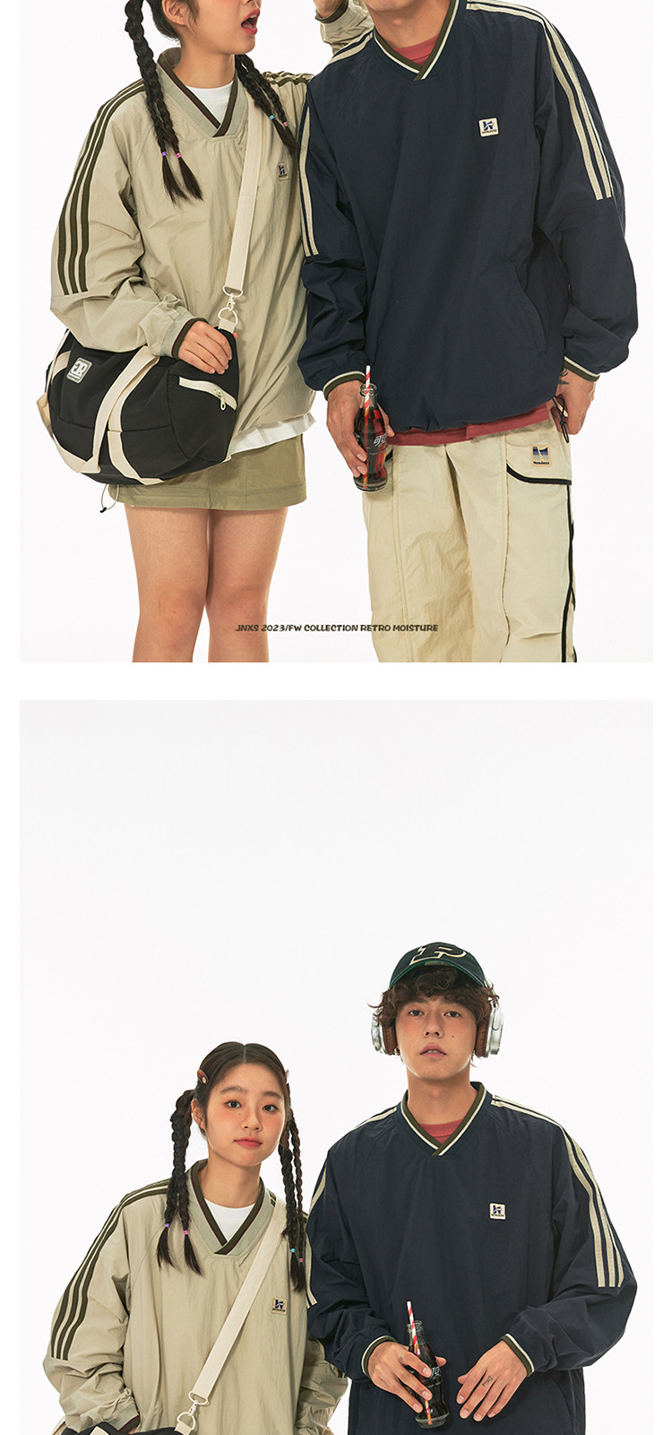 商品名称:江南先生美式复古织带V领插肩袖情侣卫衣男女春季潮牌运动风外套 441297