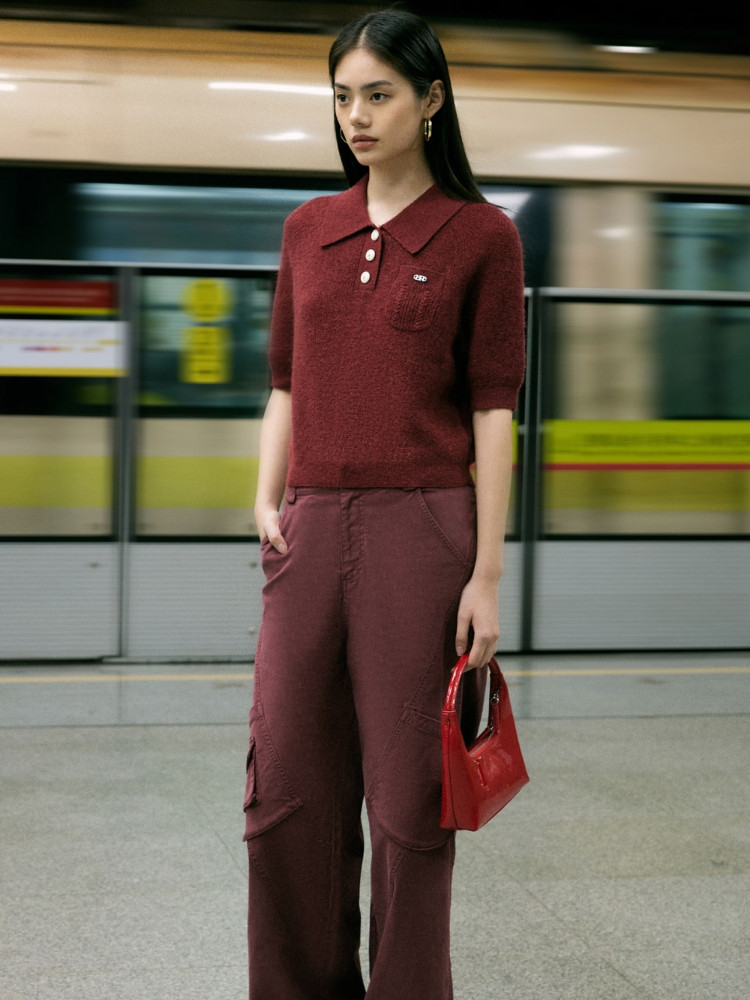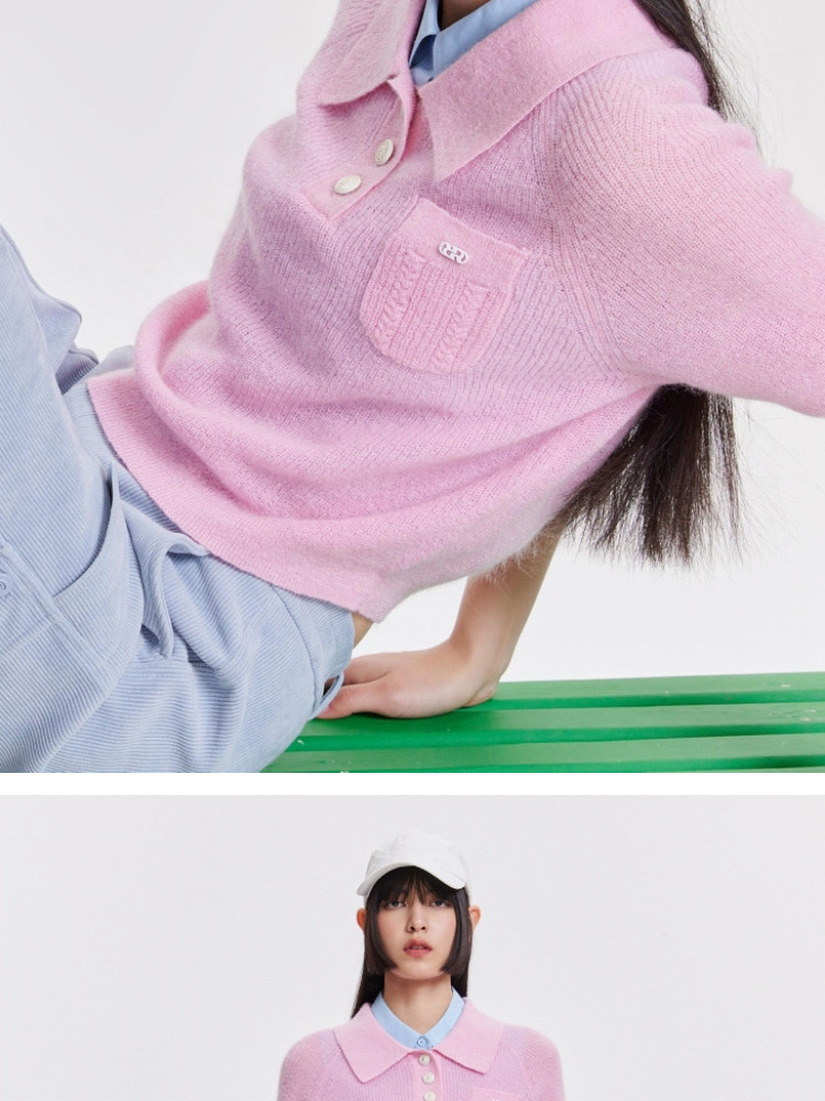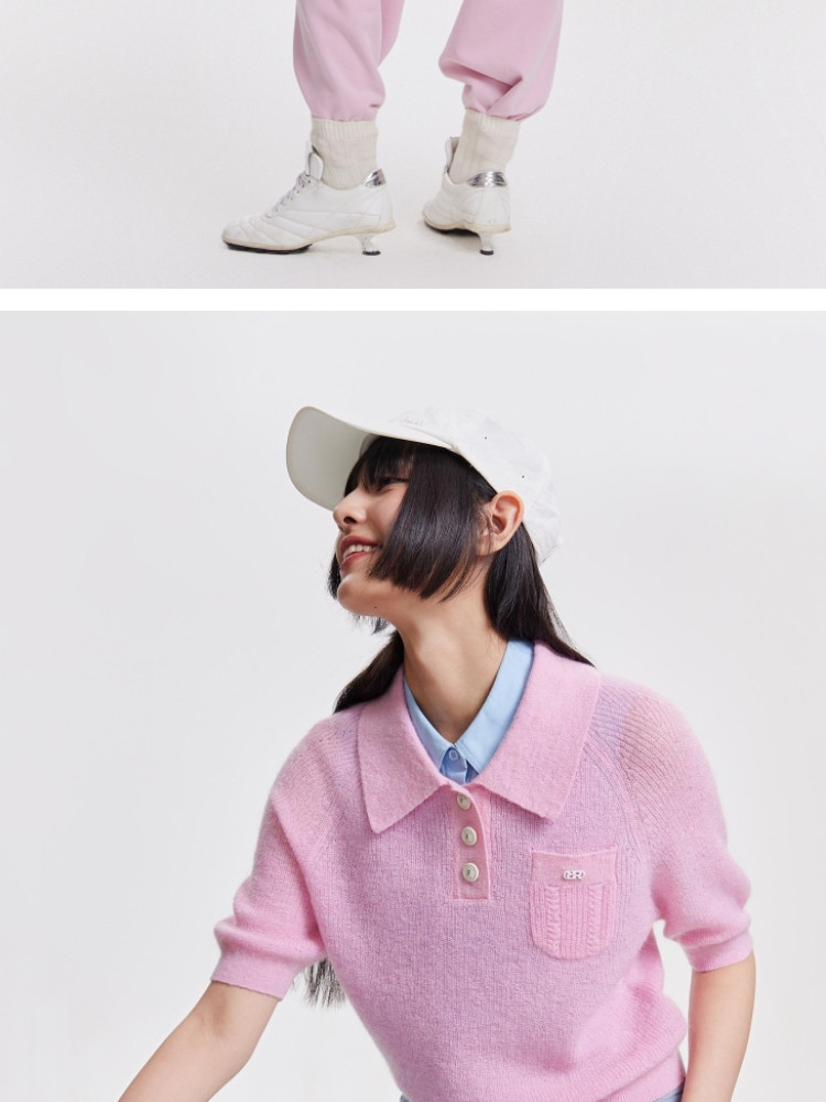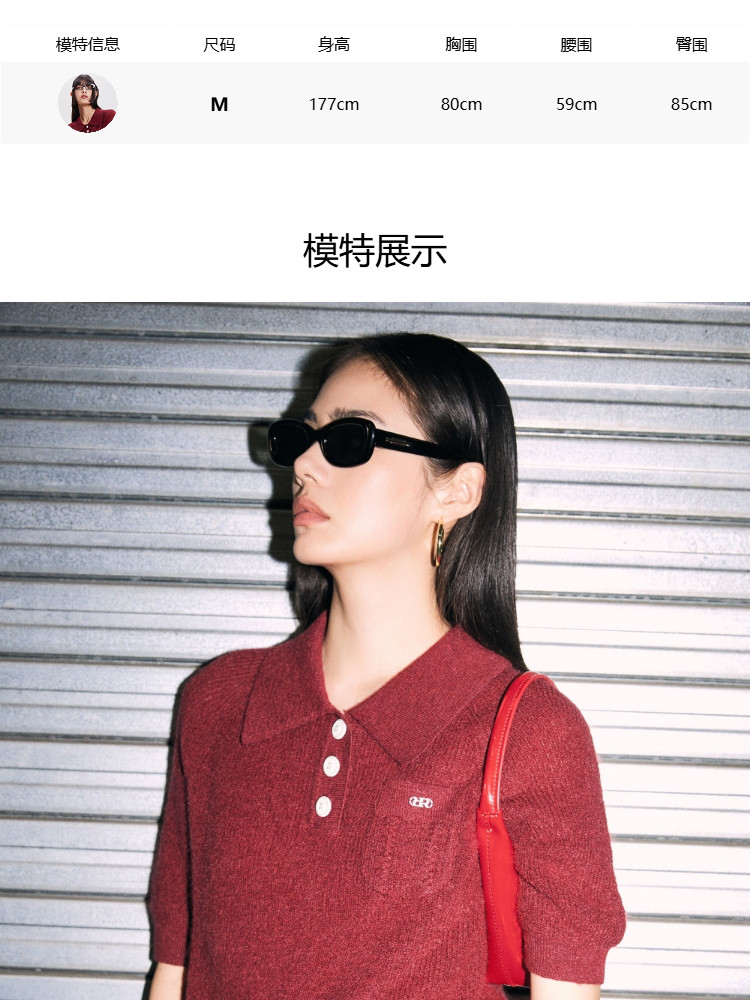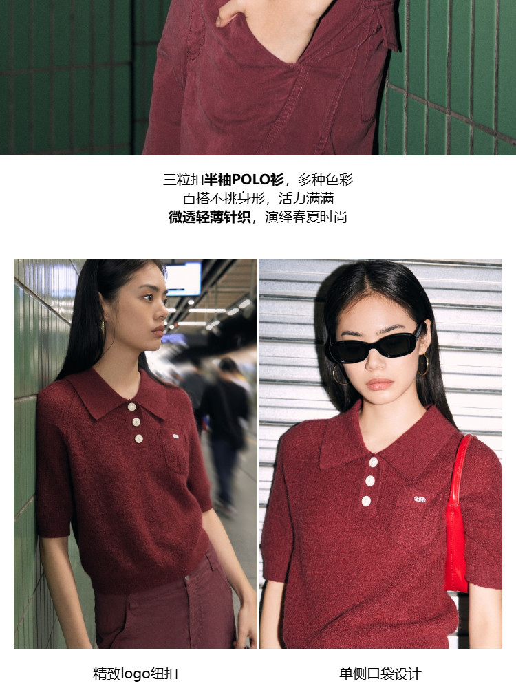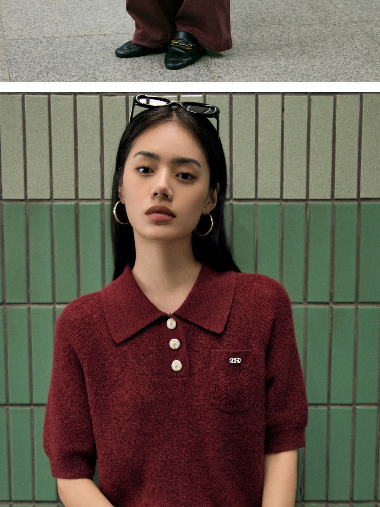 商品名称:【精致纽扣】春季设计感百搭纽扣Polo领短袖针织衫女 232282