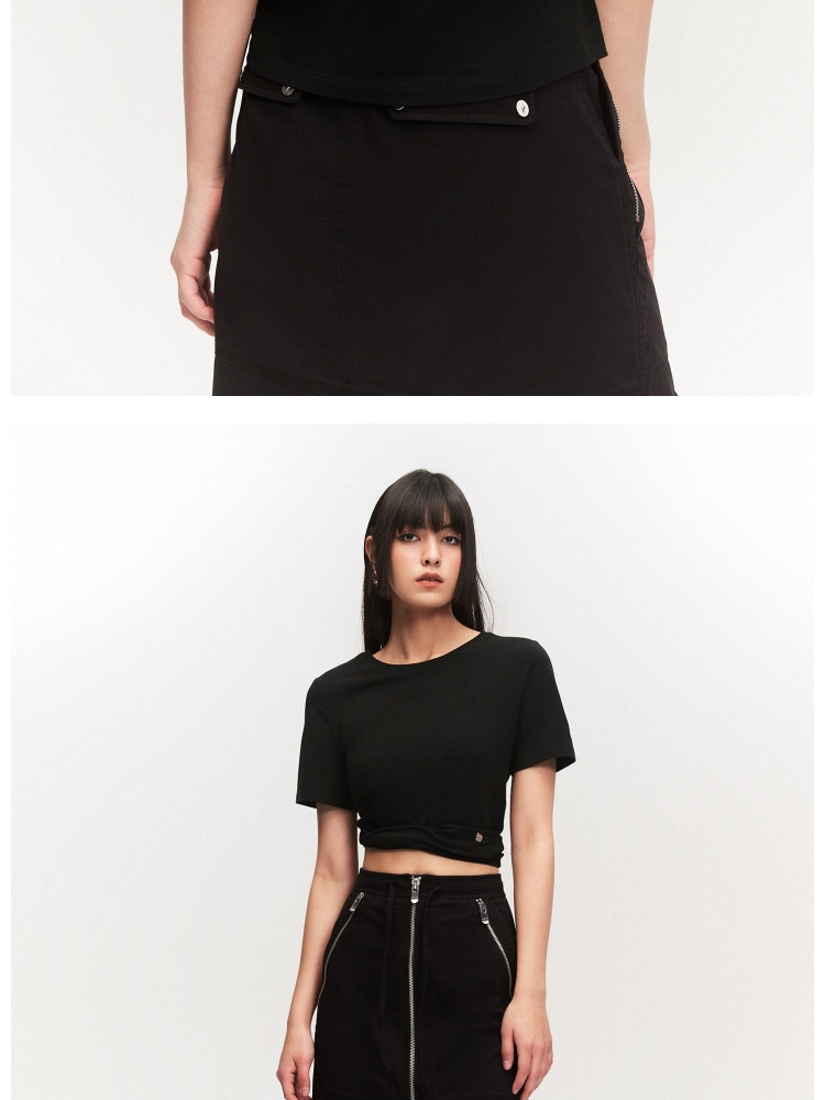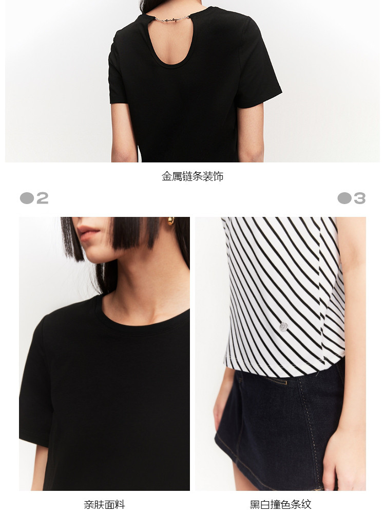 商品名称:【时尚百搭】夏季简约链条装饰短款短袖T恤女 997210