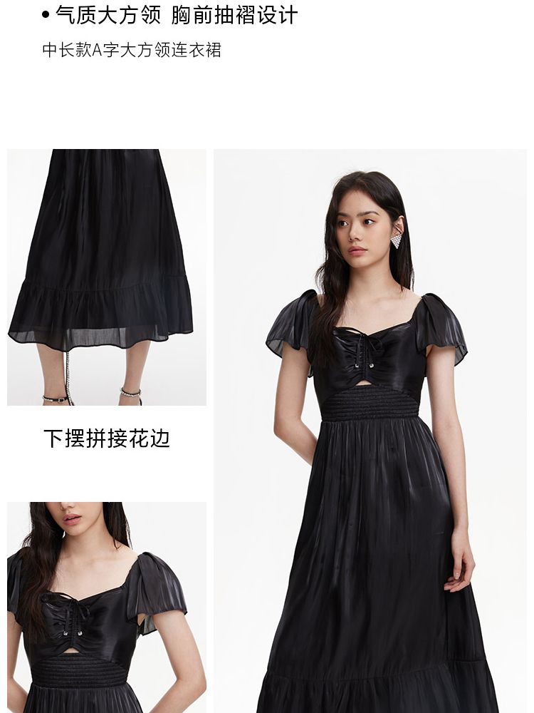 商品名称:【气质百搭】夏季中长款A字大方领连衣裙女 543514