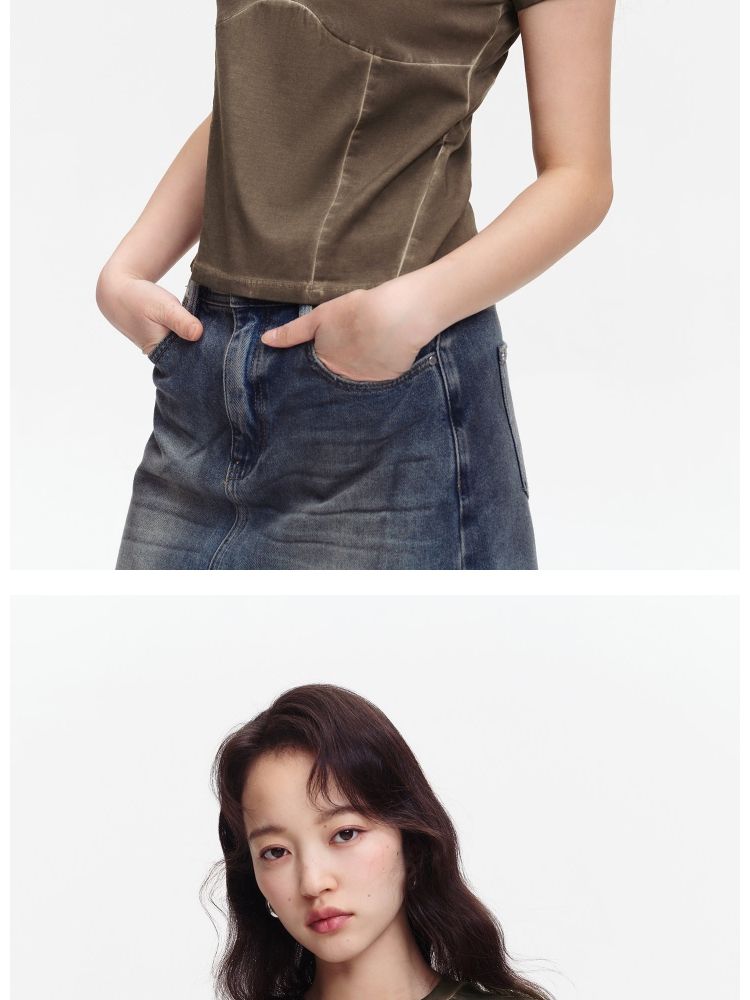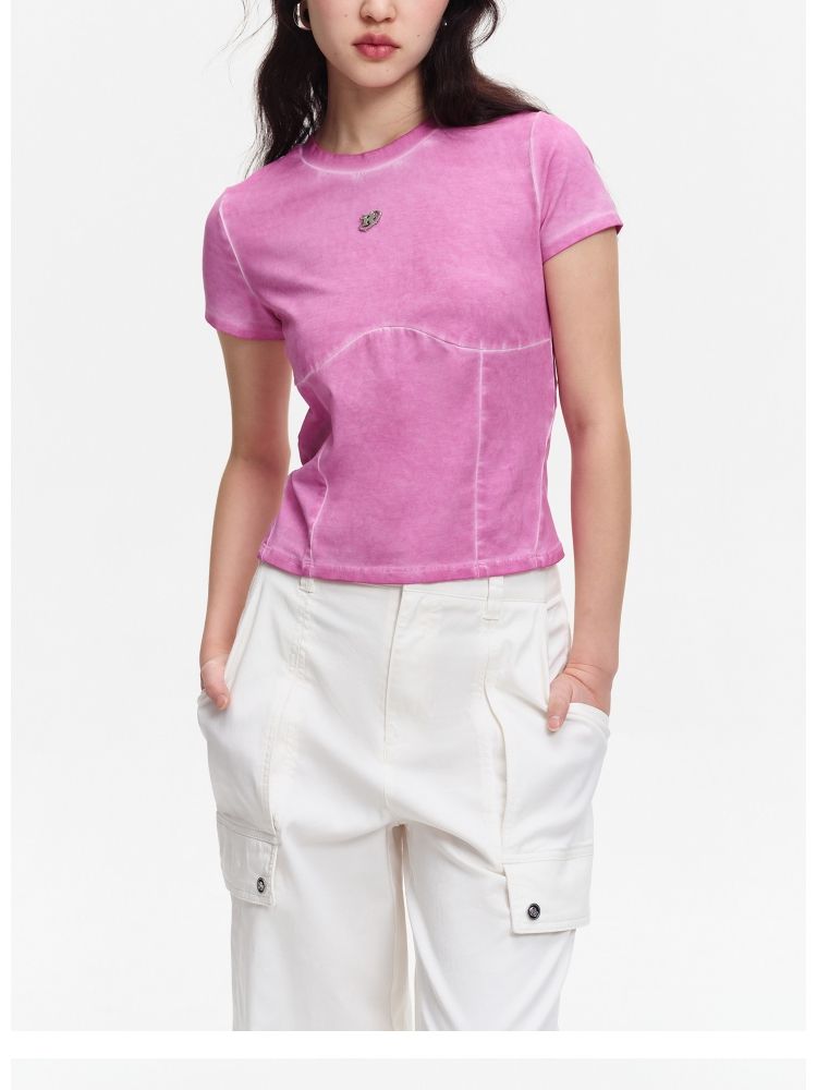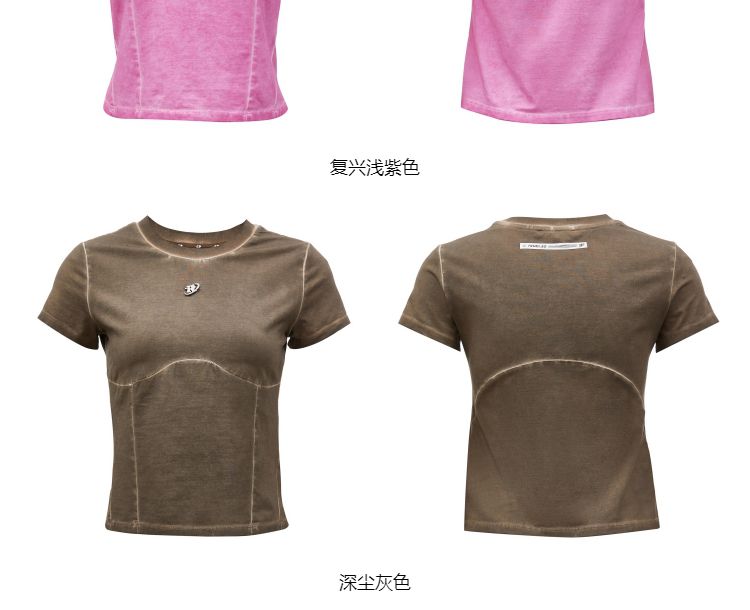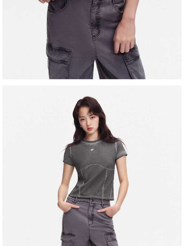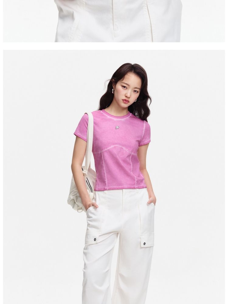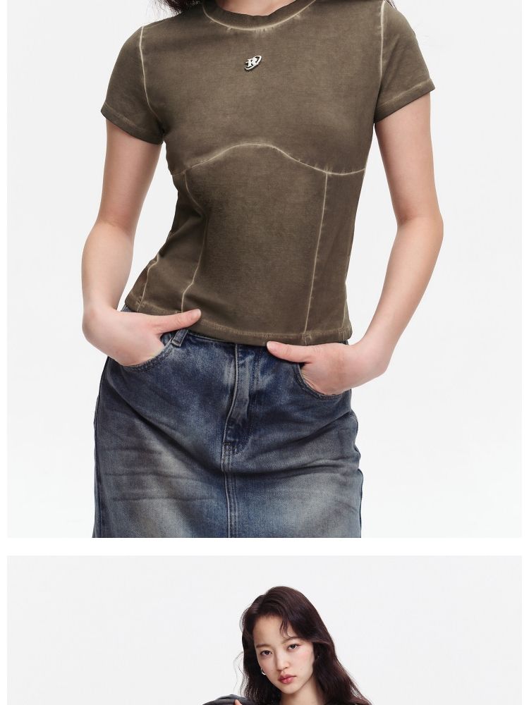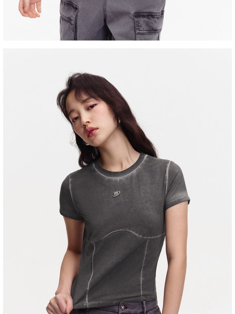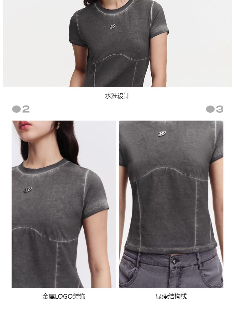 【做旧水洗】夏季水洗圆领合身短款短袖T恤女 942170