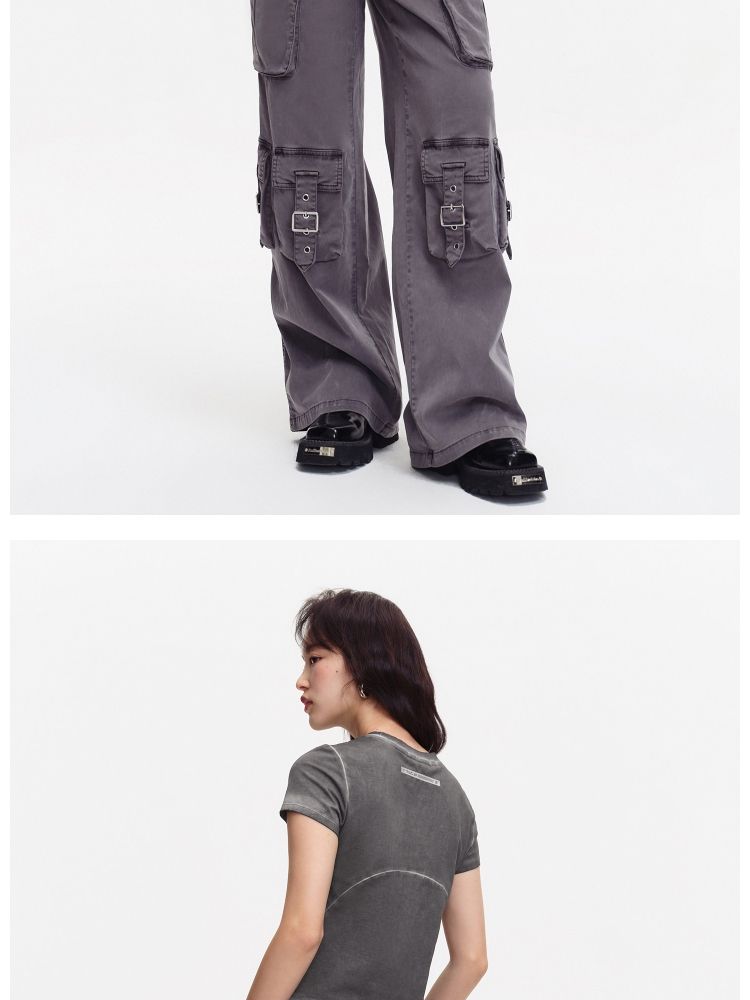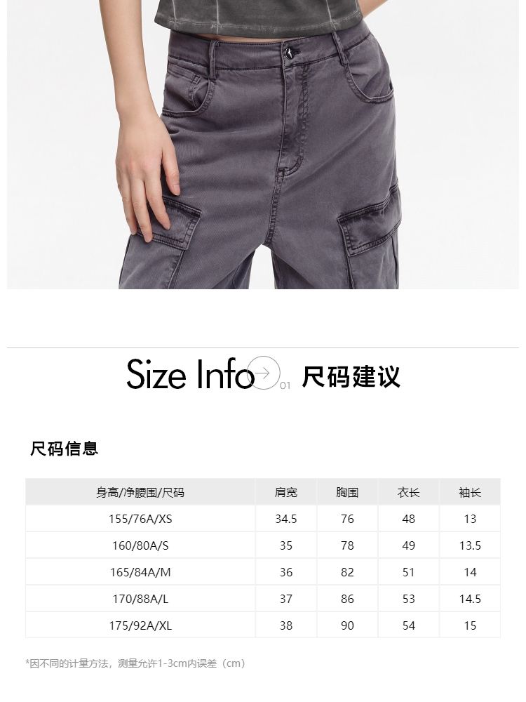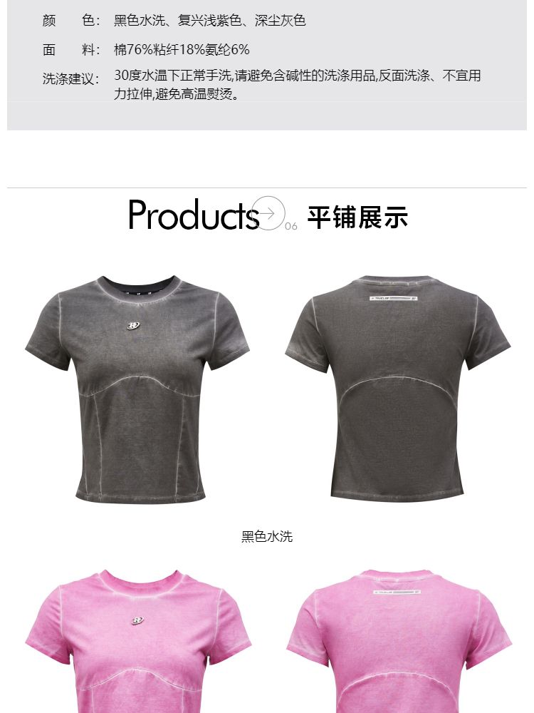 商品名称:【做旧水洗】夏季水洗圆领合身短款短袖T恤女 942170