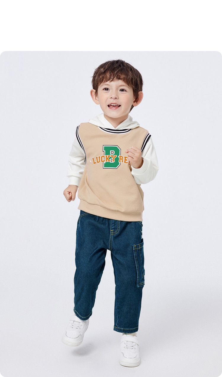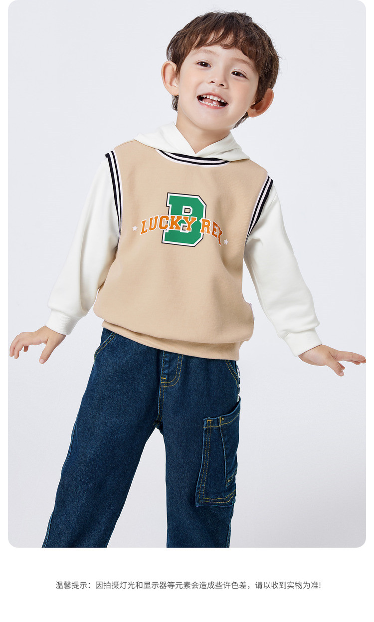时尚假两件设计童装男童卫衣时尚学院运动风长袖上衣儿童连帽装 069125