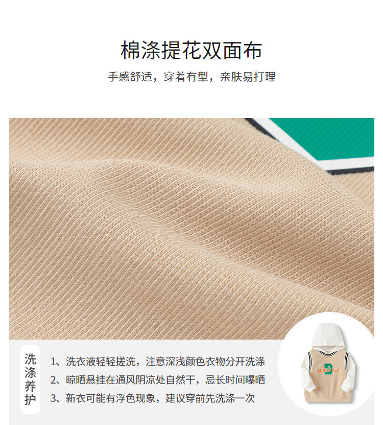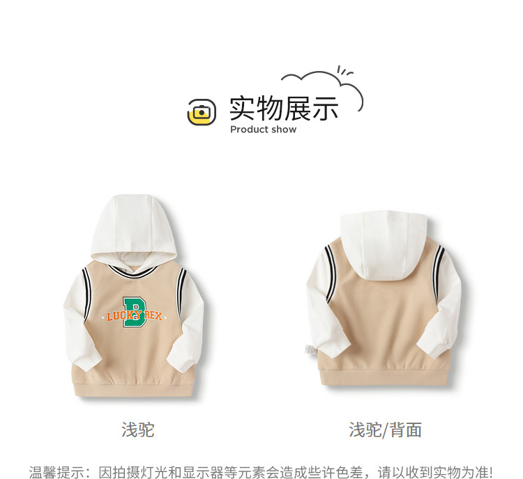 商品名称:时尚假两件设计童装男童卫衣时尚学院运动风长袖上衣儿童连帽装 069125