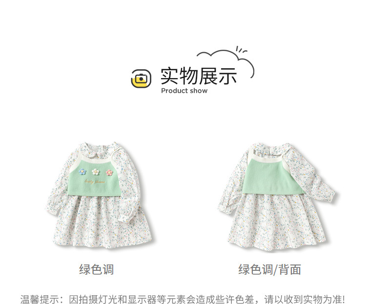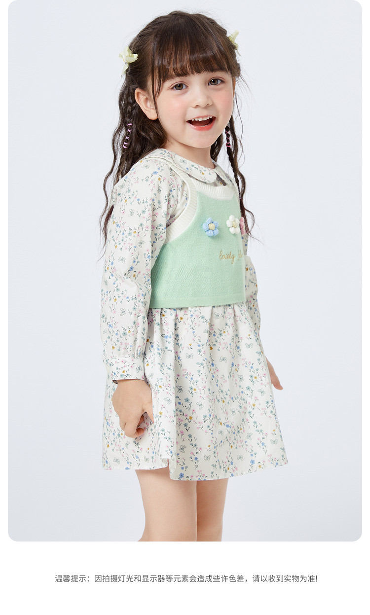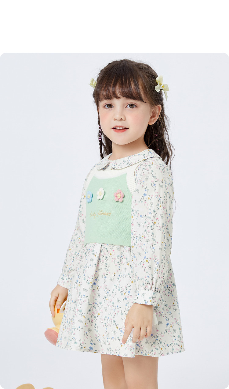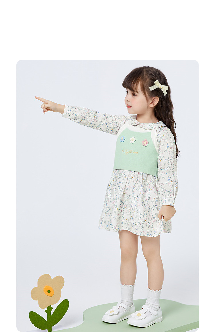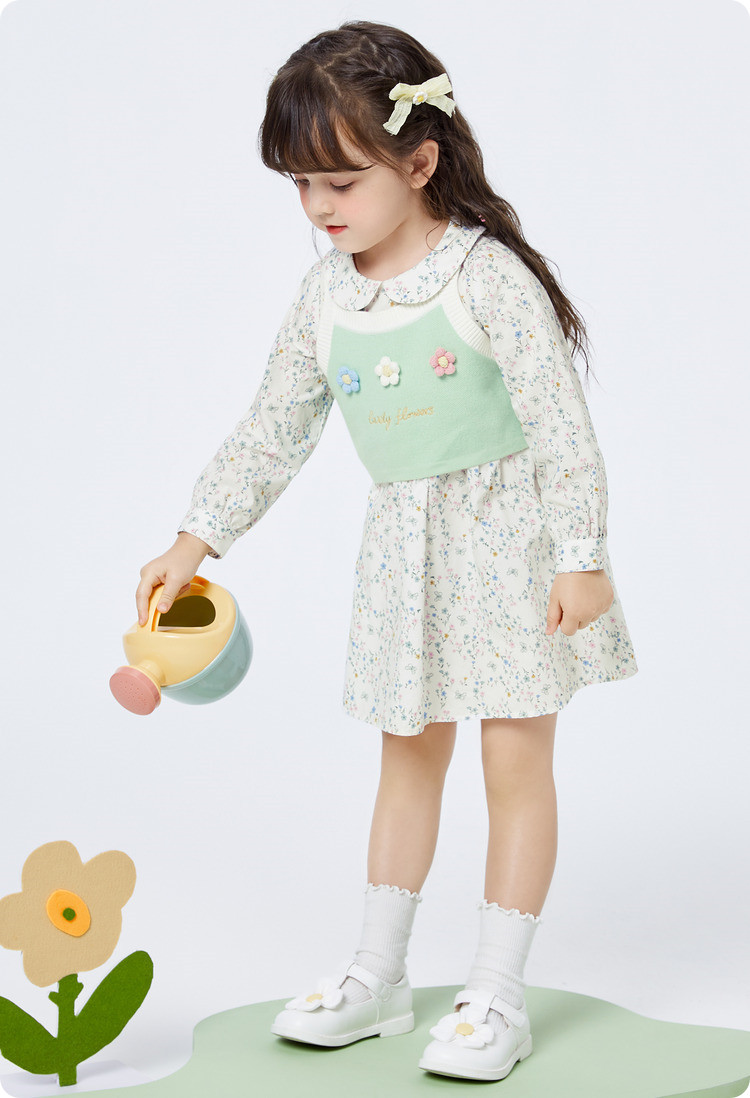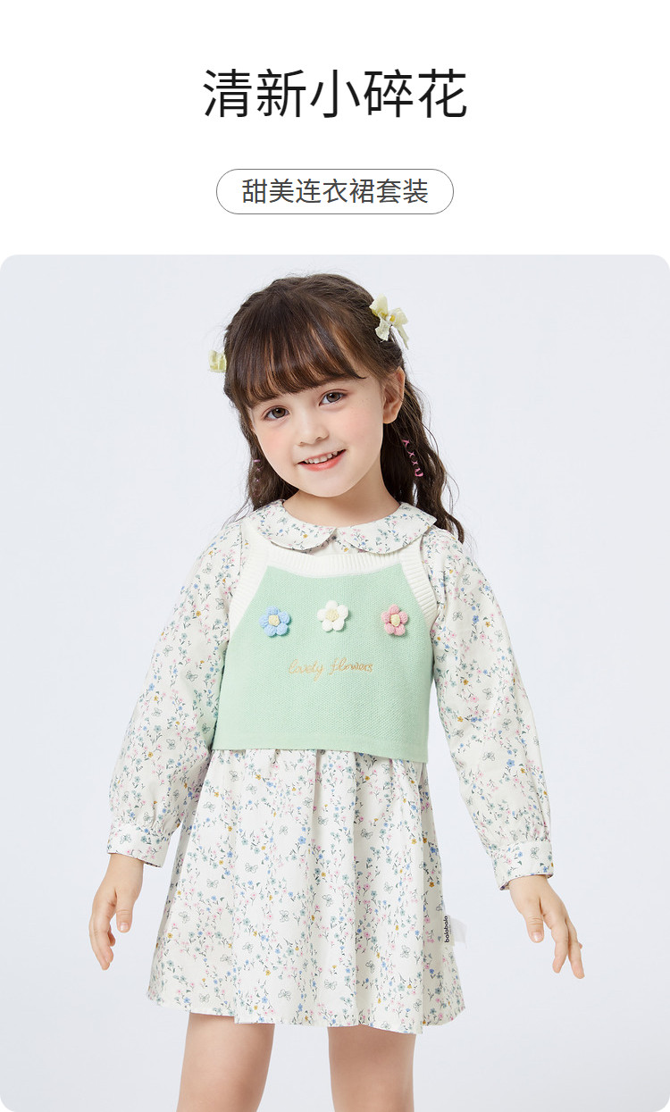 商品名称:碎花两件套女童连衣裙套装时髦洋气儿童装清新文艺甜美立体小花 079813