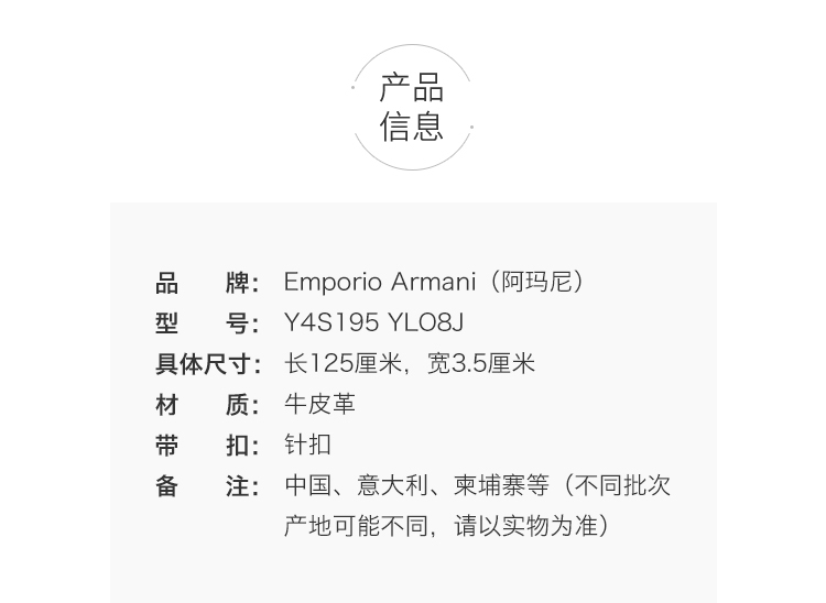 商品名称:Emporio Armani 男士腰带 Y4S195 YLO8J 80741