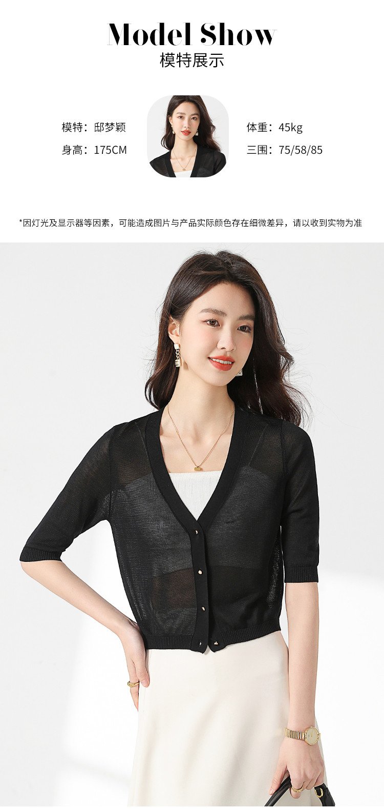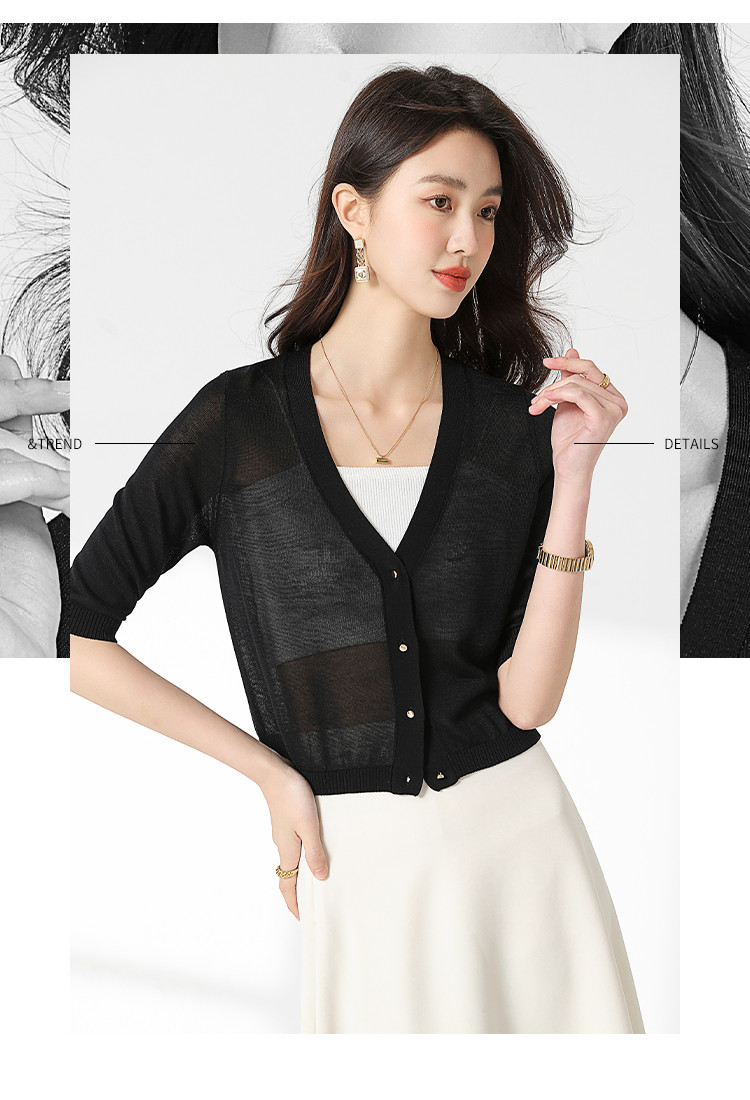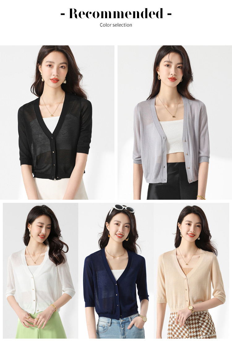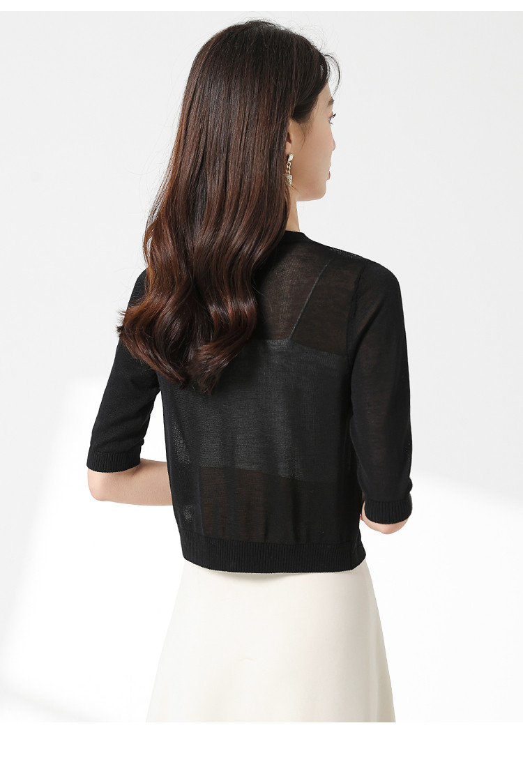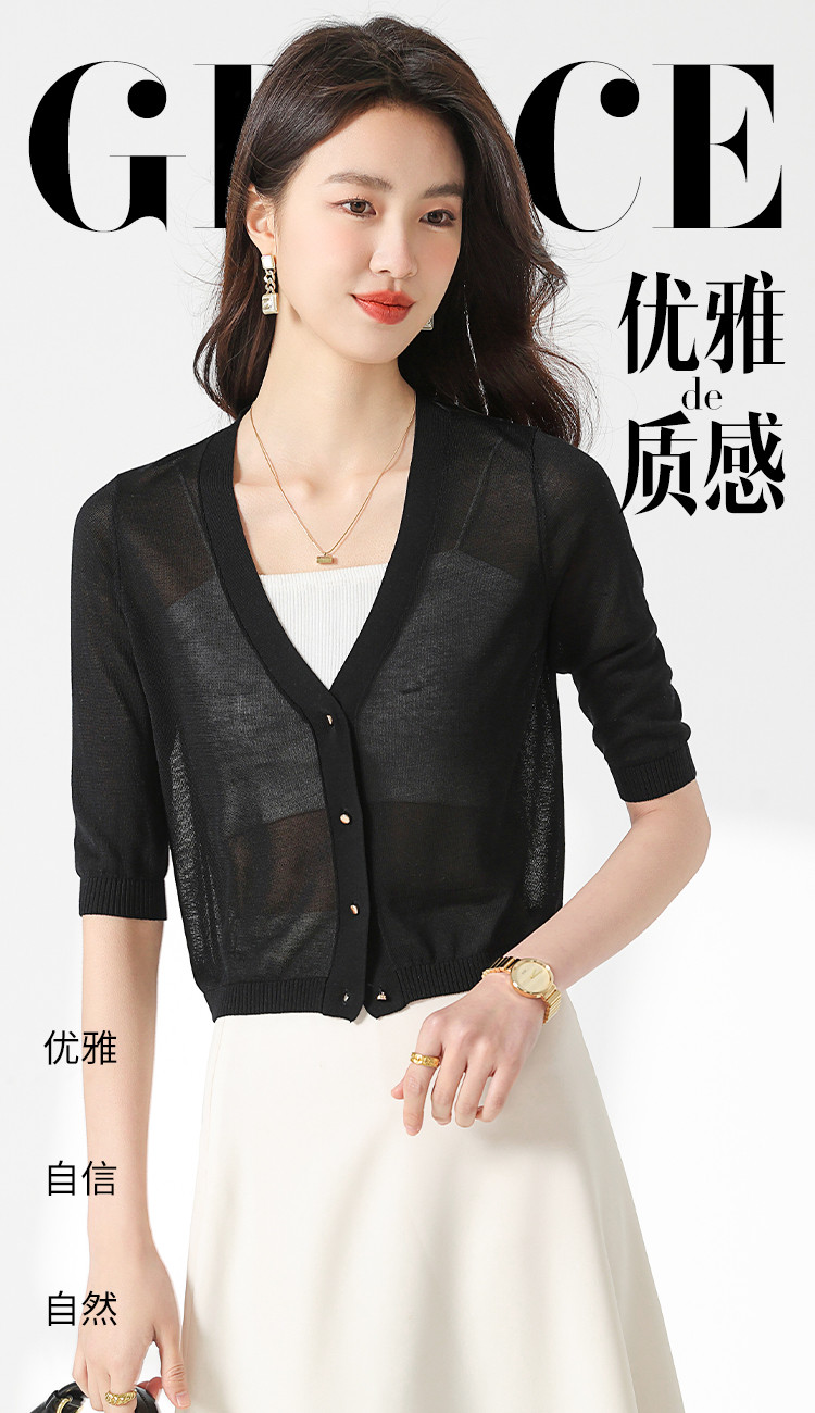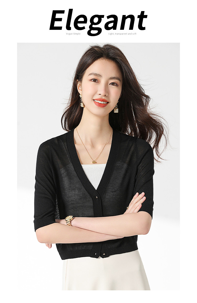 商品名称:【含桑蚕丝 纯色百搭】时尚中袖透气亲肤针织开衫空调衫女夏 875987