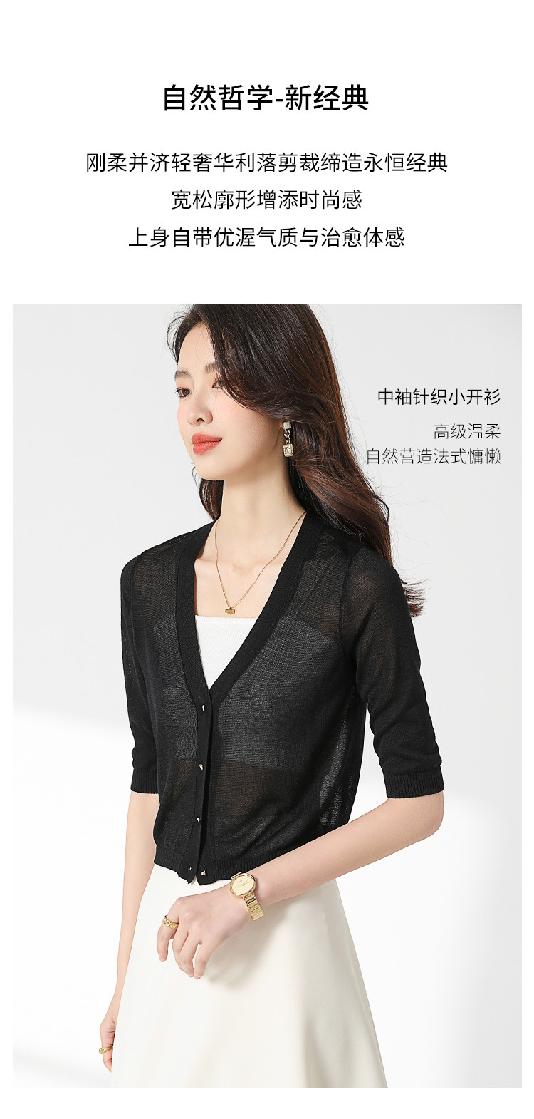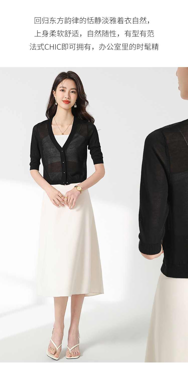 【含桑蚕丝 纯色百搭】时尚中袖透气亲肤针织开衫空调衫女夏 875987