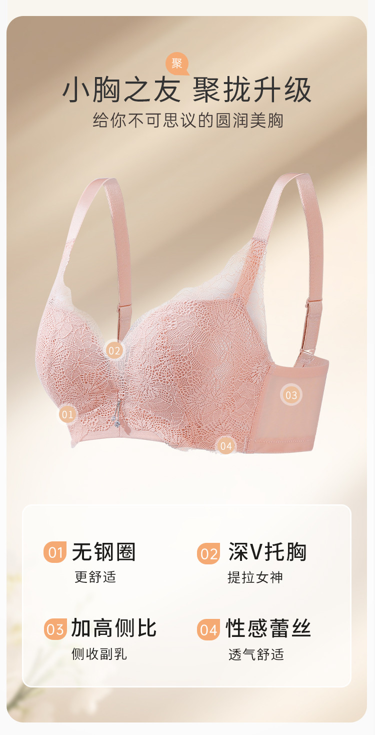 商品名称:【捡漏小胸聚拢】侧收性感蕾丝文胸女内衣无钢圈收副乳防下垂文胸 173323