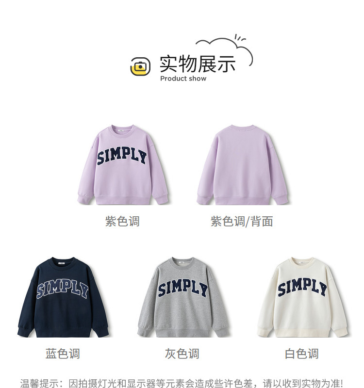 商品名称:学院风宽松卫衣春秋装儿童套头卫衣男童女童中大童字母刺绣上衣 886213