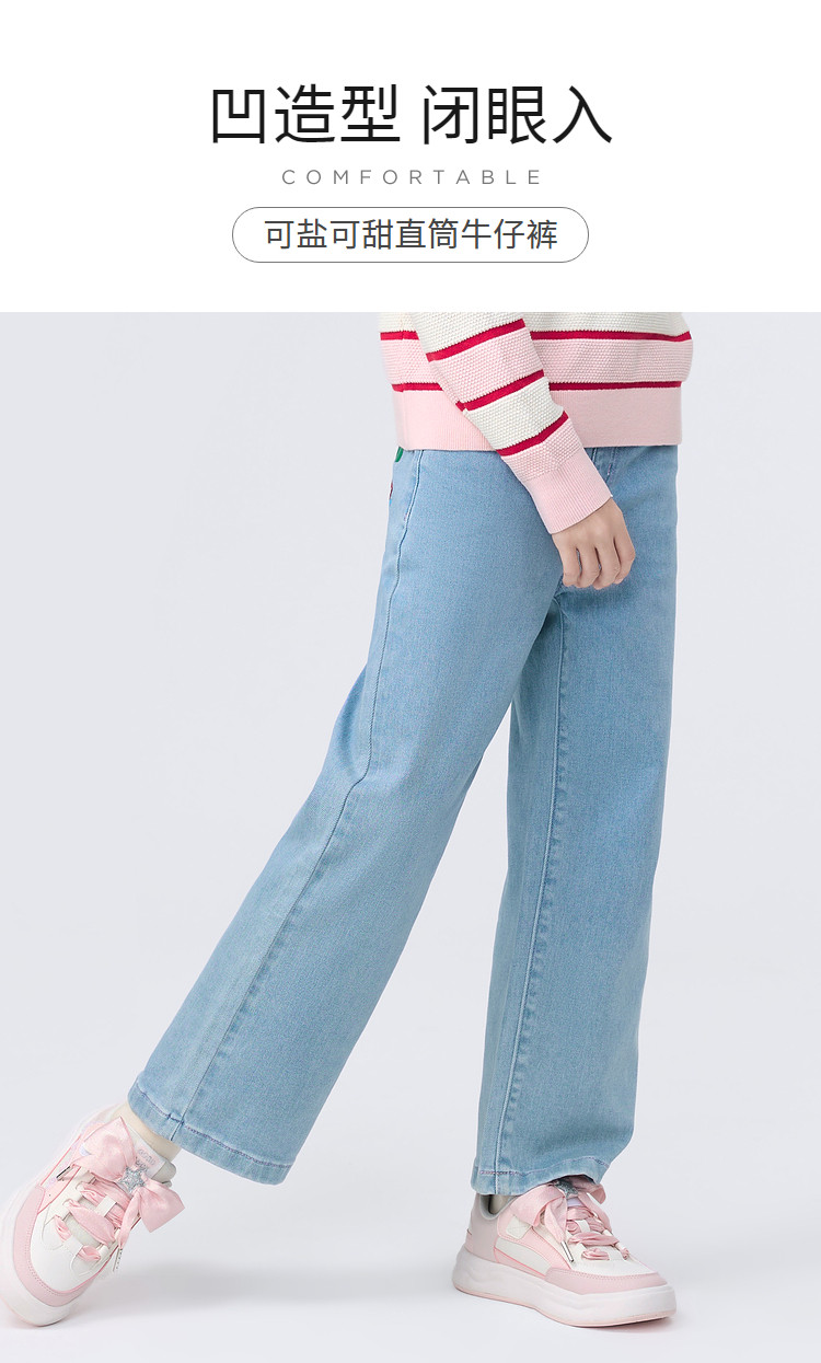 商品名称:修身显瘦直筒裤女童裤子牛仔裤儿童春秋大童长裤甜酷 219141