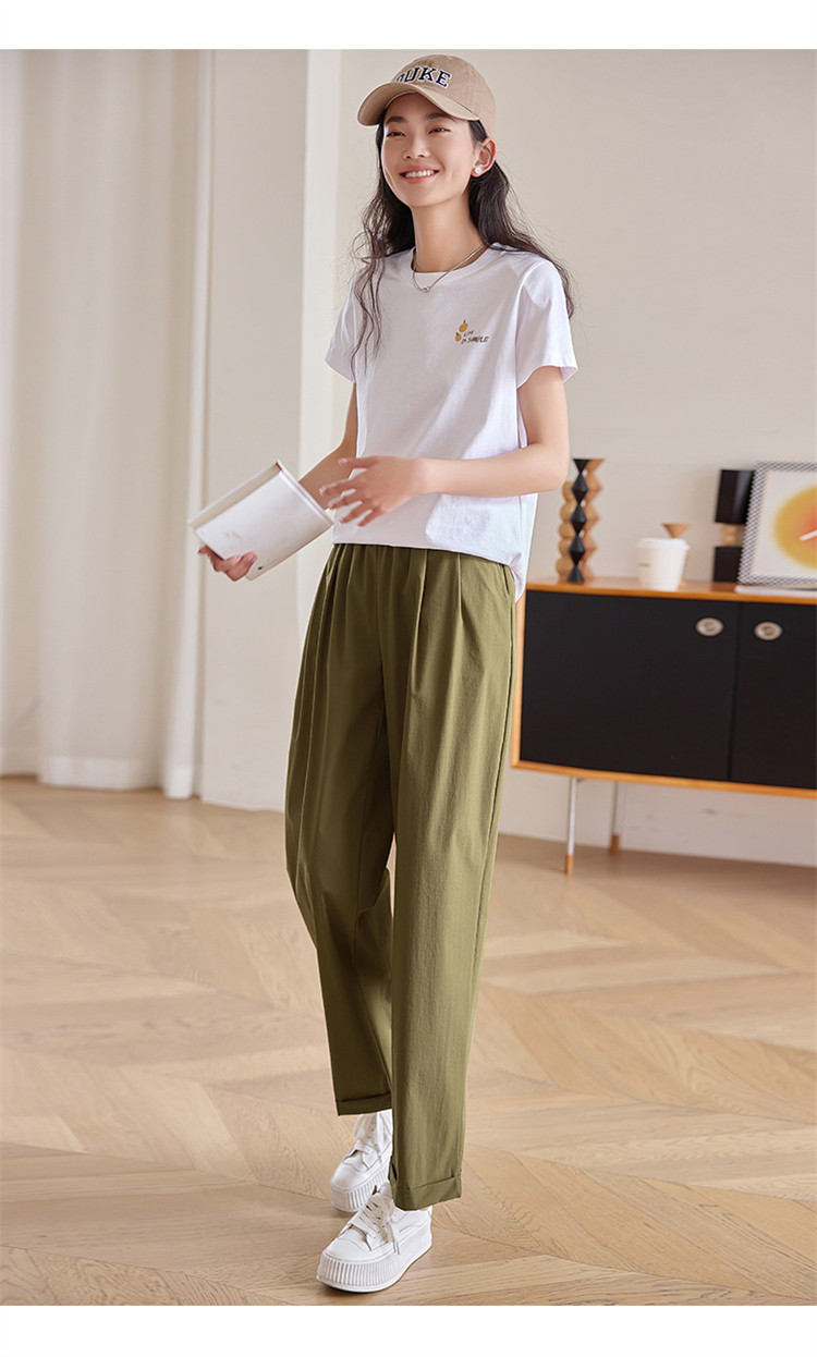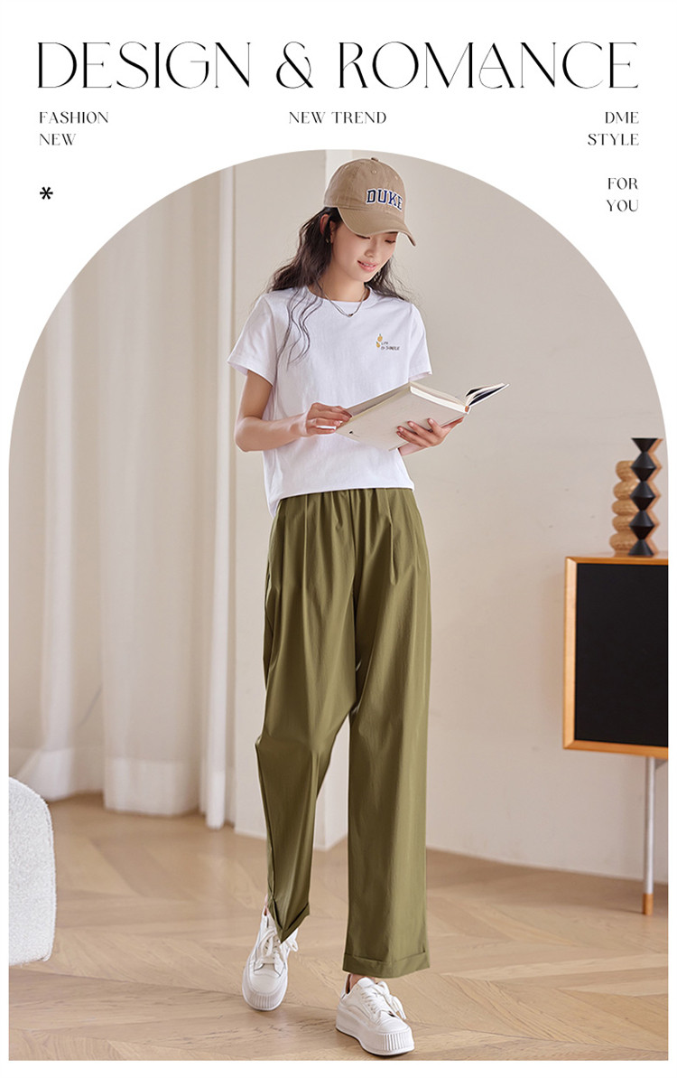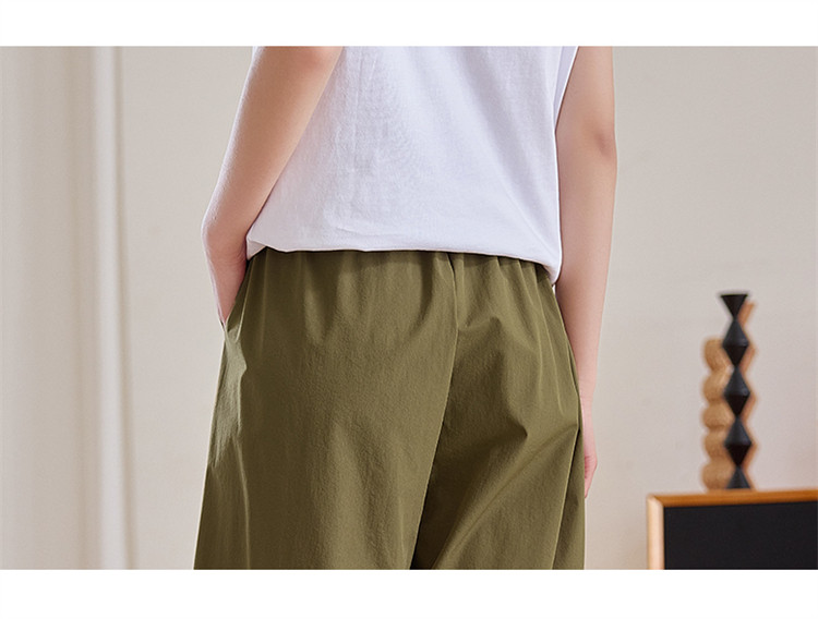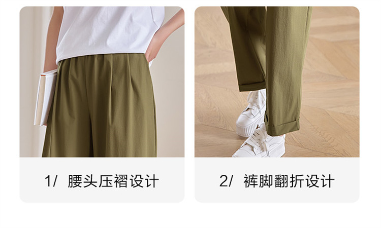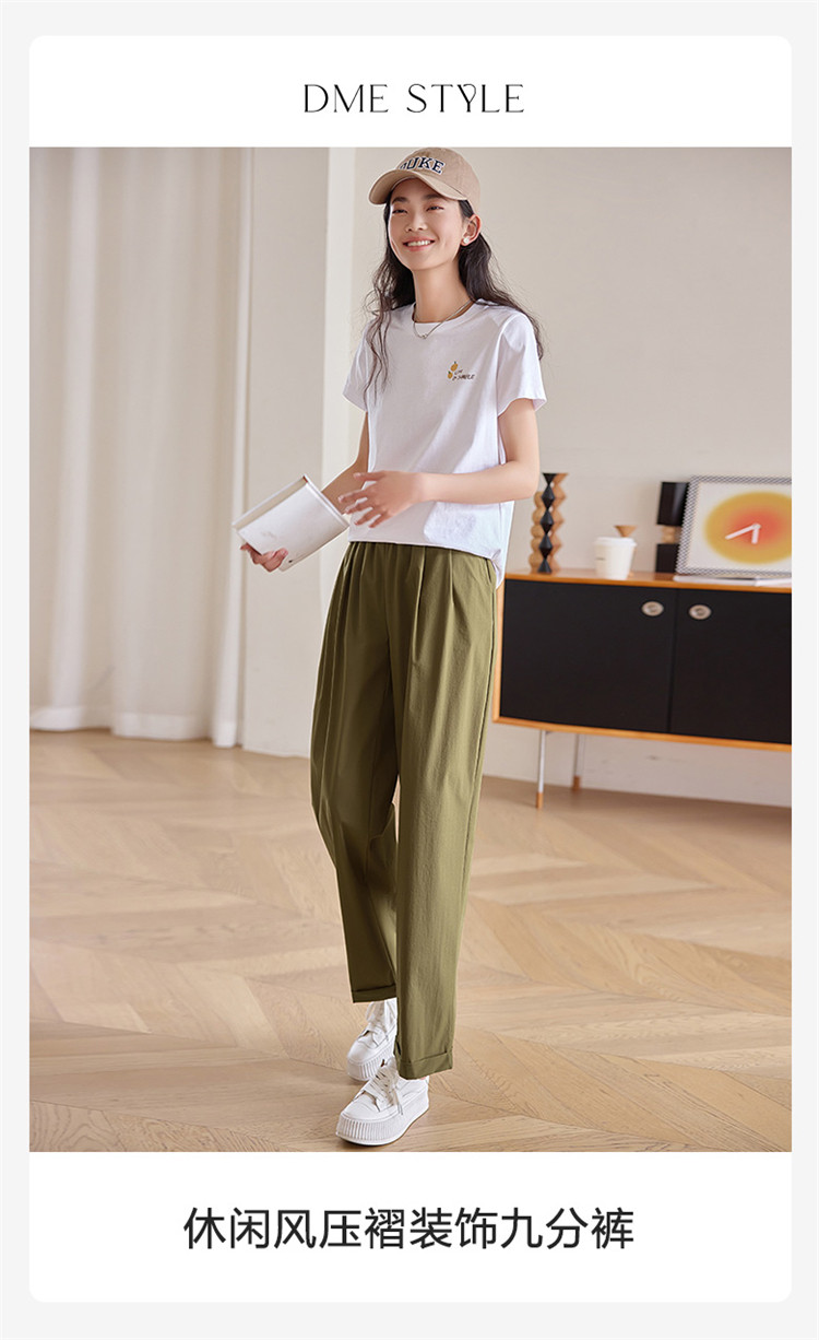 商品名称:【休闲九分裤】夏款百搭款松紧腰头压褶装饰休闲裤女 002626